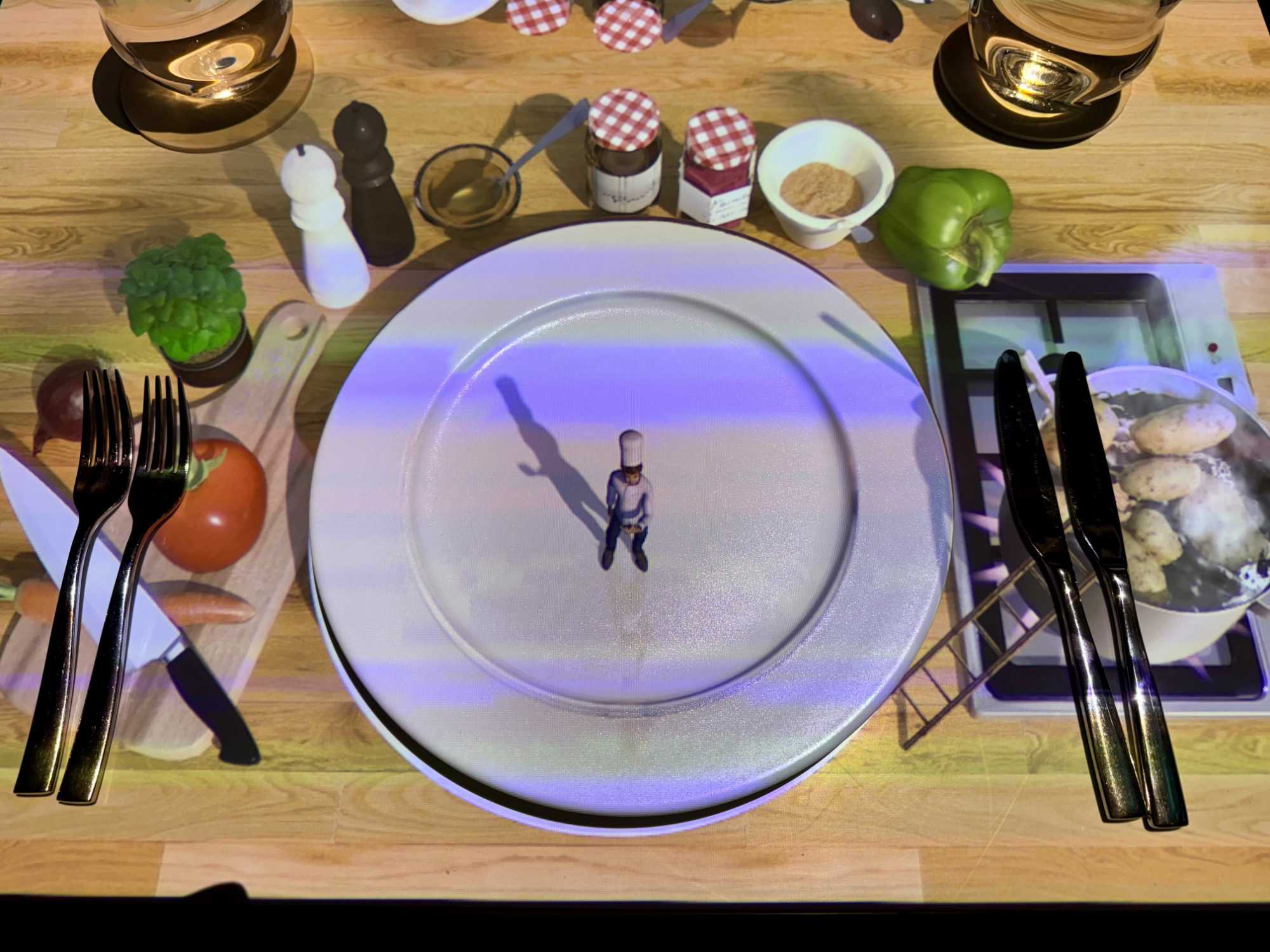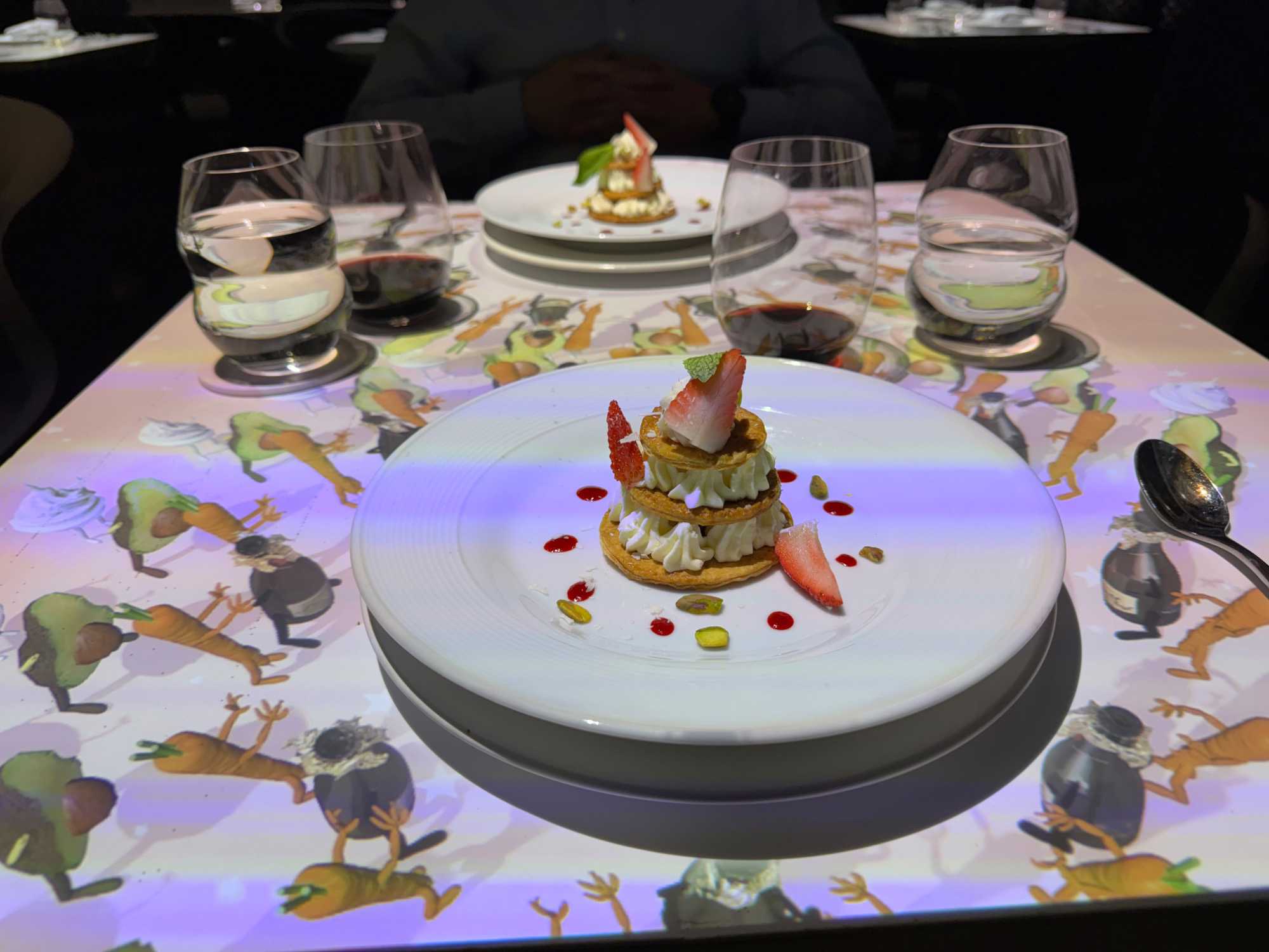Pour le souper, nous profitons d’un dîner-spectacle exceptionnel : Le Petit Chef. Gracieusement offert par Voyage Louise Drouin, ce repas interactif enchante tous les convives : le petit chef animé prend vie sur la table, transformant chaque assiette en un véritable spectacle visuel et culinaire.