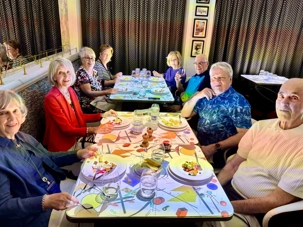 En fin d’après-midi, nous nous retrouvons pour un apéritif au Bar Éden, accompagné d’un musicien qui installe une ambiance conviviale et festive. Discussions, rires et toasts rythment ce moment partagé entre voyageurs.