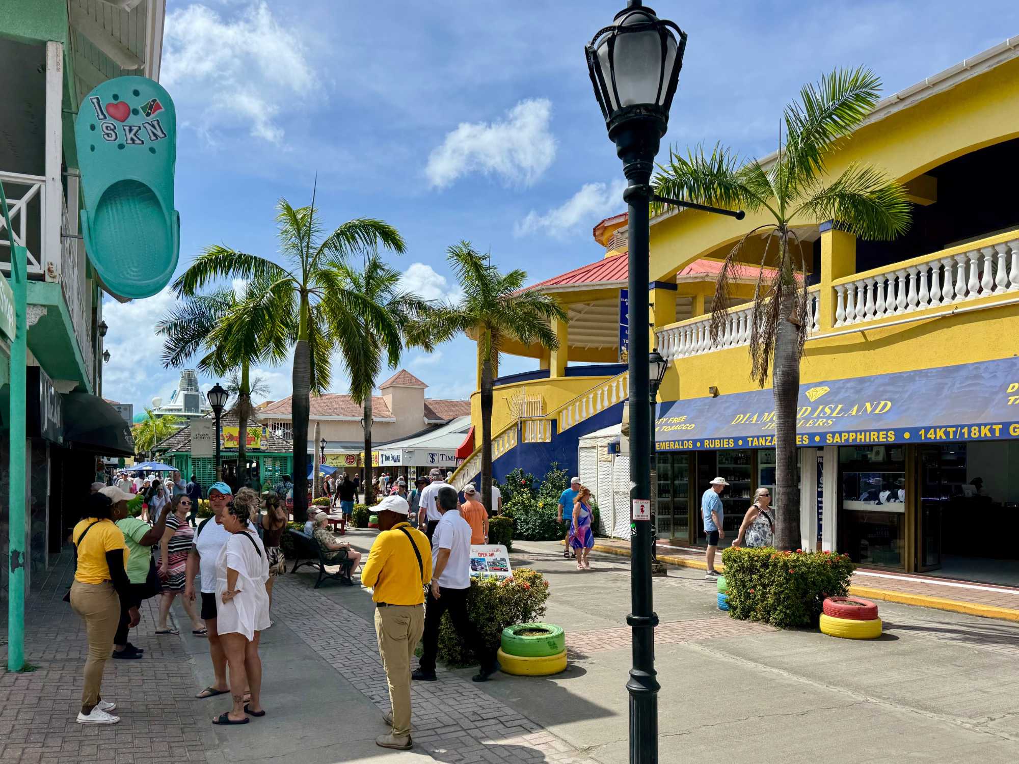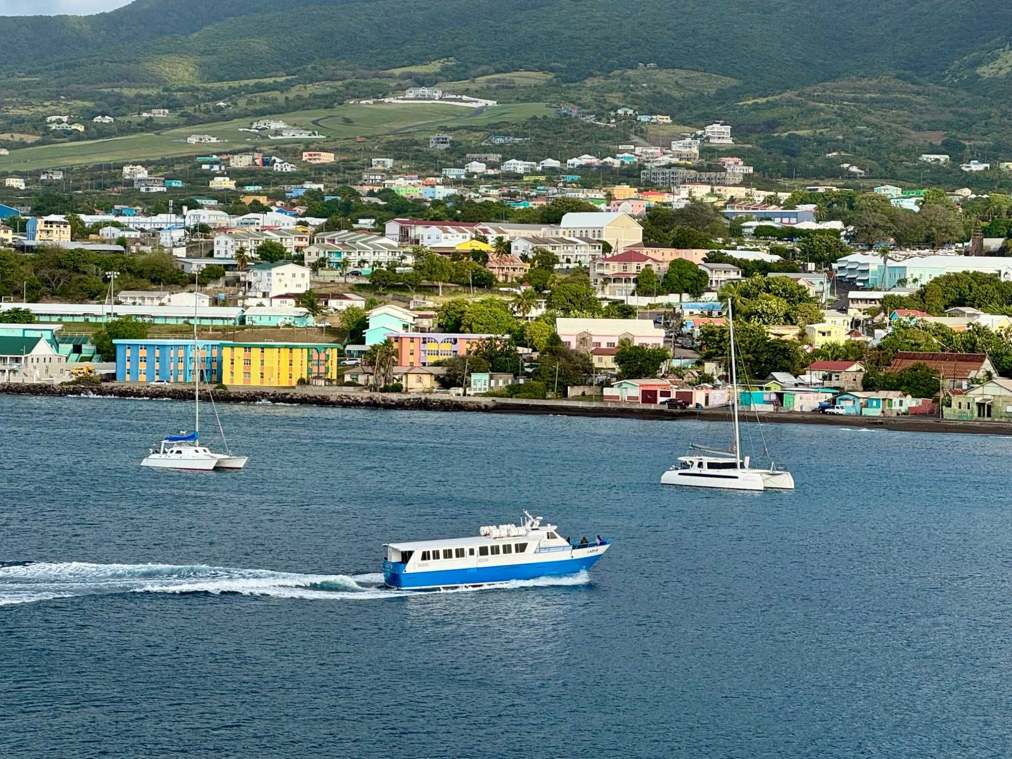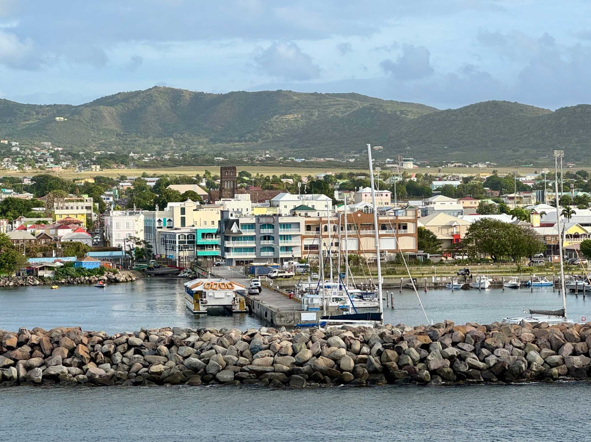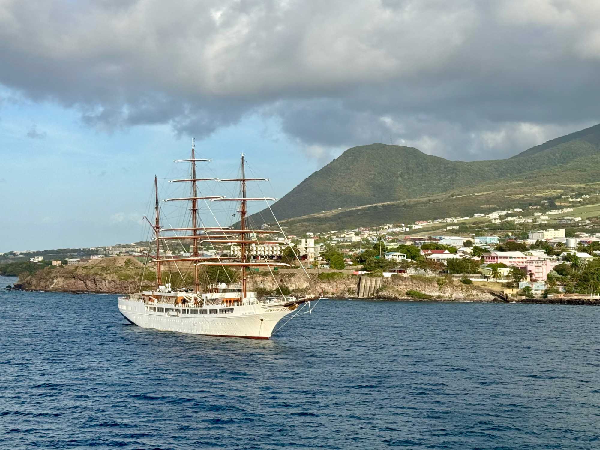Ce matin, une fébrilité toute particulière nous anime alors que nous accostons à Basseterre, capitale de Saint-Kitts. Notre navire est amarré au Port Zante, sous un soleil déjà généreux. La mer scintille, le ciel est d’un bleu éclatant… tout annonce une splendide journée tropicale.