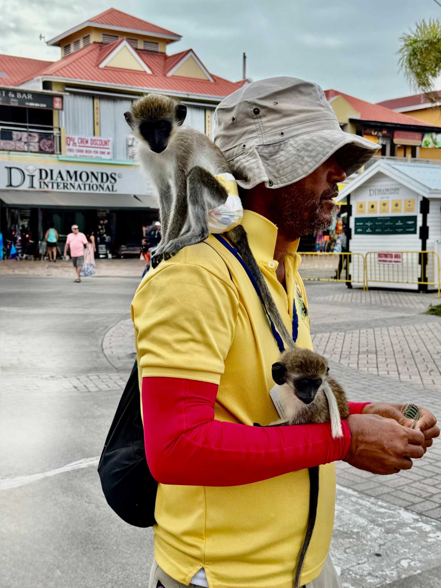 Notre balade se poursuit jusqu’au Amina Craft Market, où l’artisanat local est à l’honneur : batiks colorés, objets tressés, souvenirs typiques. Nous prenons de nombreuses photos, notamment de danseurs locaux costumés qui animent la place au rythme des musiques caribéennes. Les couleurs éclatantes, les sourires et l’énergie ambiante ajoutent une touche festive à notre matinée.