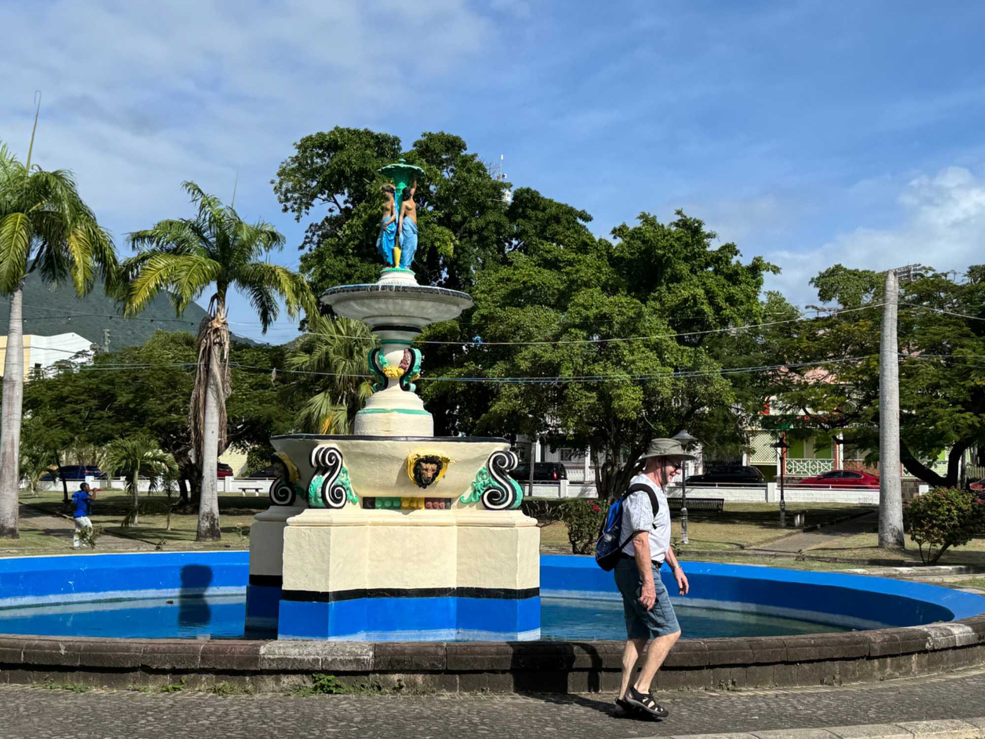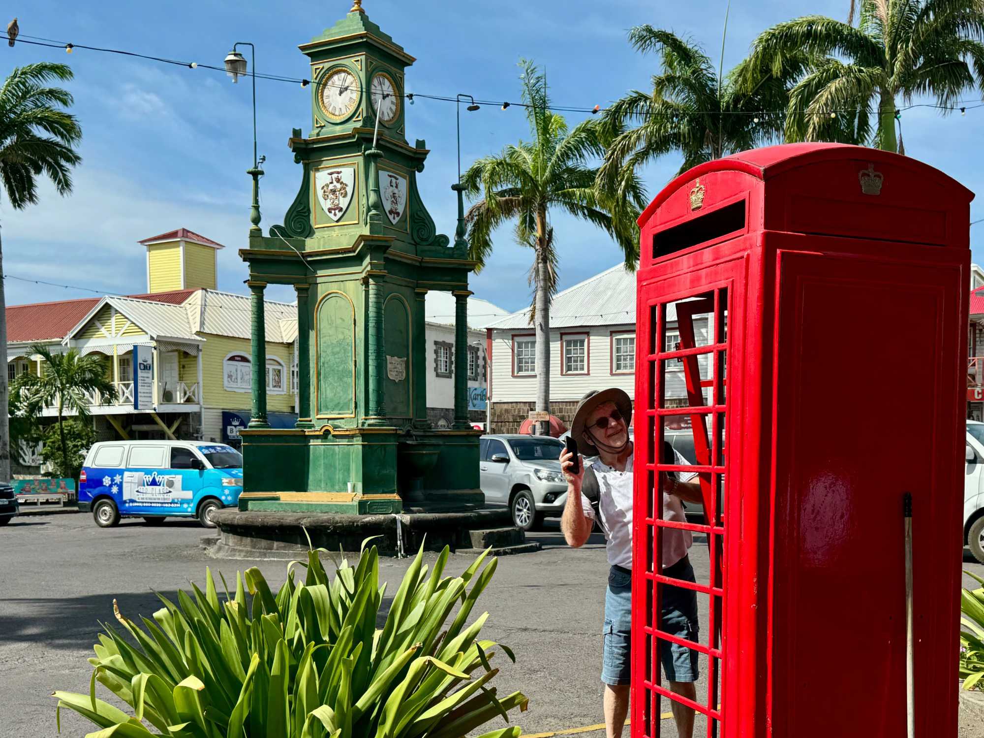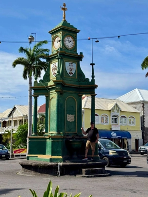 Après un excellent petit-déjeuner à l’Oceanview Café, nous descendons à terre pour une promenade pédestre avec plusieurs voyageurs. Nous quittons le port à pied en direction du cœur historique de la ville. Notre première halte nous mène au Berkeley Memorial, élégante horloge victorienne érigée au XIXᵉ siècle. Nous poursuivons vers Independence Square, ancienne place du marché chargée d’histoire, aujourd’hui paisible et verdoyante, mais autrefois témoin d’heures plus sombres liées à l’esclavage.