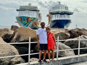 Pendant ce temps, certains voyageurs choisissent de profiter de la plage et de la mer turquoise, tandis que d’autres optent pour un tour panoramique de l’île jusqu’à Timothy Hill, ce promontoire spectaculaire où l’océan Atlantique rencontre la mer des Caraïbes. Le panorama y est saisissant. Un grand merci à Guylaine pour ses magnifiques photos qu’elle partage généreusement avec le groupe.
