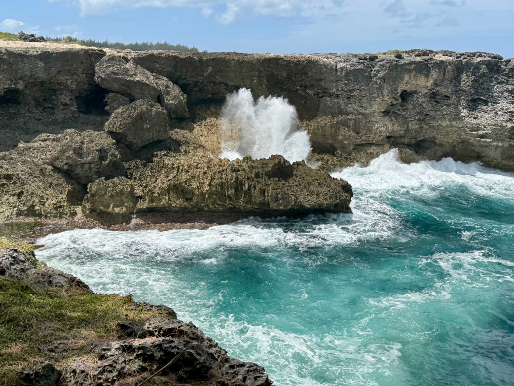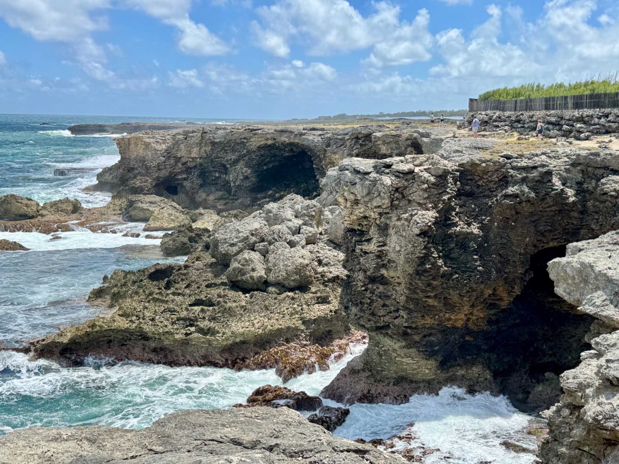 À l’extrémité nord, arrêt à l’extérieur de Animal Flower Cave. Perchée au sommet des falaises, elle offre une vue spectaculaire sur l’Atlantique. Les vagues se fracassent contre les formations rocheuses dans un décor grandiose et sauvage.