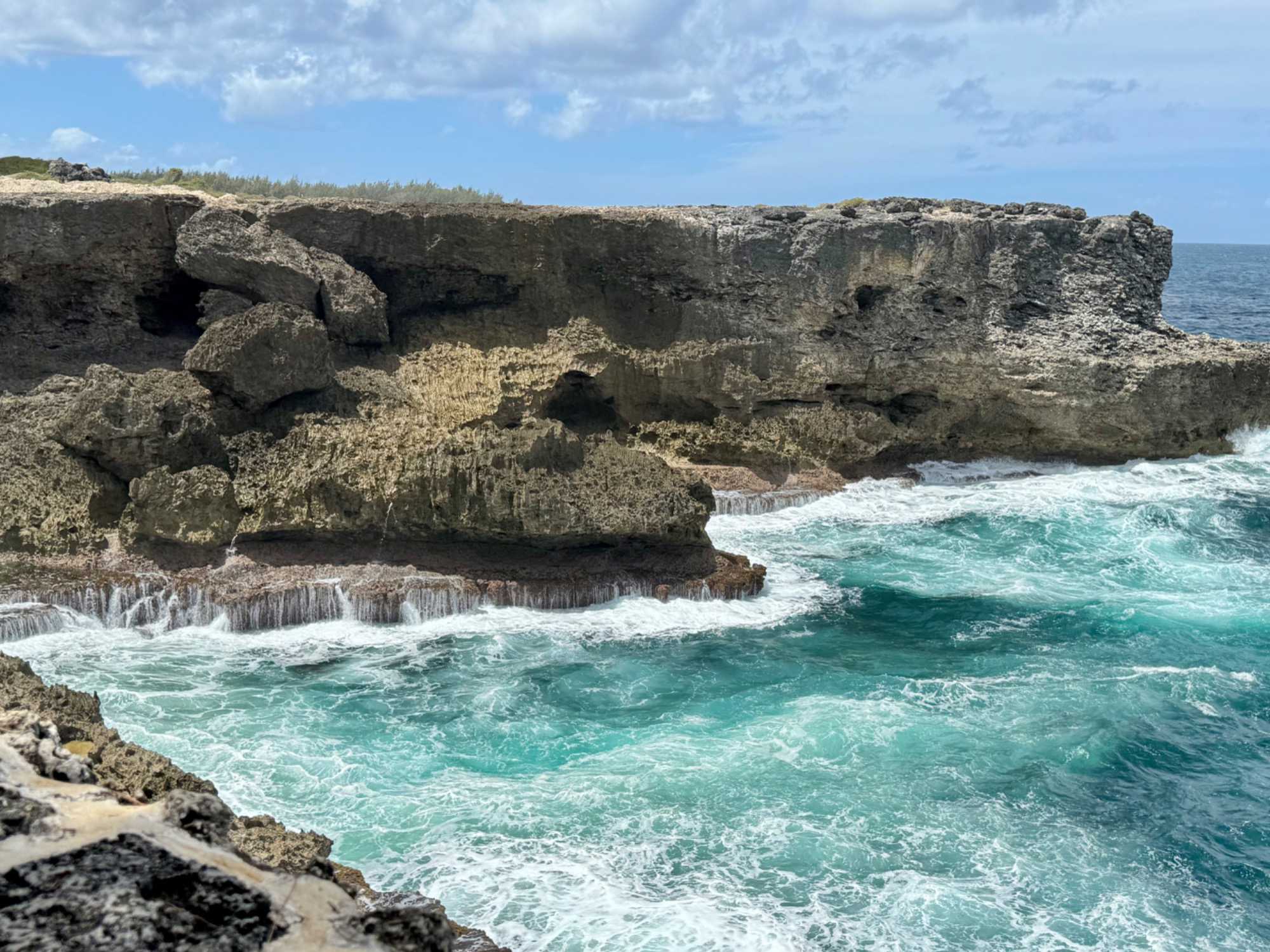 Le paysage change radicalement à l’Est lorsque nous atteignons la façade atlantique. À Bathsheba Park, la mer est agitée, les vents soutenus et les formations rocheuses sculptées par l’érosion composent un tableau naturel spectaculaire. Le contraste entre la douceur de la côte de la mer des Caraïbes et la fougue de l’Atlantique illustre parfaitement la diversité des paysages barbadiens.