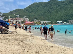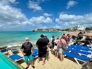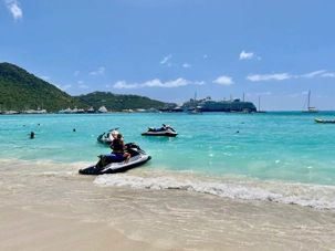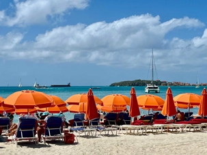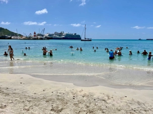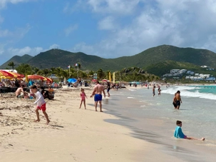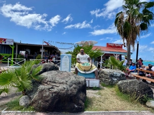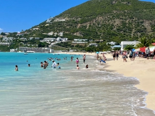 Notre parcours se poursuit jusqu’à Orient Bay, vaste plage de sable blanc bordée d’une mer éclatante. Nous y passons au moins une heure complète afin de profiter pleinement de ce décor paradisiaque. Plusieurs voyageurs se baignent dans les eaux turquoise, d’autres marchent le long du rivage ou se détendent à l’ombre, bercés par la brise marine. Cette pause prolongée nous permet de savourer pleinement l’ambiance balnéaire de l’île.