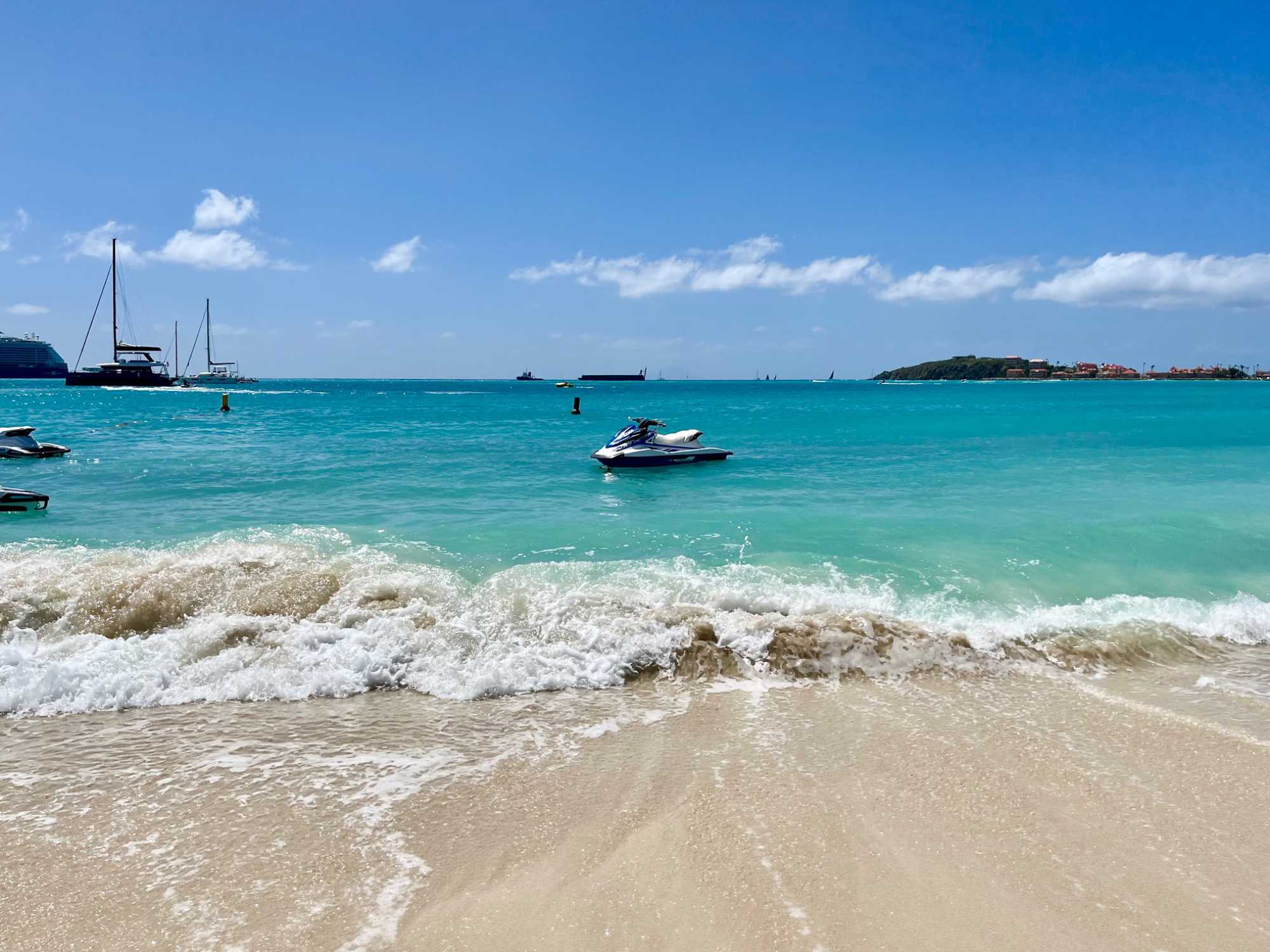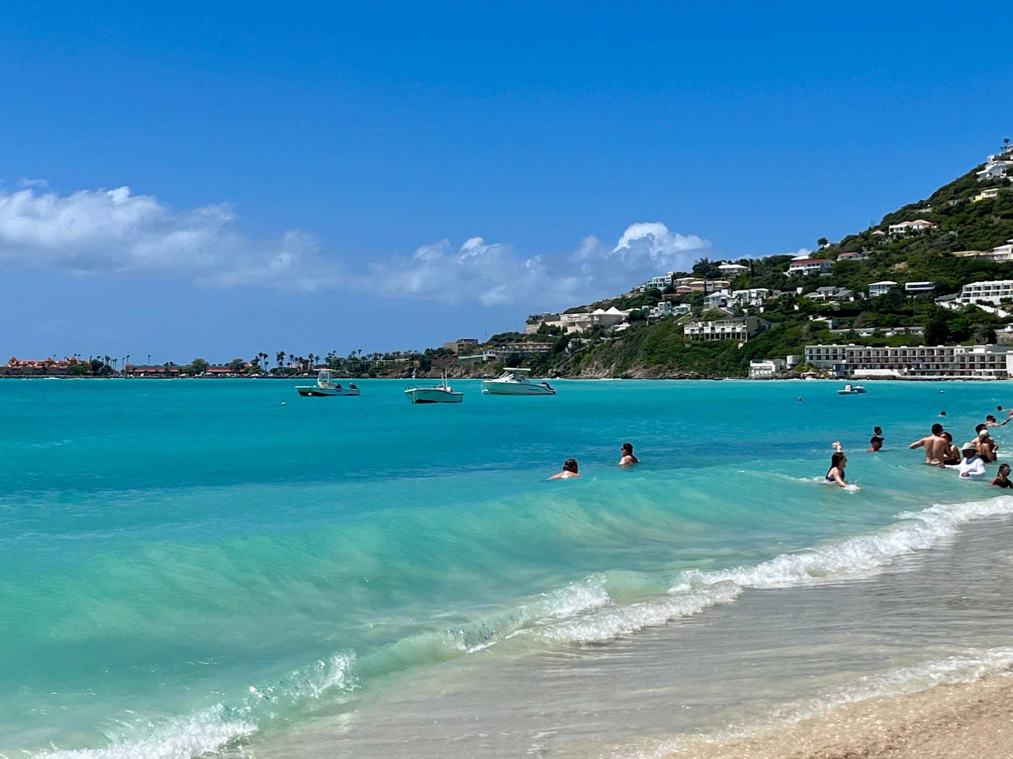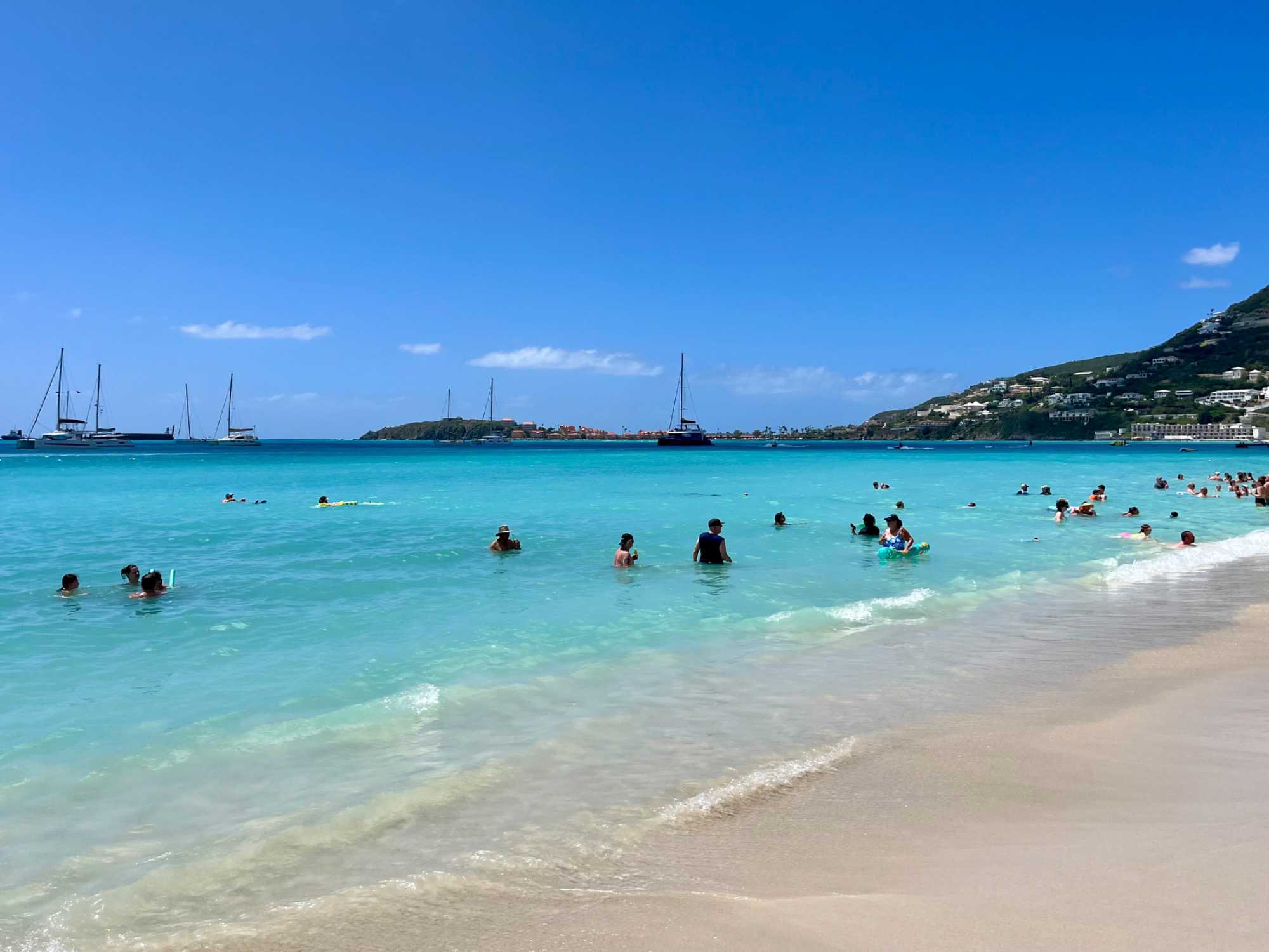 Nous poursuivons ensuite vers le secteur élégant des Terres Basses, réputé pour ses plages spectaculaires. Nous longeons Baie Rouge, Baie aux Prunes et Cupecoy, où falaises calcaires, sable clair et eaux turquoise composent des panoramas dignes des plus belles cartes postales. Saint-Martin compte des dizaines de plages séduisantes, chacune avec son caractère propre, et l’on comprend rapidement pourquoi elle attire tant d’amateurs de soleil et de mer.