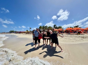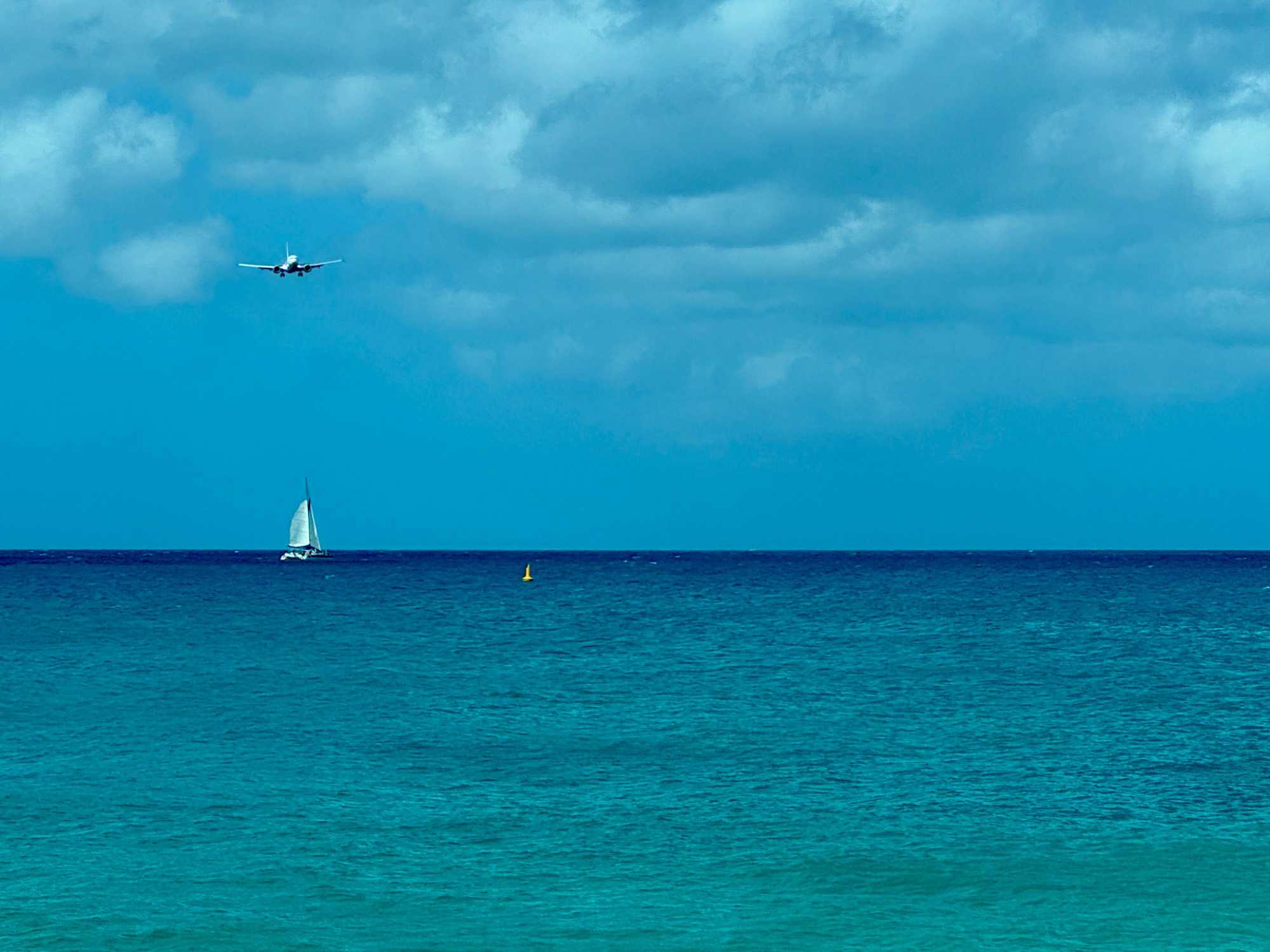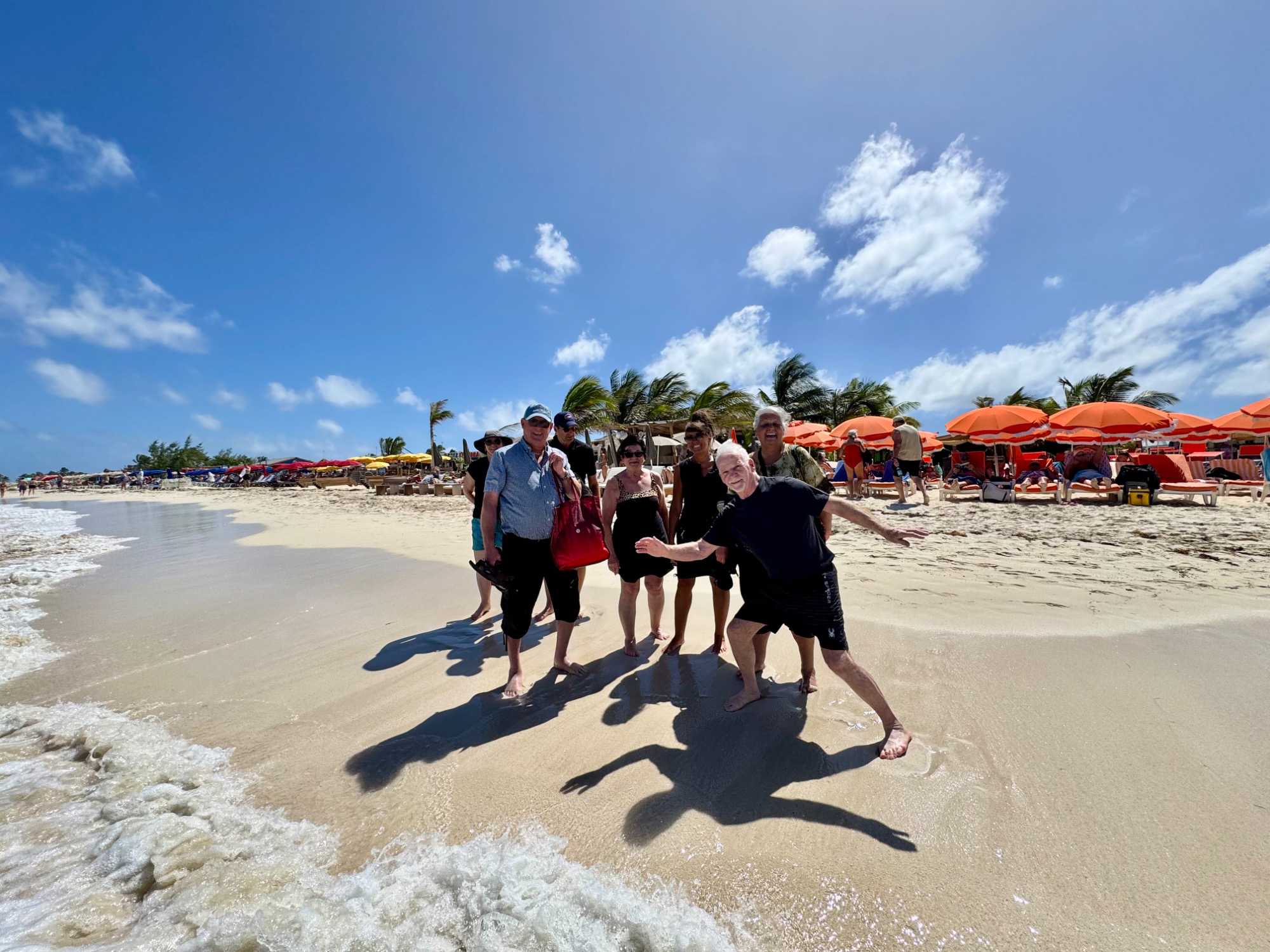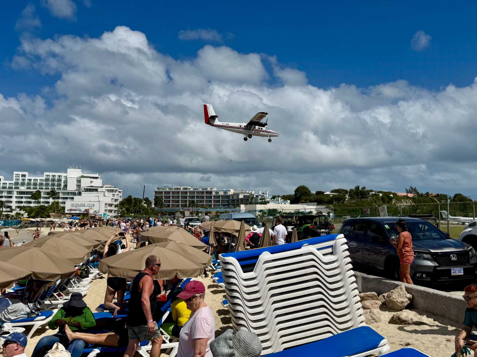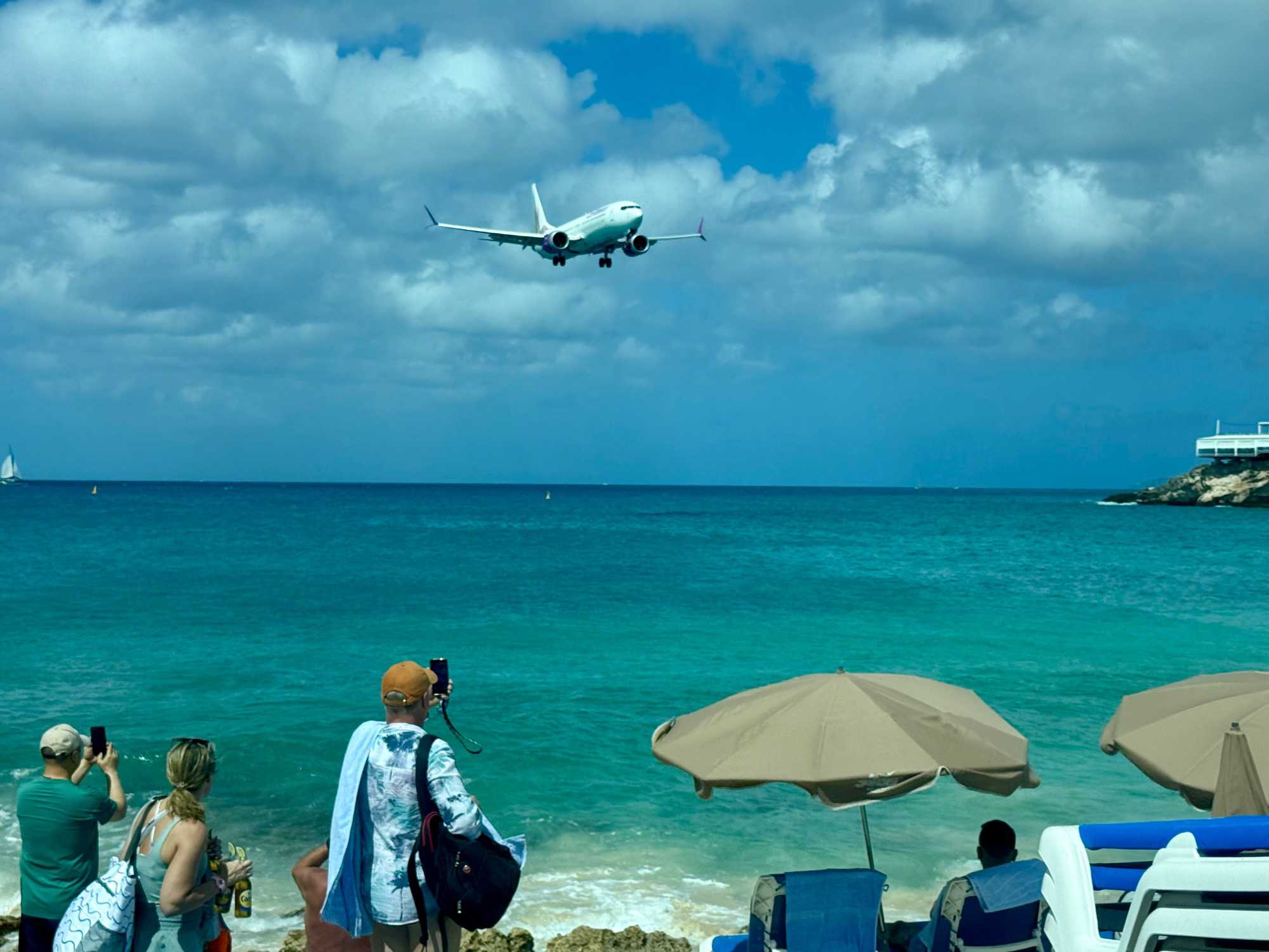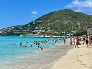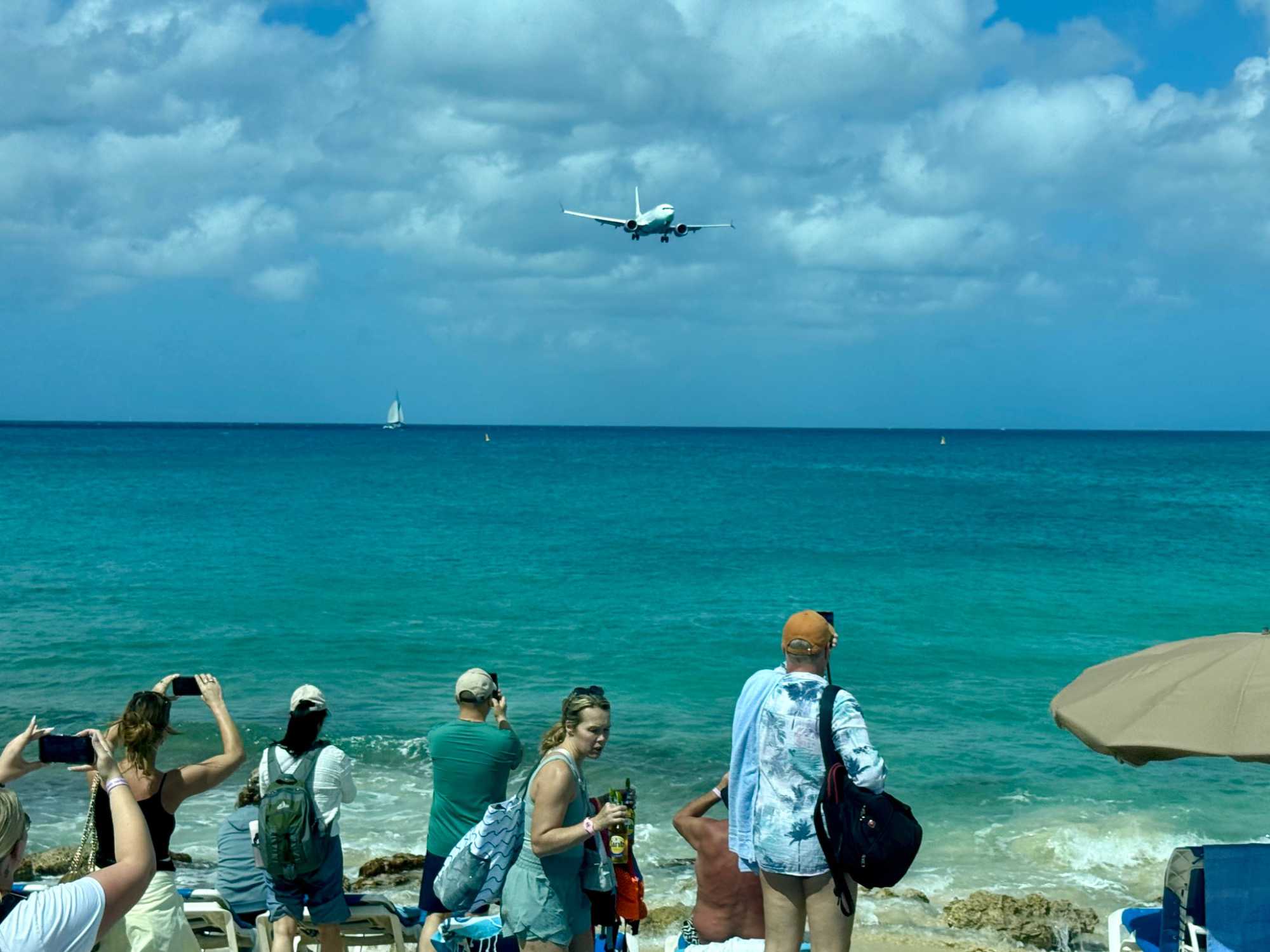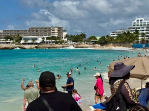 Notre premier arrêt nous mène à Maho Beach, aussi connue sous le nom de Maho Bay. Ce lieu est célèbre dans le monde entier pour sa proximité spectaculaire avec l’aéroport. Nous assistons à un moment saisissant : des avions passent à très basse altitude au-dessus de la plage avant d’atterrir tout près de nous. Le rugissement des moteurs, le souffle puissant au décollage et l’enthousiasme des spectateurs créent une ambiance à la fois impressionnante et électrisante.