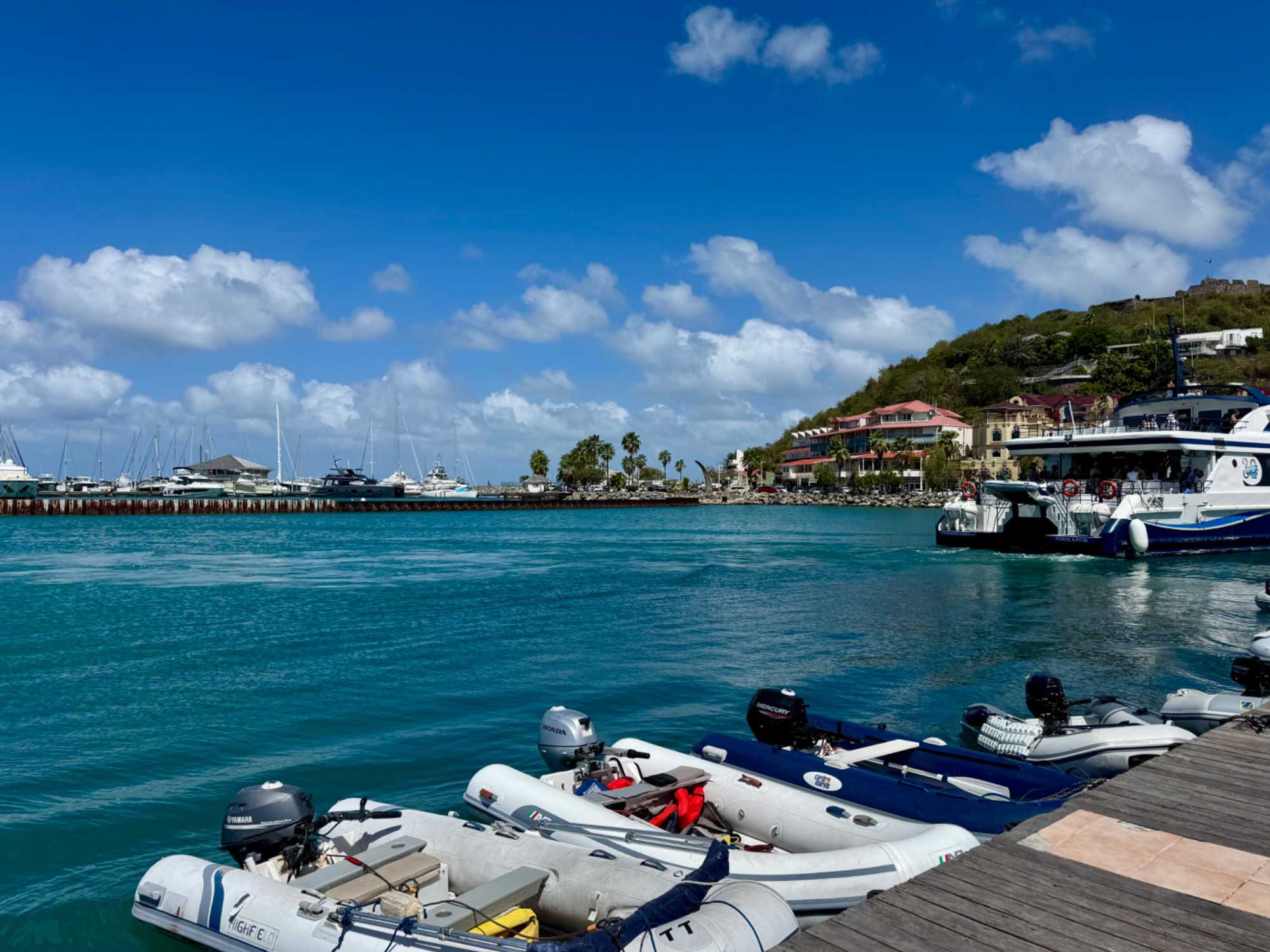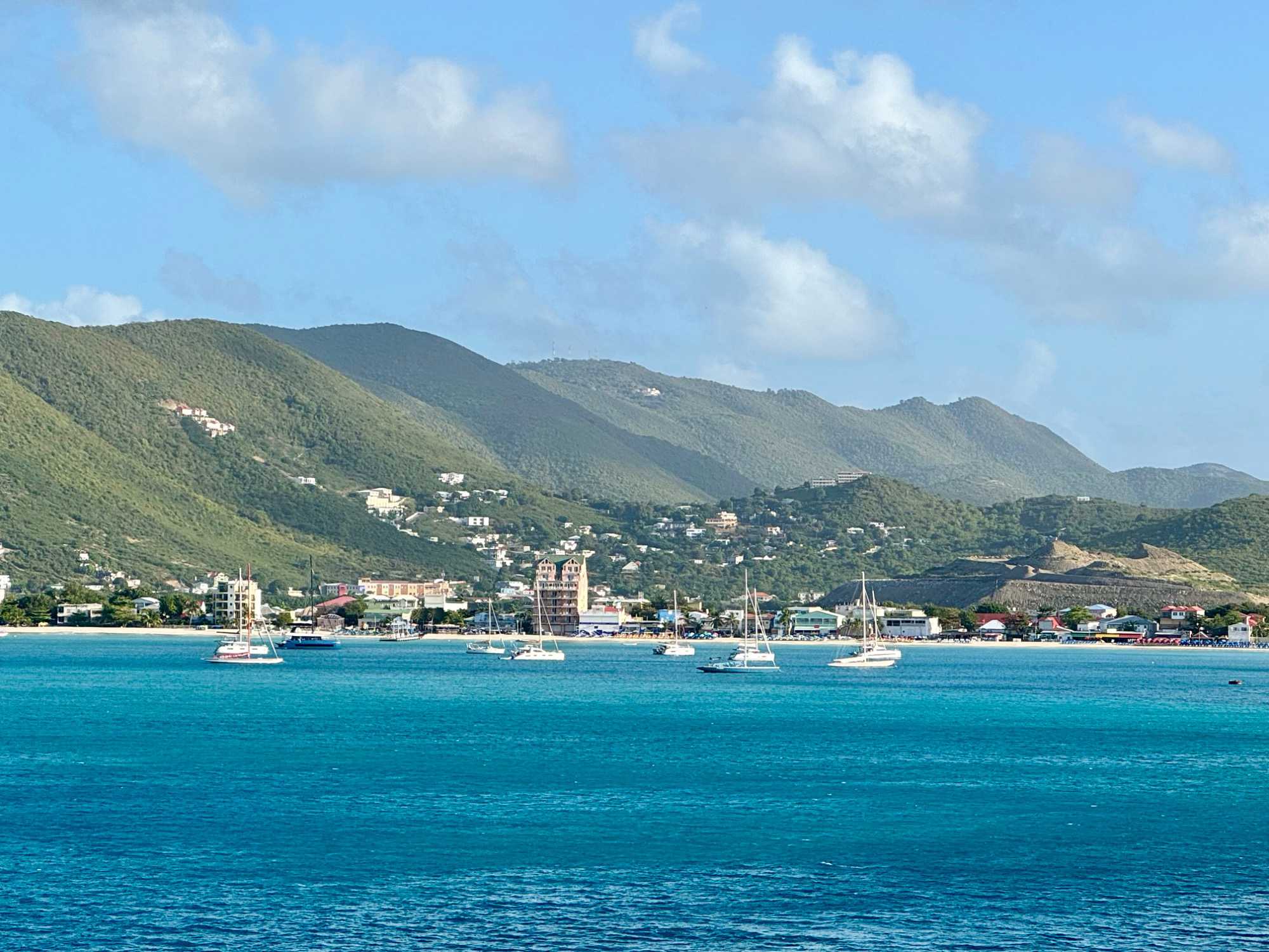 Ce matin, notre navire accoste à Philipsburg, capitale de la partie néerlandaise de l’île de Saint-Martin. Petite par sa taille, l’île possède une identité unique : depuis le XVIIᵉ siècle, elle est partagée entre la France au nord et les Pays-Bas au sud. Cette cohabitation harmonieuse a façonné un fascinant mélange de cultures, de langues et de traditions.