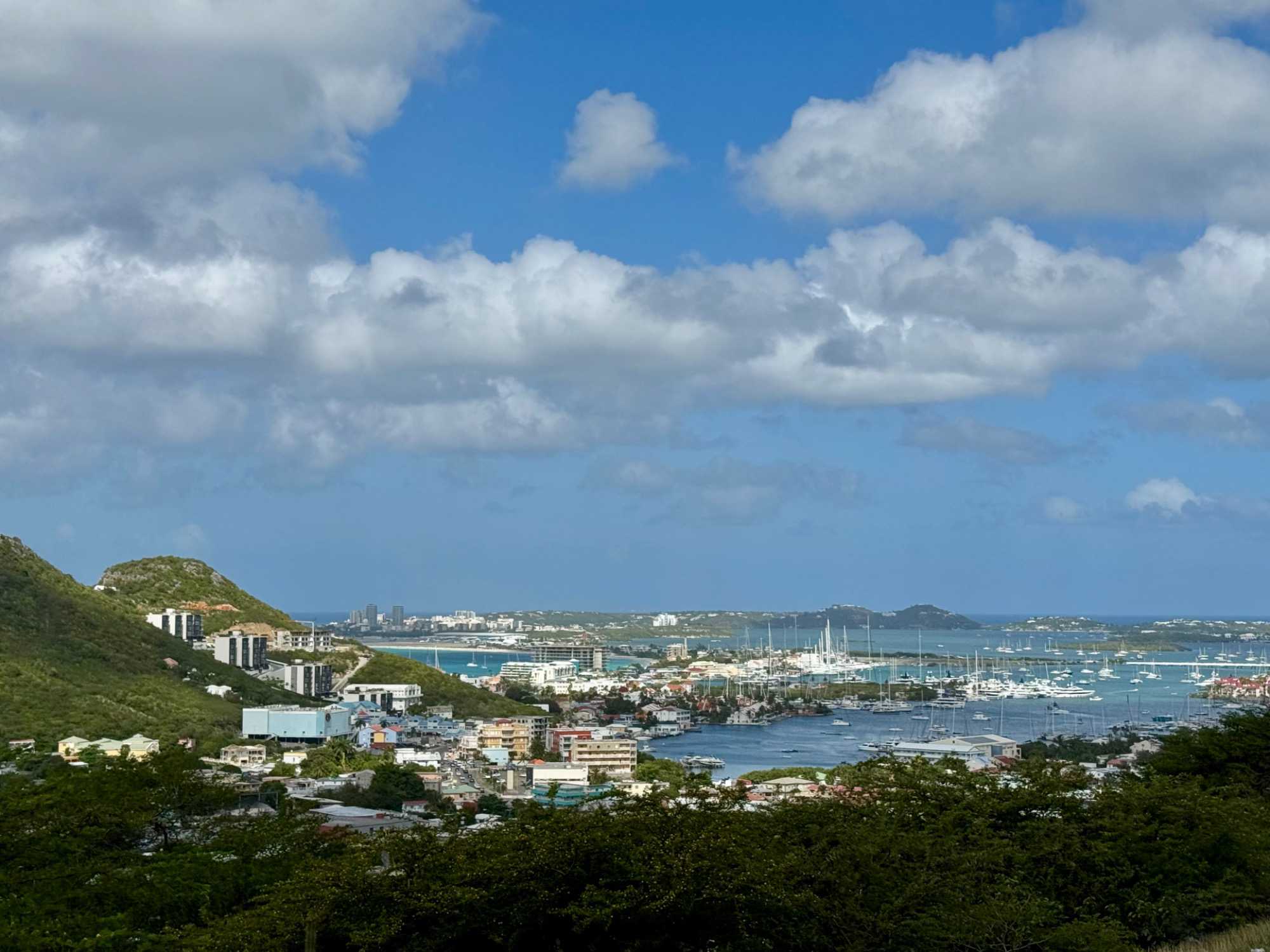 Nous mettons ensuite le cap vers Oyster Pond, à la frontière entre les deux territoires. Ce secteur plus paisible offre de magnifiques points de vue sur l’océan et les collines environnantes. L’atmosphère y est plus tranquille, presque secrète.