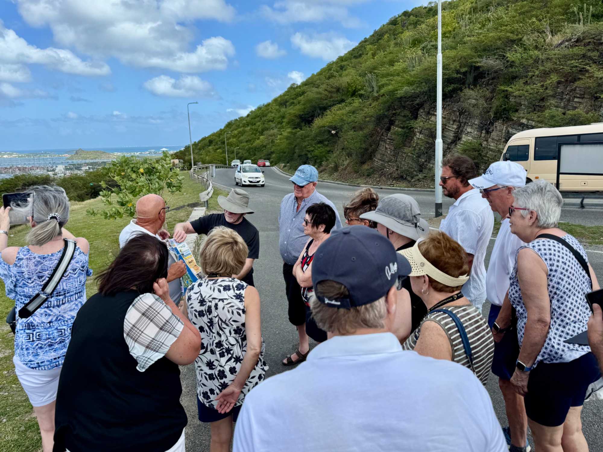 Après le déjeuner, notre groupe se rassemble pour une excursion guidée en français, conçue pour nous faire découvrir les plus beaux coins de l’île. Accompagnés d’un guide installé ici depuis plus de vingt ans, nous partons pour un véritable tour complet de l’île.