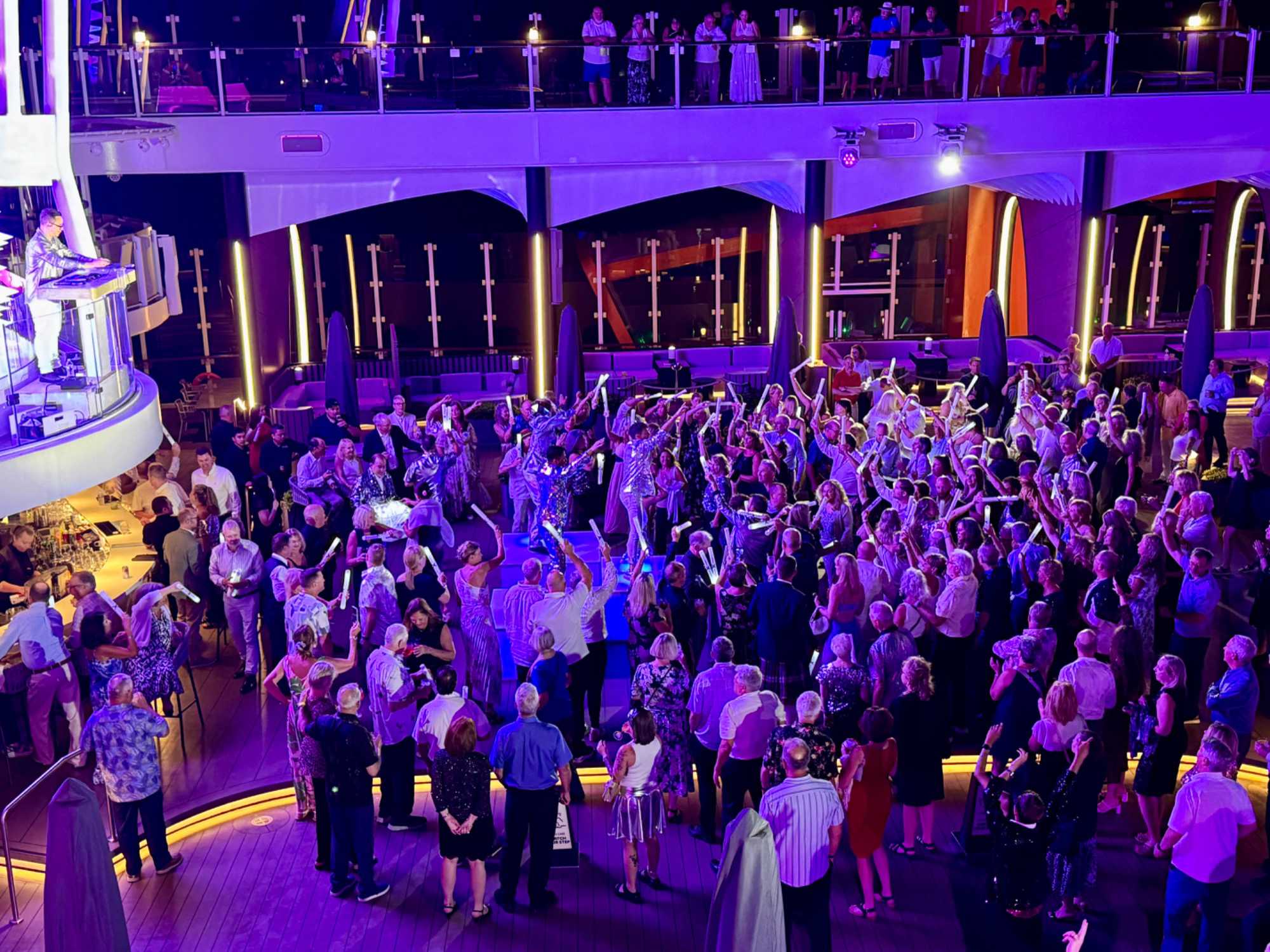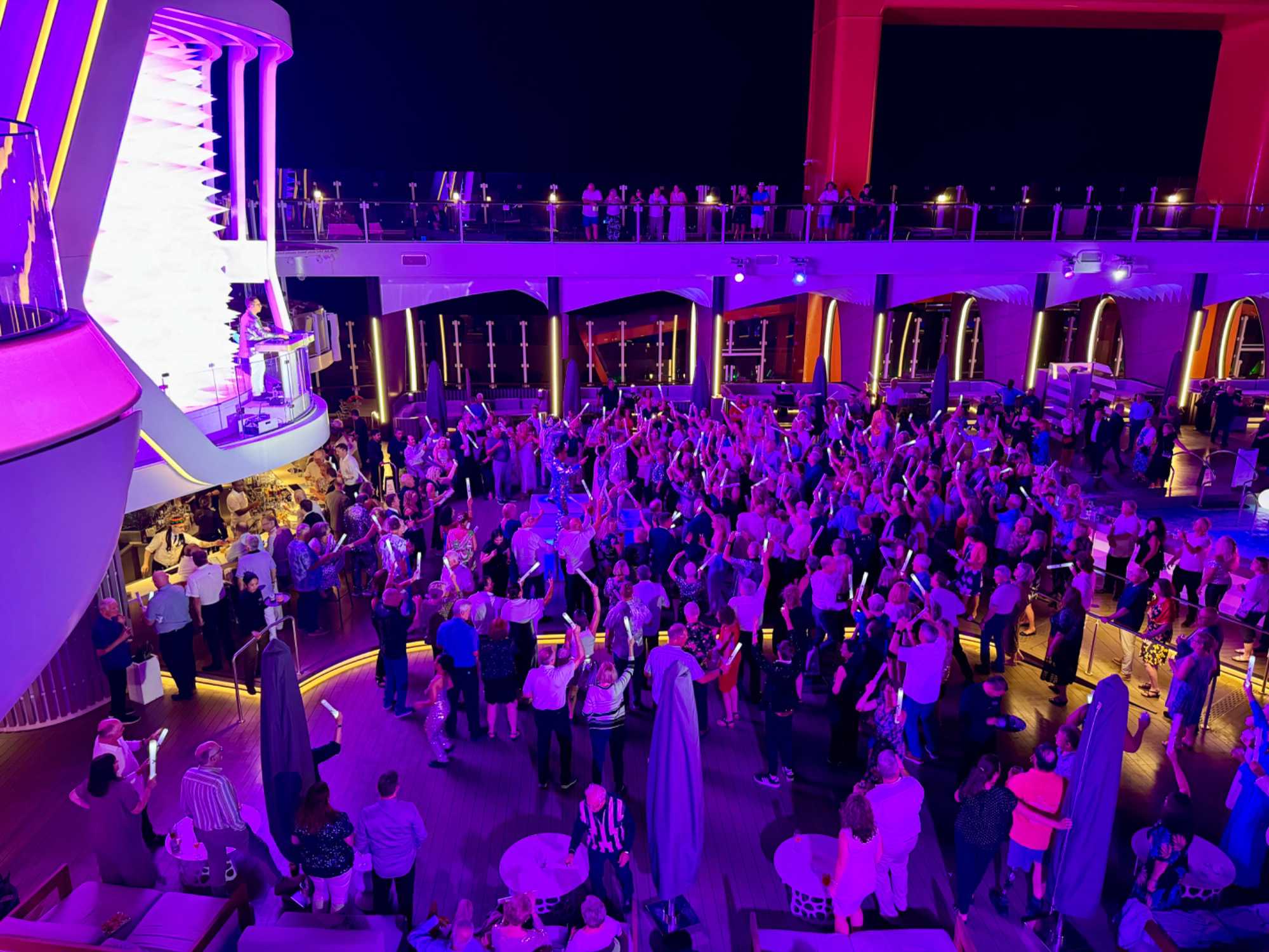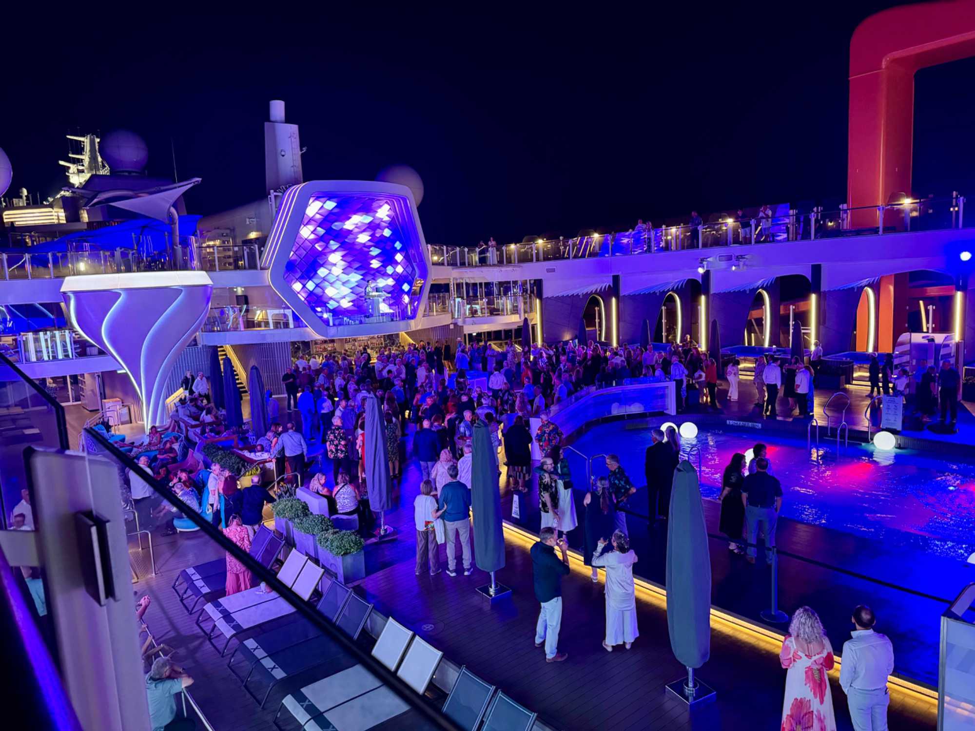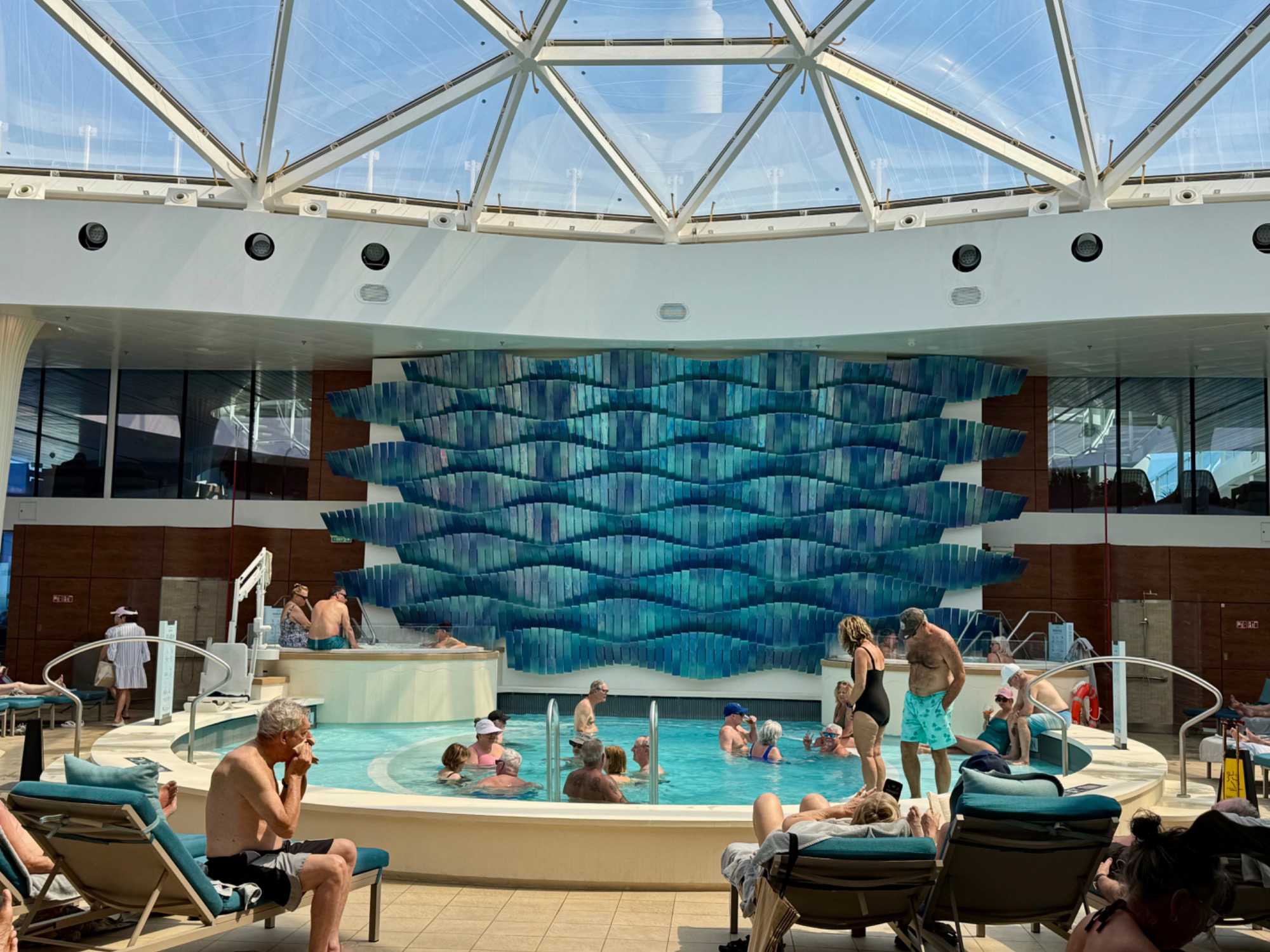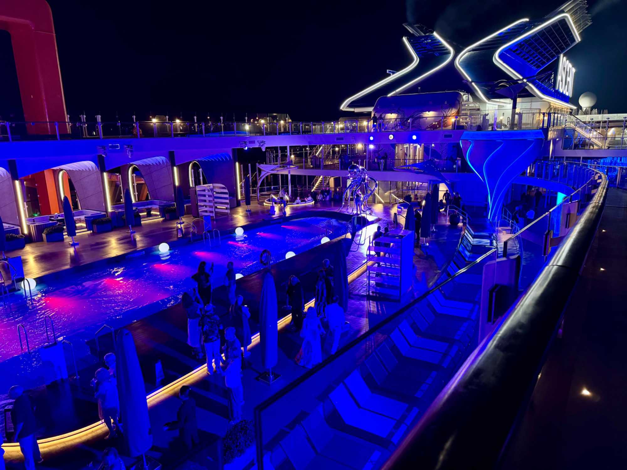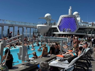 Comme toujours à bord, les activités ne manquent pas. Les plus actifs participent à un cours de danse latine, à une séance d’exercices ou à une marche sur la piste extérieure. D’autres préfèrent assister à une conférence, écouter de la musique en direct ou participer à des jeux organisés par l’équipe du navire. Les amateurs de détente se dirigent vers les piscines, les chaises longues ou encore vers le spa pour un moment de bien-être.