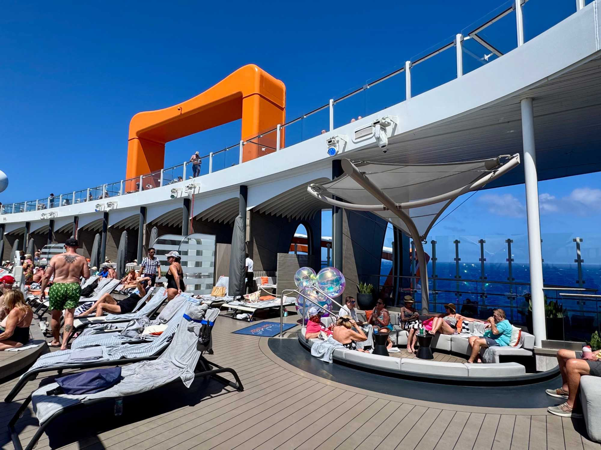 Les ponts supérieurs deviennent rapidement des lieux de rencontre animés. On s’y installe pour discuter, rire et profiter simplement du moment. Certains alternent entre baignade et lecture à l’ombre, pendant que d’autres explorent les boutiques du navire, tentent leur chance au casino ou se retrouvent autour d’un jeu de cartes. Chacun compose sa journée selon ses envies, sans contrainte ni horaire.