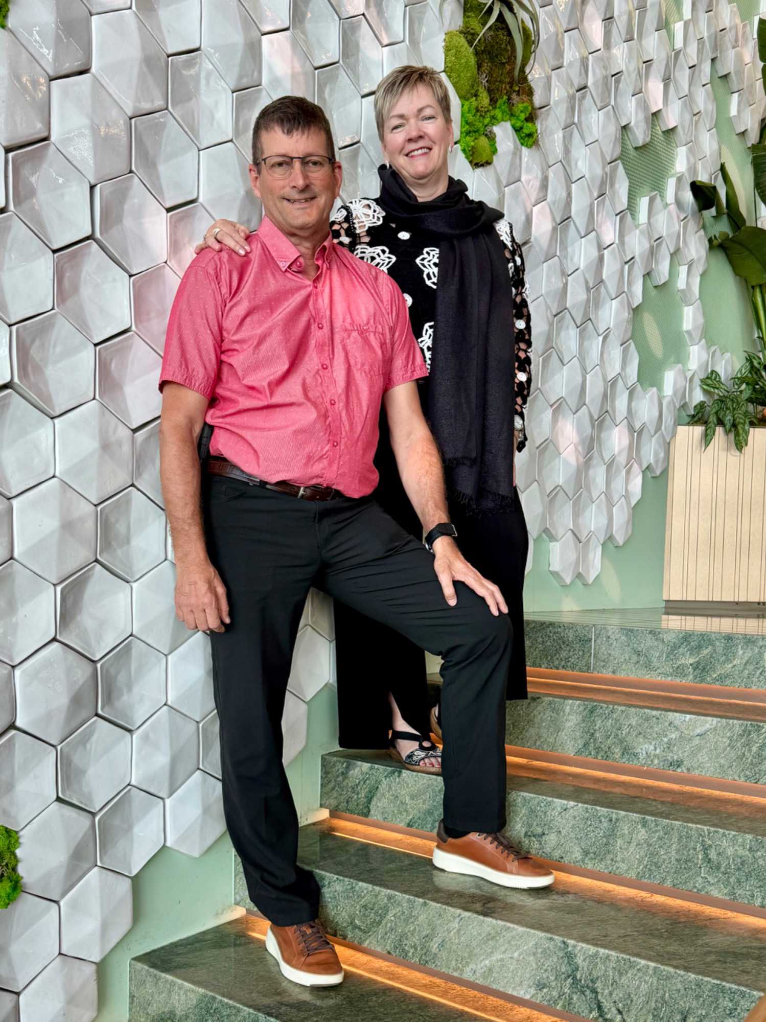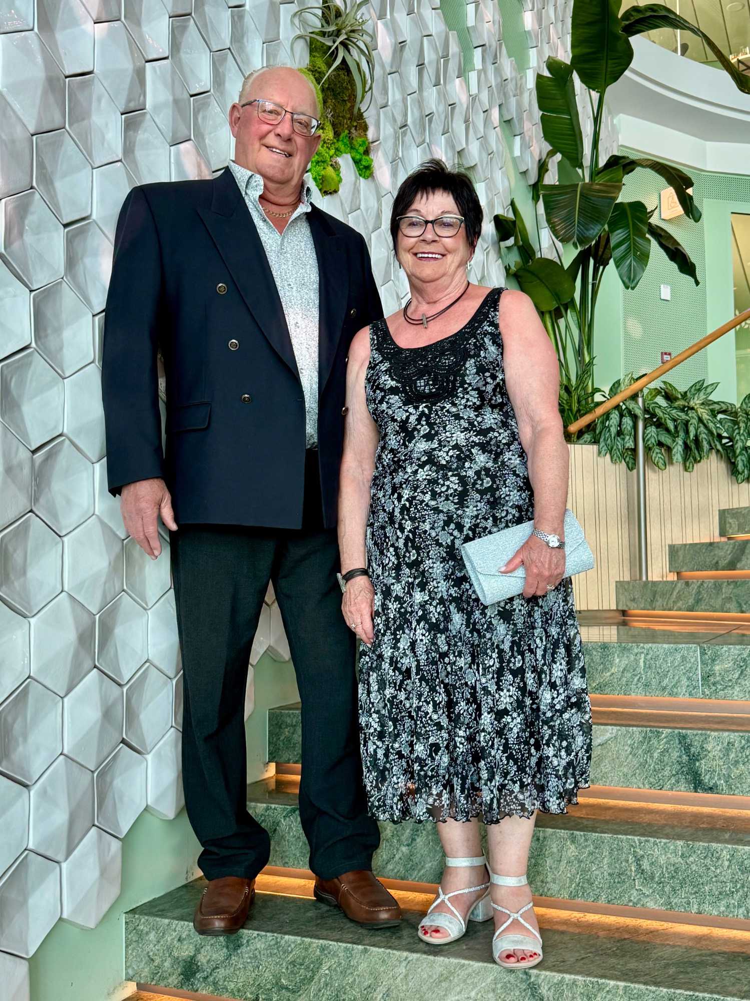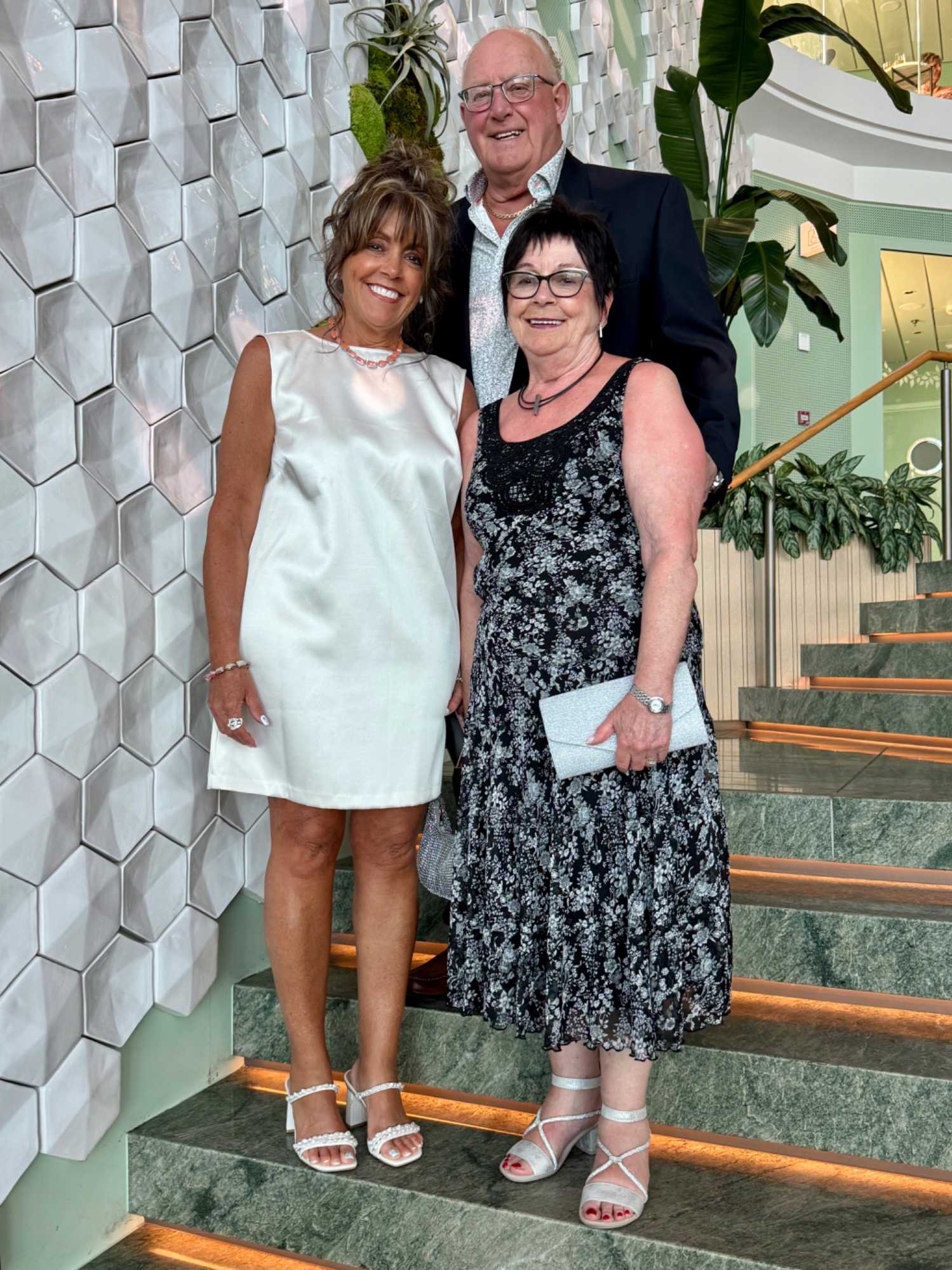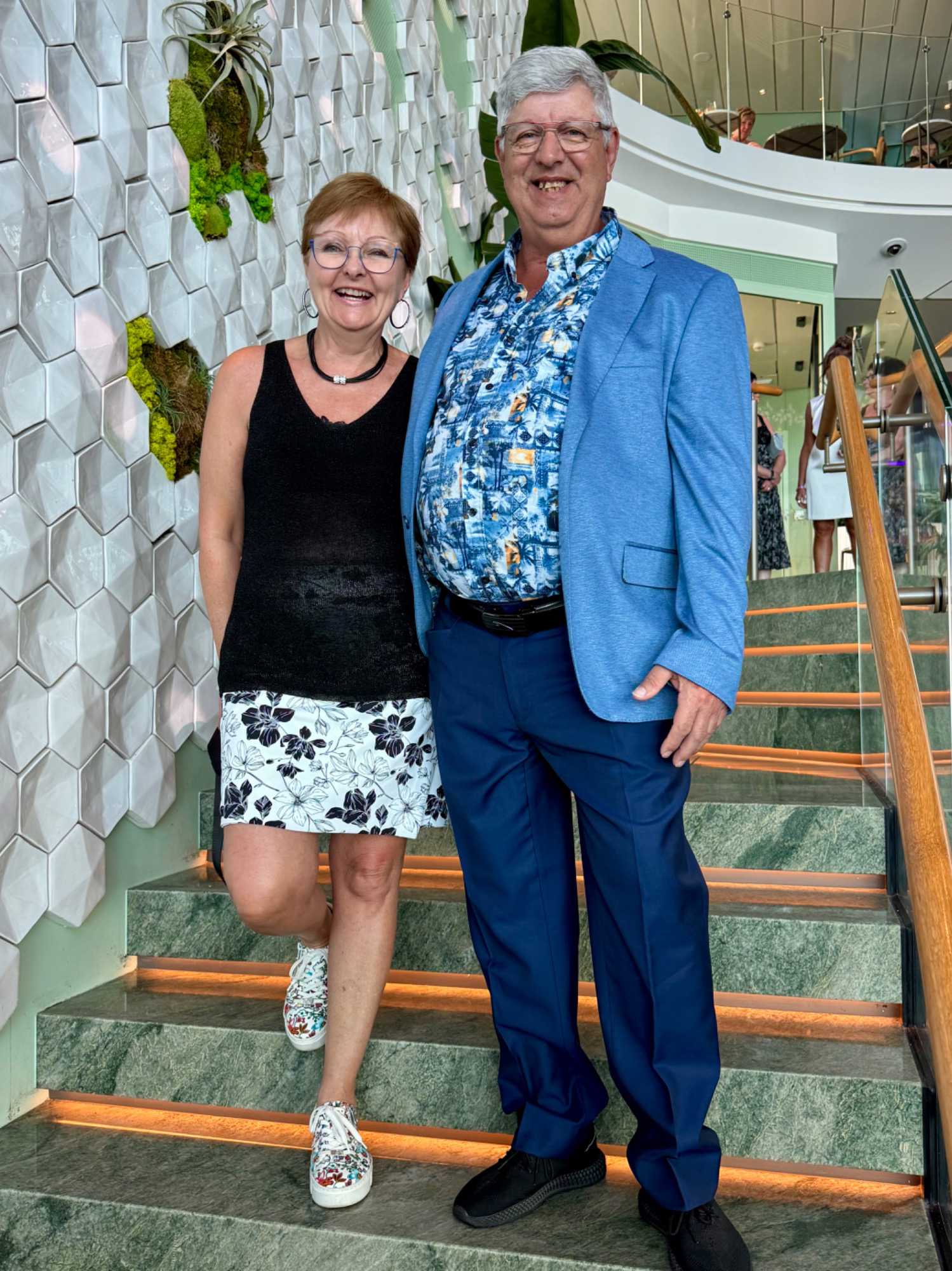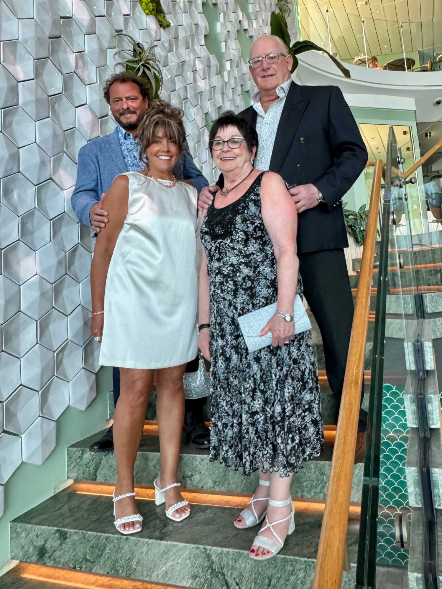 La soirée apporte ensuite une touche d’élégance particulière : c’est la soirée chic du capitaine, notre deuxième soirée élégante à bord. Les voyageurs se prêtent au jeu avec enthousiasme : les dames sont resplendissantes, les hommes impeccables. La fête bat son plein et la joie flotte dans l’air. Nous immortalisons le moment par une séance photo dans le majestueux escalier menant au restaurant Eden, de beaux souvenirs figés pour longtemps.