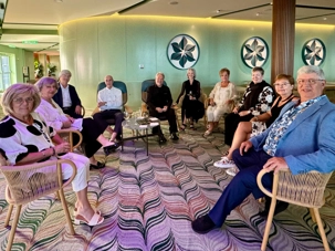 Dès le matin, plusieurs voyageurs prennent l’habitude d’aller faire un tour à l’extérieur. Marcher sur le pont, café à la main, en respirant l’air salin devient vite un petit rituel des journées en mer. Il y a quelque chose de profondément apaisant à regarder l’horizon sans limites. Après tout, dans quelques jours nous retrouverons le Québec et son hiver… alors nous savourons pleinement ces moments de douceur.