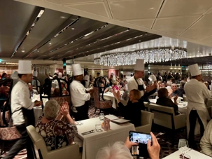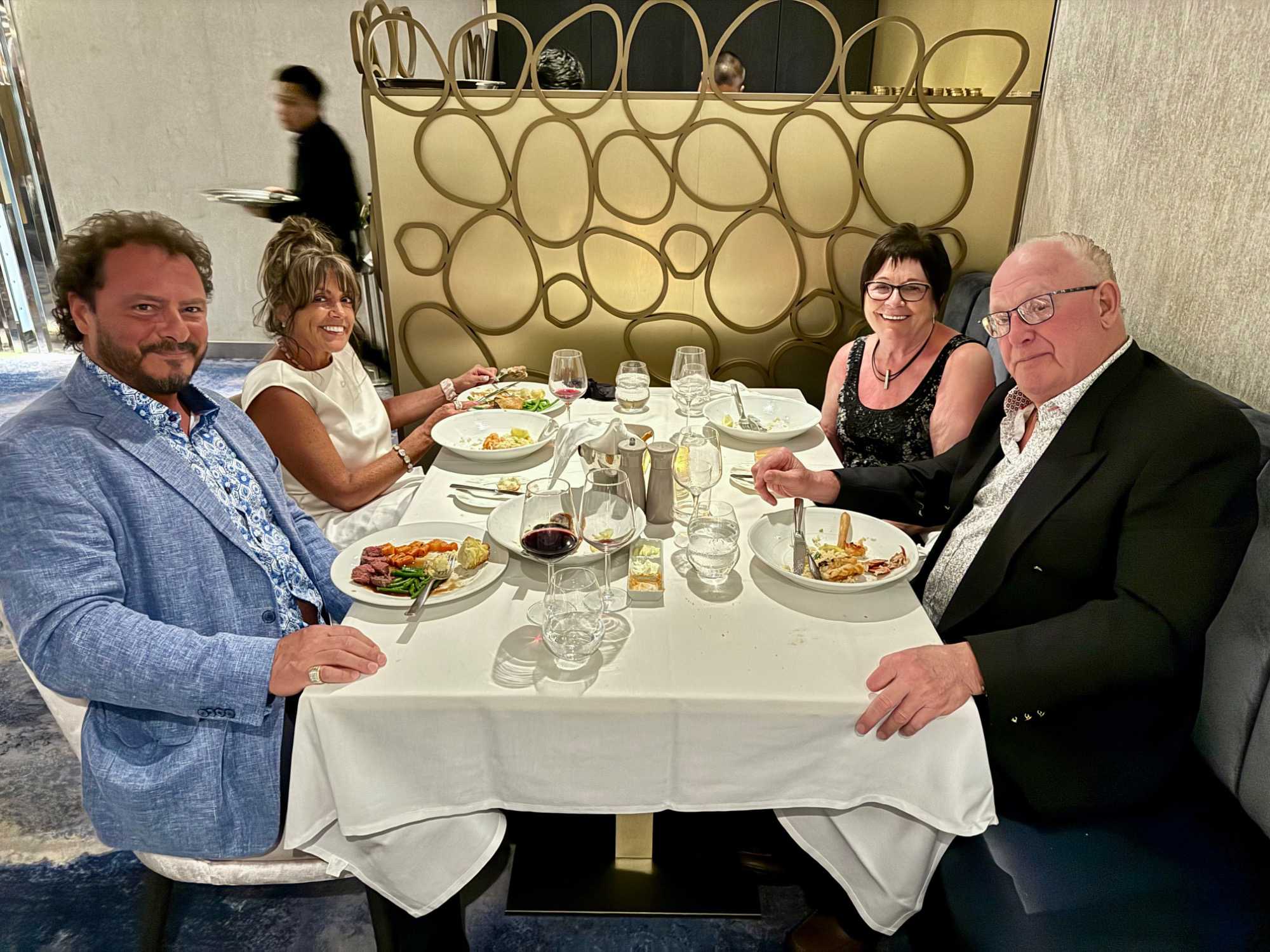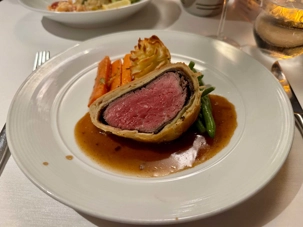 Le souper se déroule au restaurant avec un menu à la hauteur de l’événement. Coquilles Saint-Jacques, bœuf Wellington, queue de homard, filet d’églefin aux herbes… chaque plat est raffiné et les desserts, tout simplement décadents. Le service est attentionné comme toujours, et chacun savoure ce repas comme un véritable festin mémorable.
