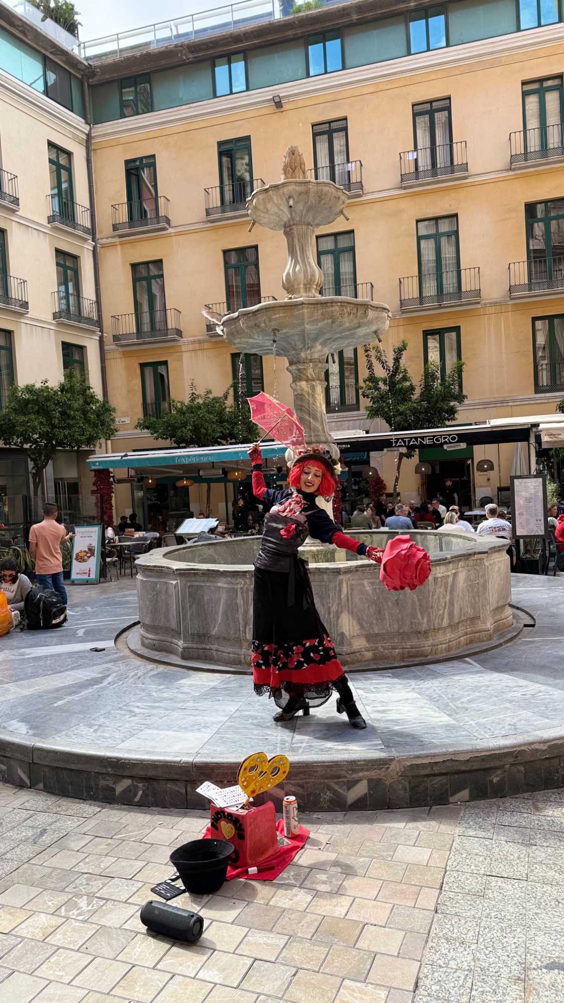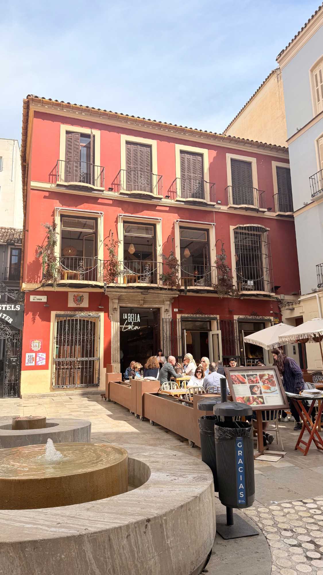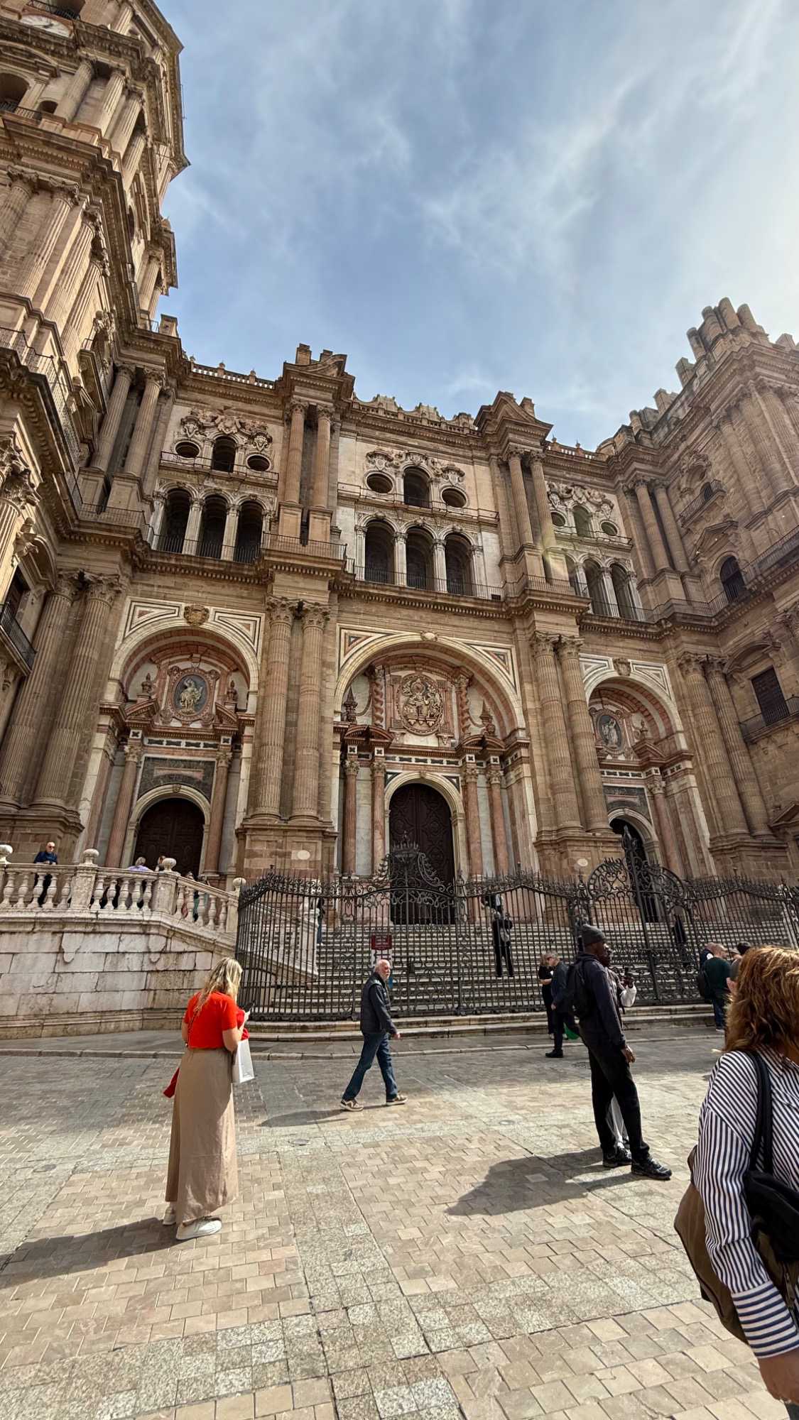 Après cette visite animée, nous avons poursuivi notre exploration à pied dans les rues de Málaga en direction de la célèbre cathédrale. Marcher dans le centre historique est un véritable plaisir : des rues piétonnes élégantes, des boutiques, des artistes de rue et de petites places baignées de soleil où l’on aime s’arrêter quelques instants.