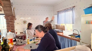 Maria riait avec nous, heureuse de partager ce moment. Les femmes de la cuisine sortaient parfois pour voir si tout allait bien… et repartaient en riant elles aussi.