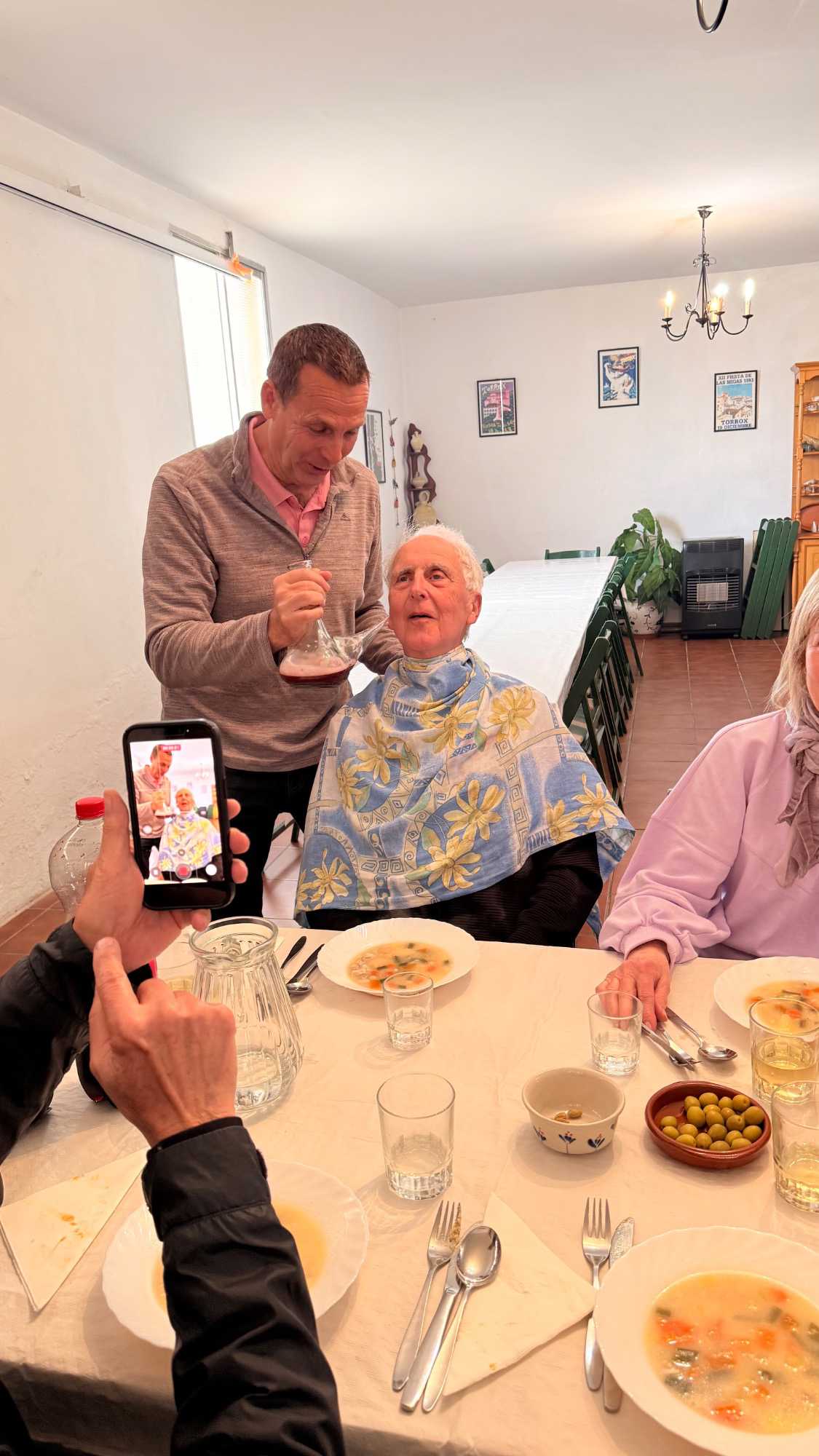 En début d’après-midi, nous avons été invités chez Maria, une dame de la région qui nous a accueillis chaleureusement dans sa maison de campagne, entourée d’oliviers et baignée par la lumière douce de la journée.