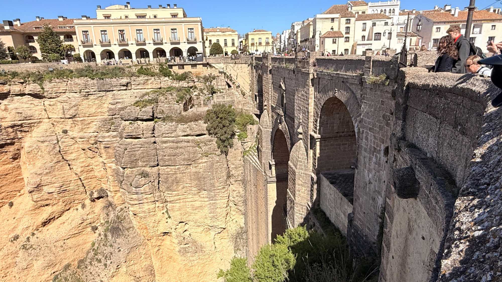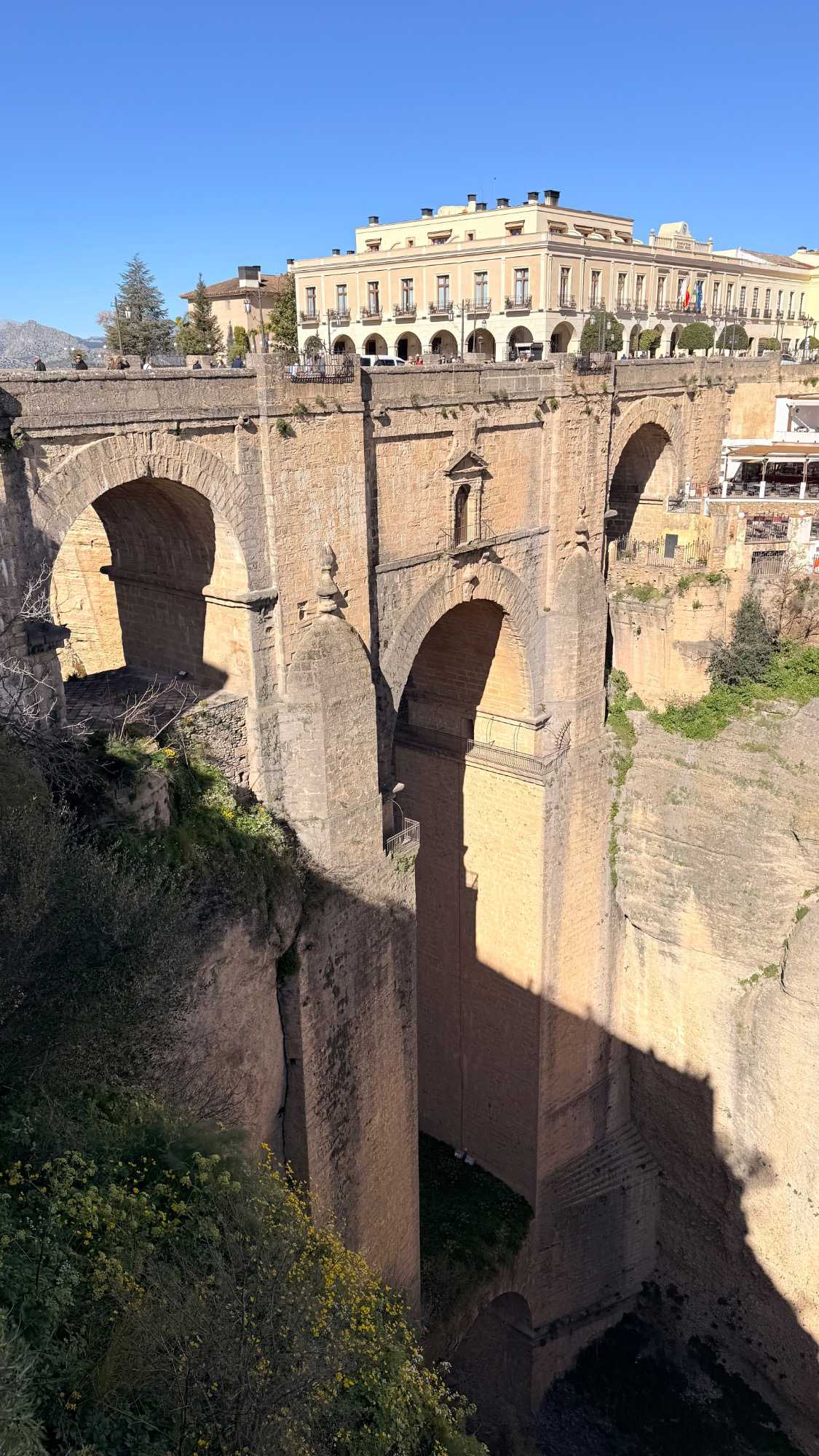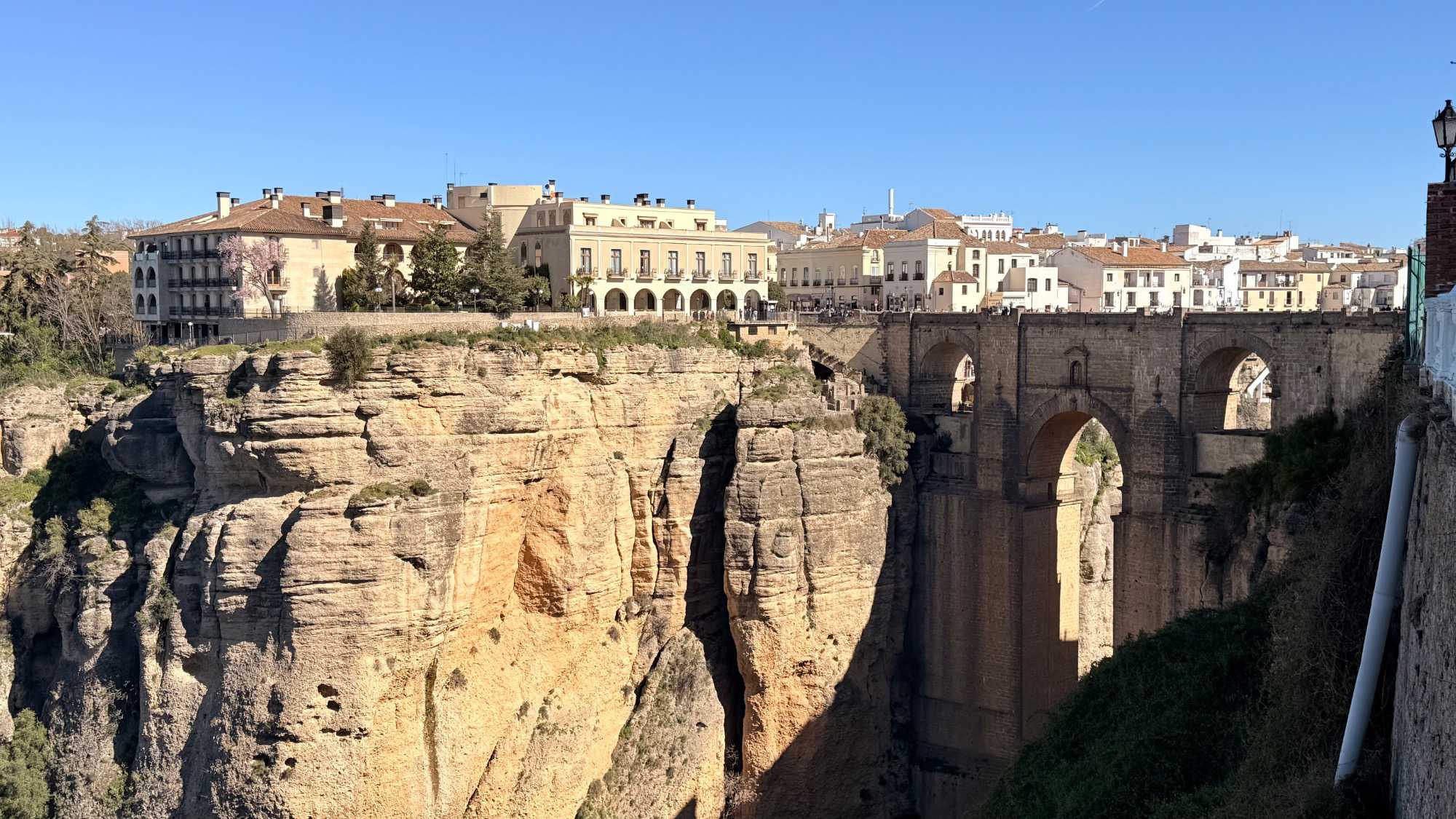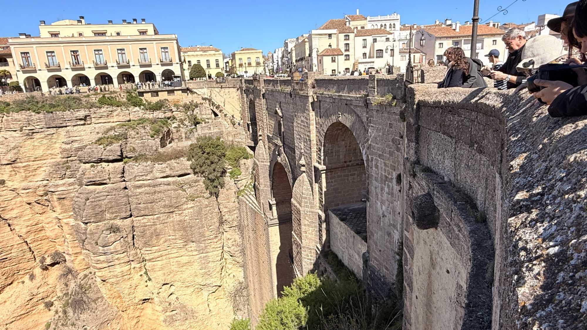 À notre arrivée,nous avons une petite distance à marcher pour nous rendre là où le spectacle était saisissant. La ville, perchée au sommet de son impressionnant canyon, semblait suspendue entre ciel et terre. Nous avons commencé notre découverte par le célèbre Puente Nuevo, majestueux, dominant les profondeurs vertigineuses. Le silence du matin rendait l’instant encore plus magique.