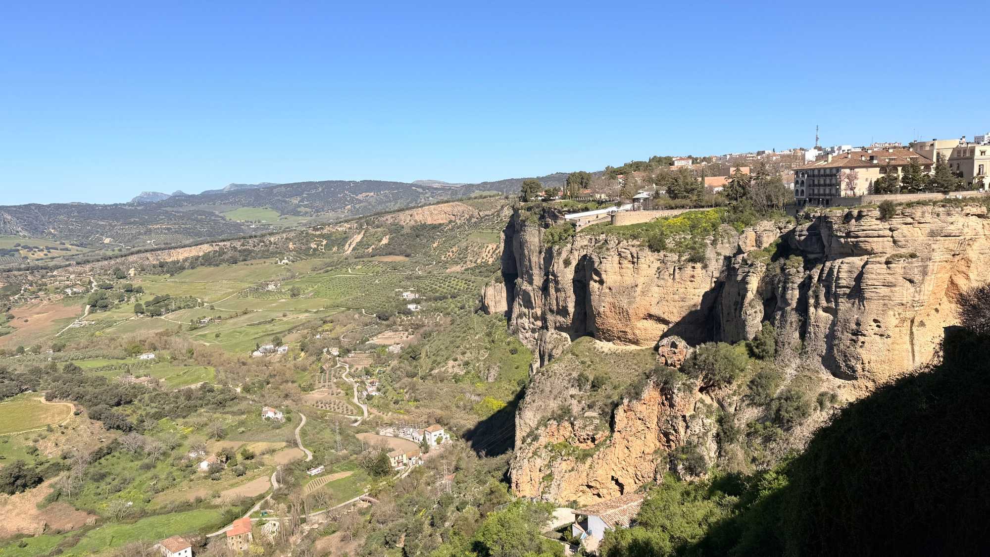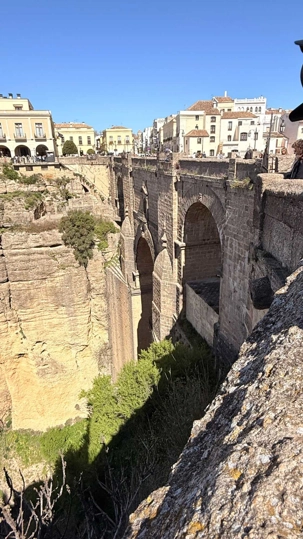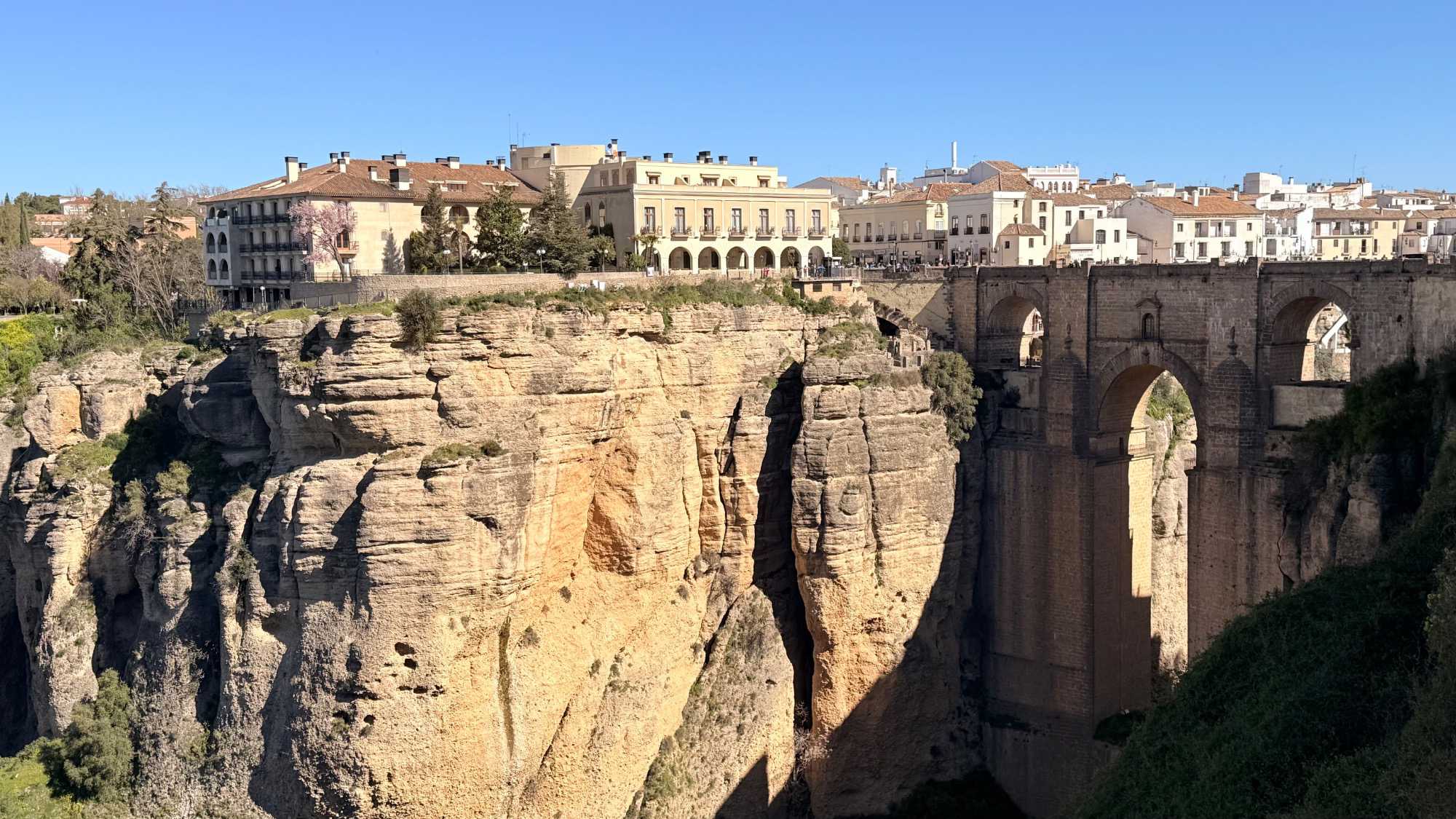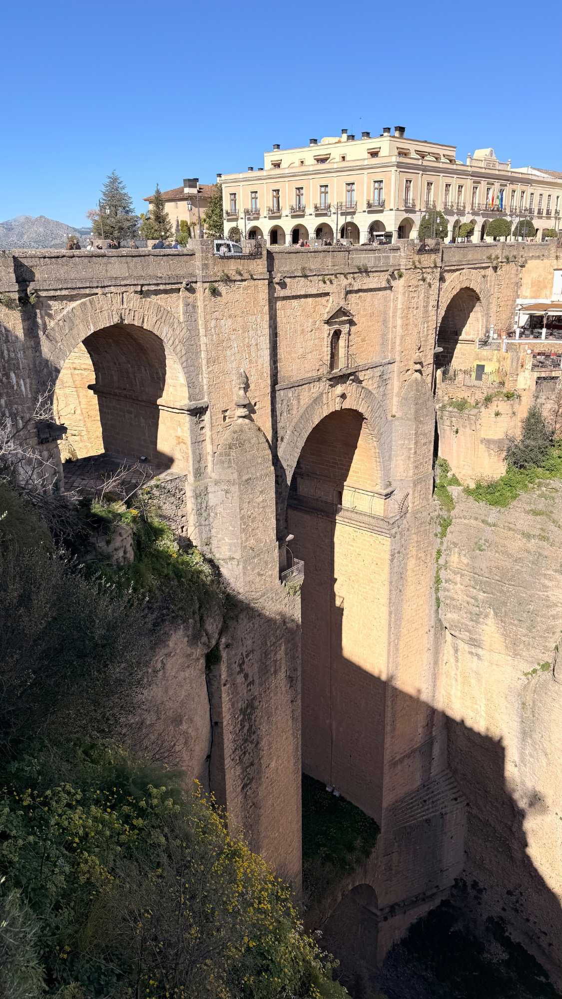 À notre arrivée,nous avons une petite distance à marcher pour nous rendre là où le spectacle était saisissant. La ville, perchée au sommet de son impressionnant canyon, semblait suspendue entre ciel et terre. Nous avons commencé notre découverte par le célèbre Puente Nuevo, majestueux, dominant les profondeurs vertigineuses. Le silence du matin rendait l’instant encore plus magique.
