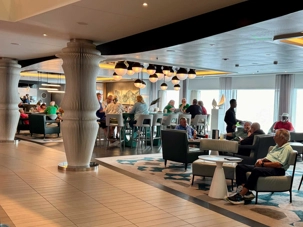 En matinée, plusieurs voyageurs se retrouvent à l’Oceanview Café, situé au pont 14, pour savourer un copieux déjeuner. L’offre est aussi variée que généreuse : fruits frais, viennoiseries croustillantes, plats chauds et bien plus encore, de quoi combler toutes les envies. Plus tard, certains passent nous voir à notre bureau à bord pour discuter, poser leurs questions ou simplement partager leurs impressions. Ces échanges chaleureux sont toujours des moments précieux qui contribuent à tisser de beaux liens au sein du groupe.