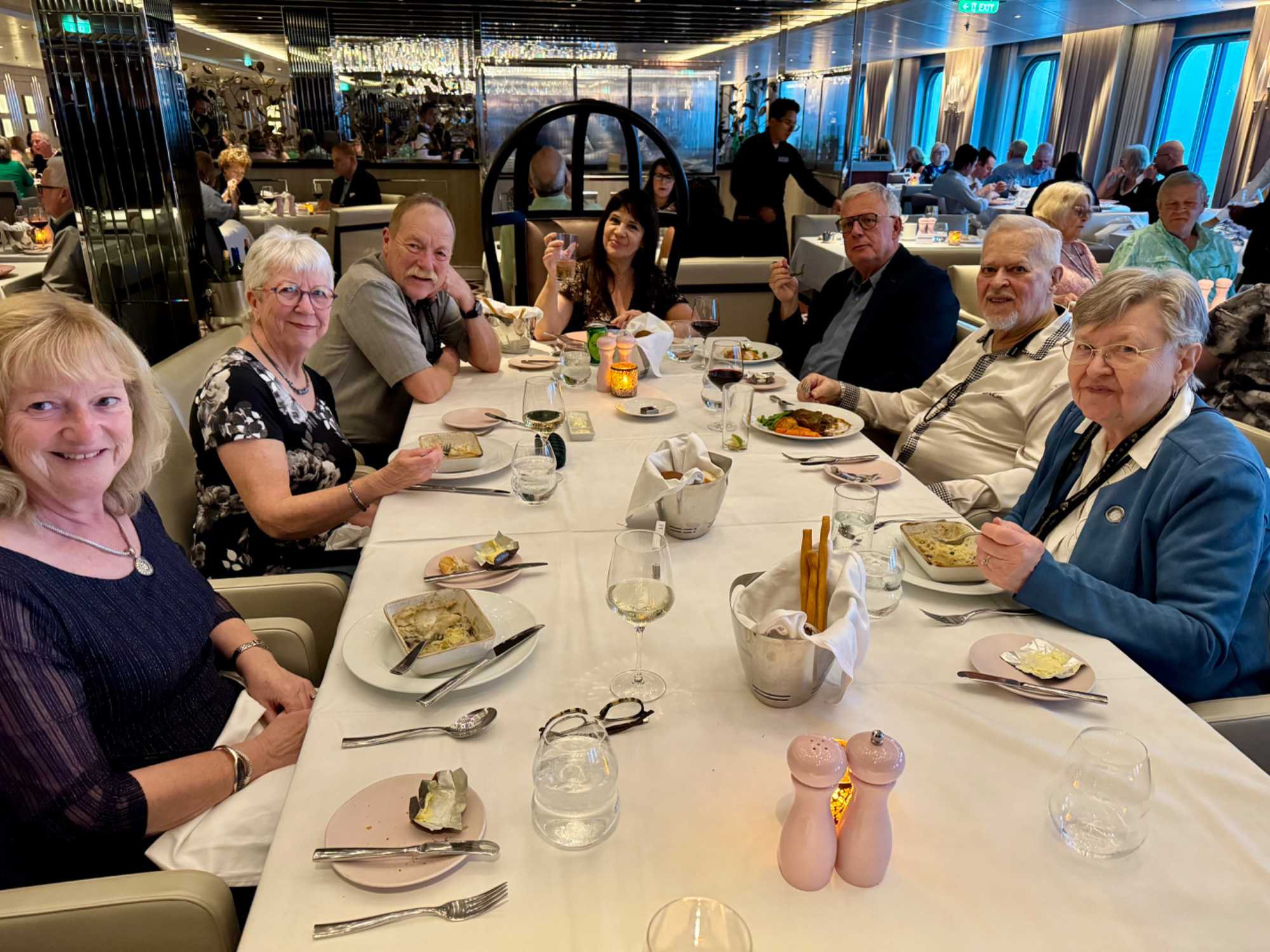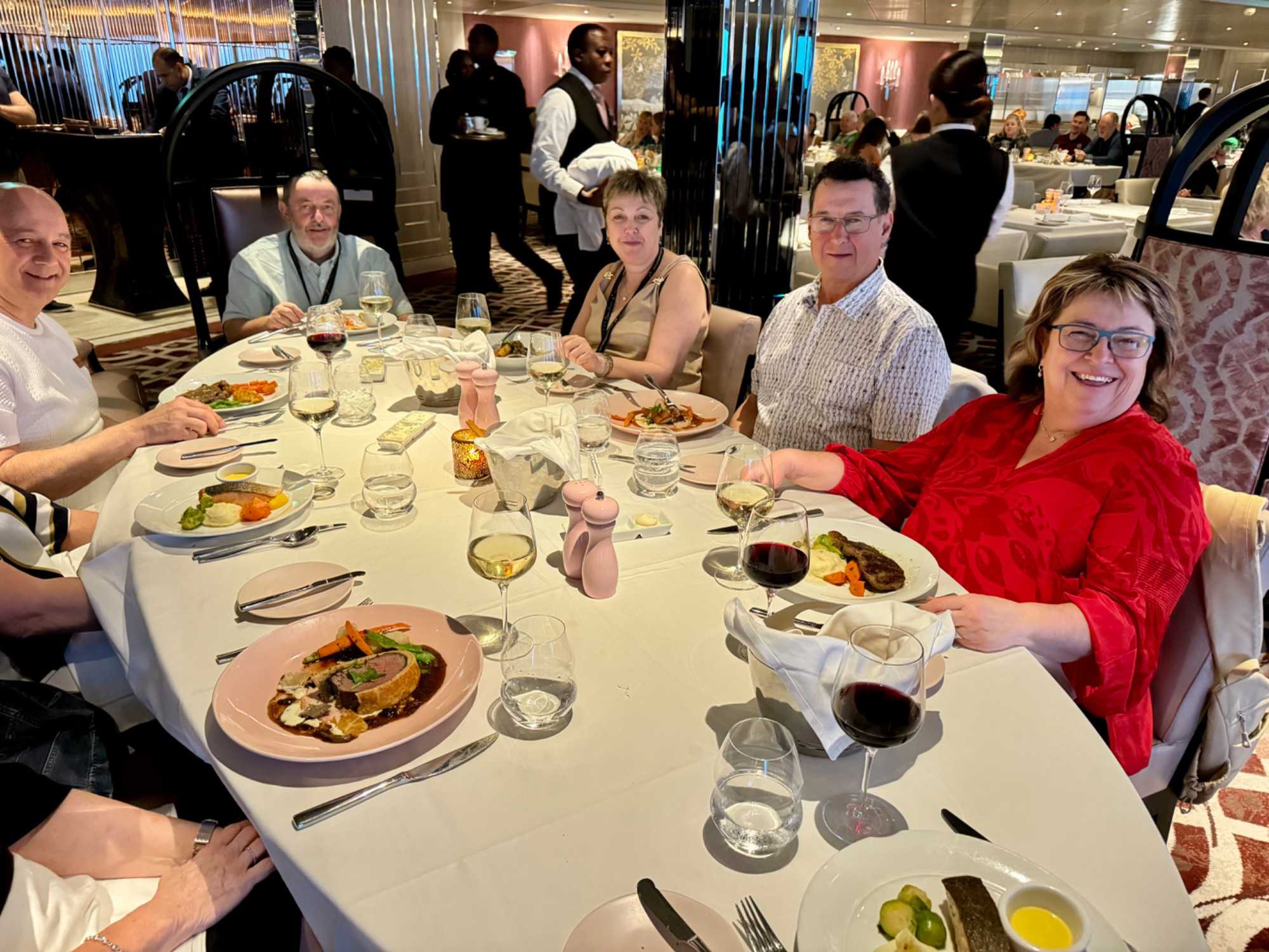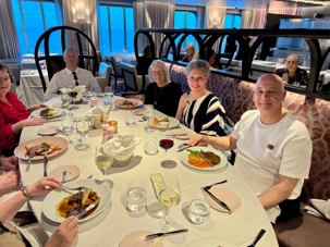 À l’heure du dîner, nous invitons ceux qui le souhaitent à se joindre à un repas convivial dans la salle à manger principale, le Cosmopolitan. Un délicieux menu à la carte y est proposé, et les conversations animées témoignent du plaisir partagé. Déjà, après quelques jours seulement, de nouvelles amitiés prennent forme.