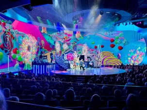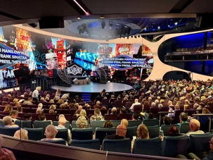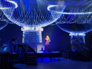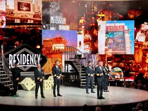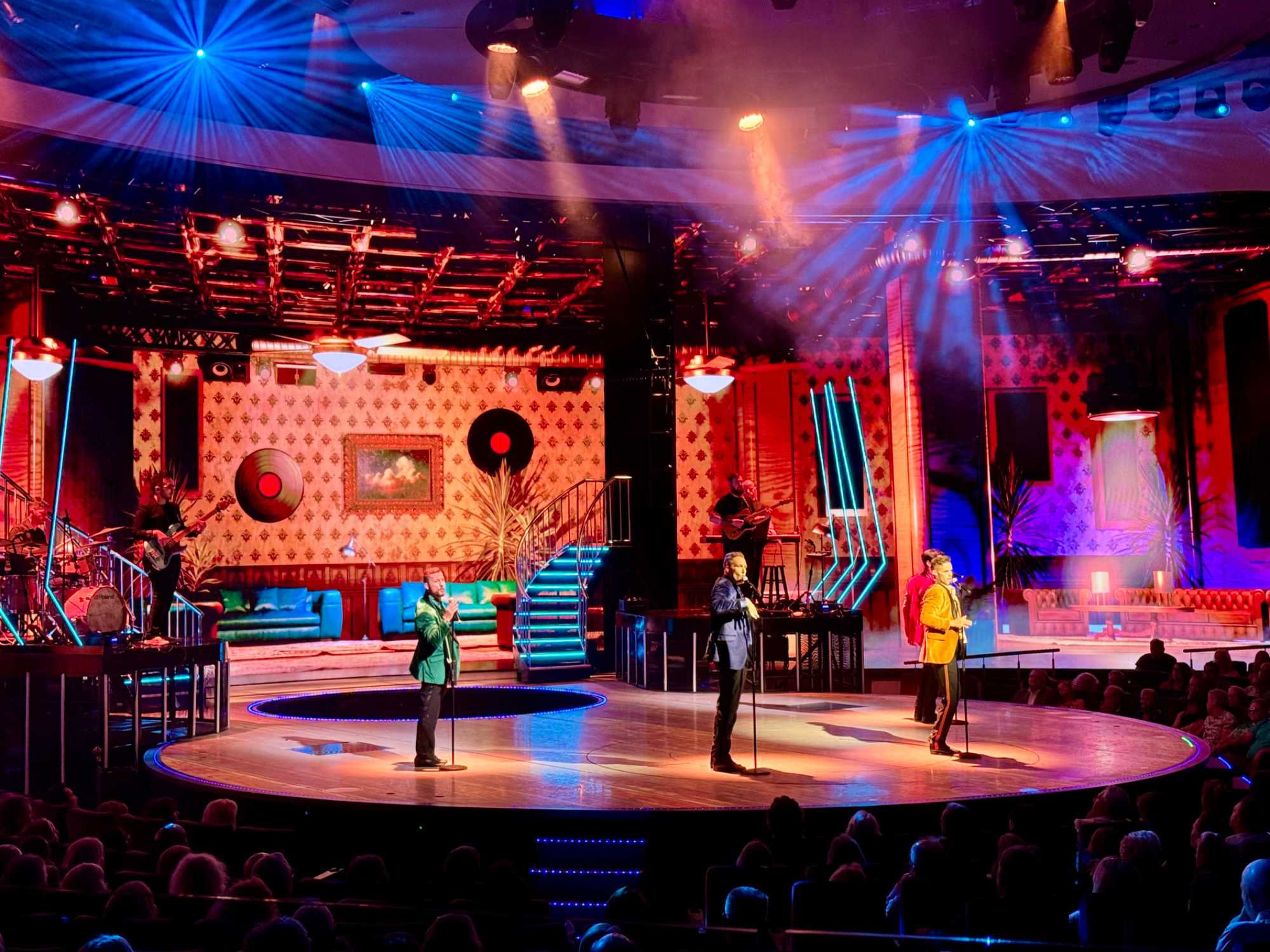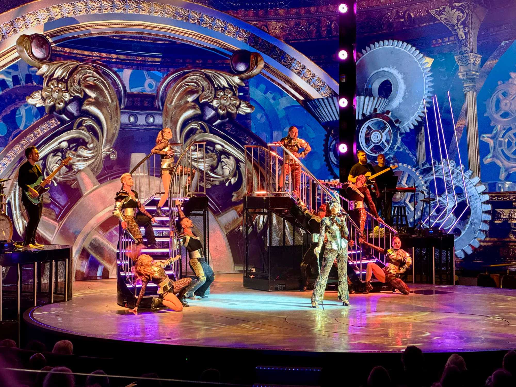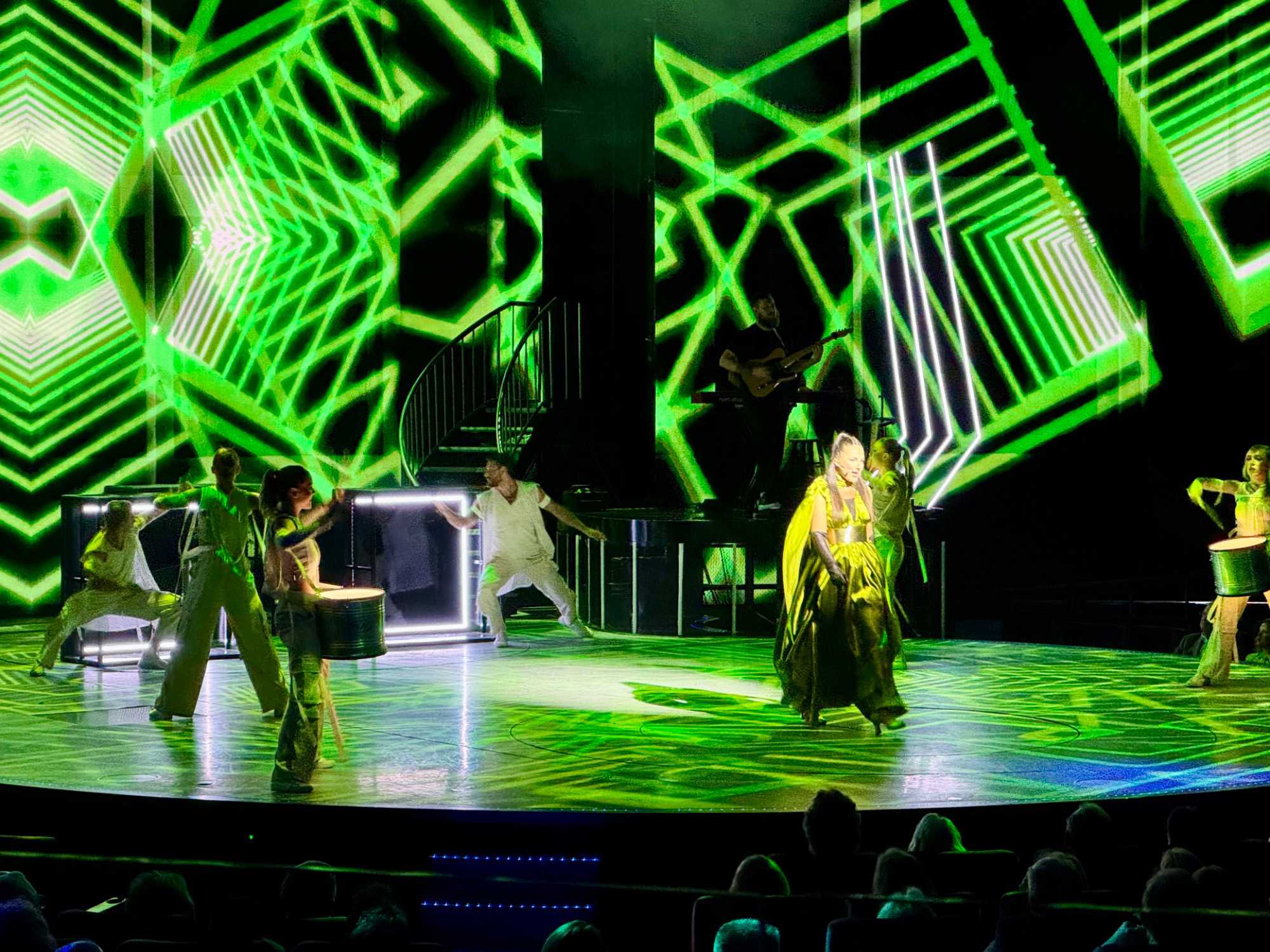 En soirée, le Capitaine nous adresse quelques mots au grand théâtre avant de laisser place au spectacle « Residency » mettant en vedette une équipe de chanteurs, danseurs et d’excellents musiciens. Cette production musicale énergique est inspirée des célèbres résidences de Las Vegas. Le spectacle rend hommage à des artistes emblématiques tels qu’Elvis Presley, Lady Gaga, Cher, U2, Bruno Mars et Céline Dion à travers des performances dynamiques et des projections visuelles captivantes tournées directement sur la célèbre Strip, incluant les iconiques enseignes restaurées du Neon Museum. Céline a présenté plus de 1000 spectacles à Las Vegas.