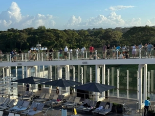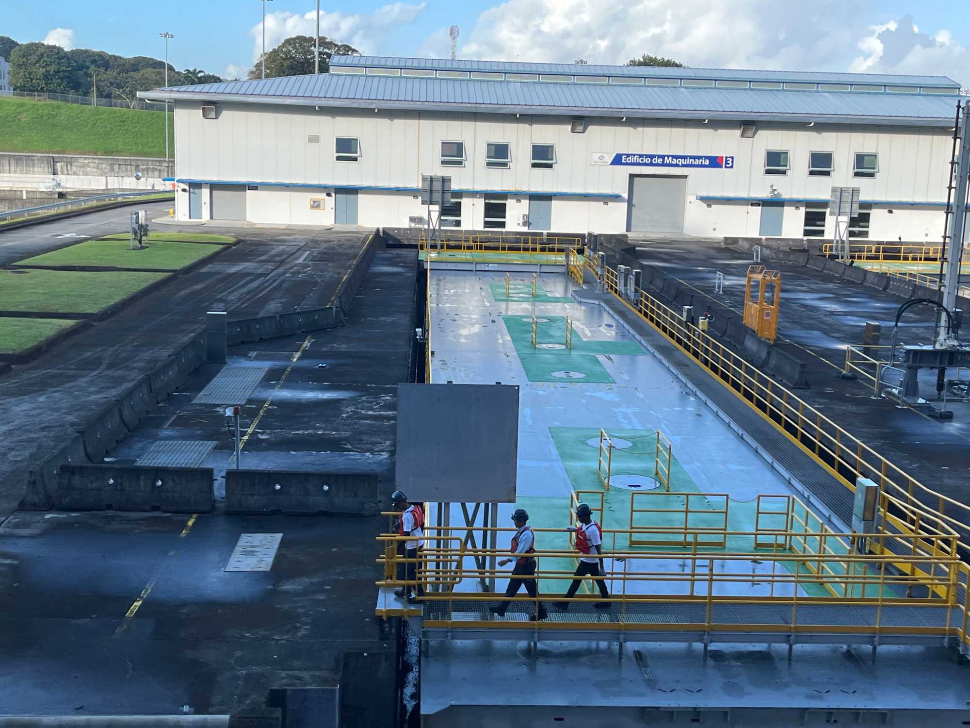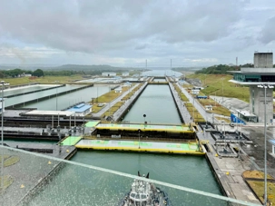 Dès les premières heures du matin, l’effervescence est palpable à bord. Vers 6 h du matin, quelques voyageurs se rassemblent sur les ponts extérieurs afin d’assister à l’entrée du navire dans les impressionnantes écluses d’Agua Clara, les plus récentes du canal. Longues de 427 mètres, ces écluses modernes ont été conçues pour accueillir les grands navires de nouvelle génération. Leurs portes monumentales, hautes d’environ 57 mètres et pesant plus de 2 000 tonnes chacune, ainsi que leurs bassins ingénieux permettant de récupérer près de 60 % de l’eau utilisée, témoignent d’une ingénierie à la fois spectaculaire et respectueuse des ressources naturelles.
