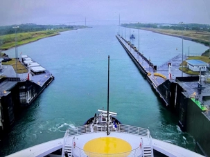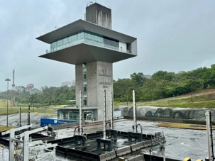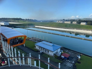 Une fois sur le lac Gatún, nous apercevons le barrage du même nom, symbole emblématique de l’ingénierie du XXᵉ siècle. Après quelques heures de navigation et d’attente, nous reprenons les écluses d’Agua Clara pour redescendre progressivement vers l’Atlantique. La lenteur volontaire du passage permet à chacun de savourer pleinement chaque détail de ce chef-d’œuvre d’ingéniosité humaine.