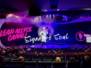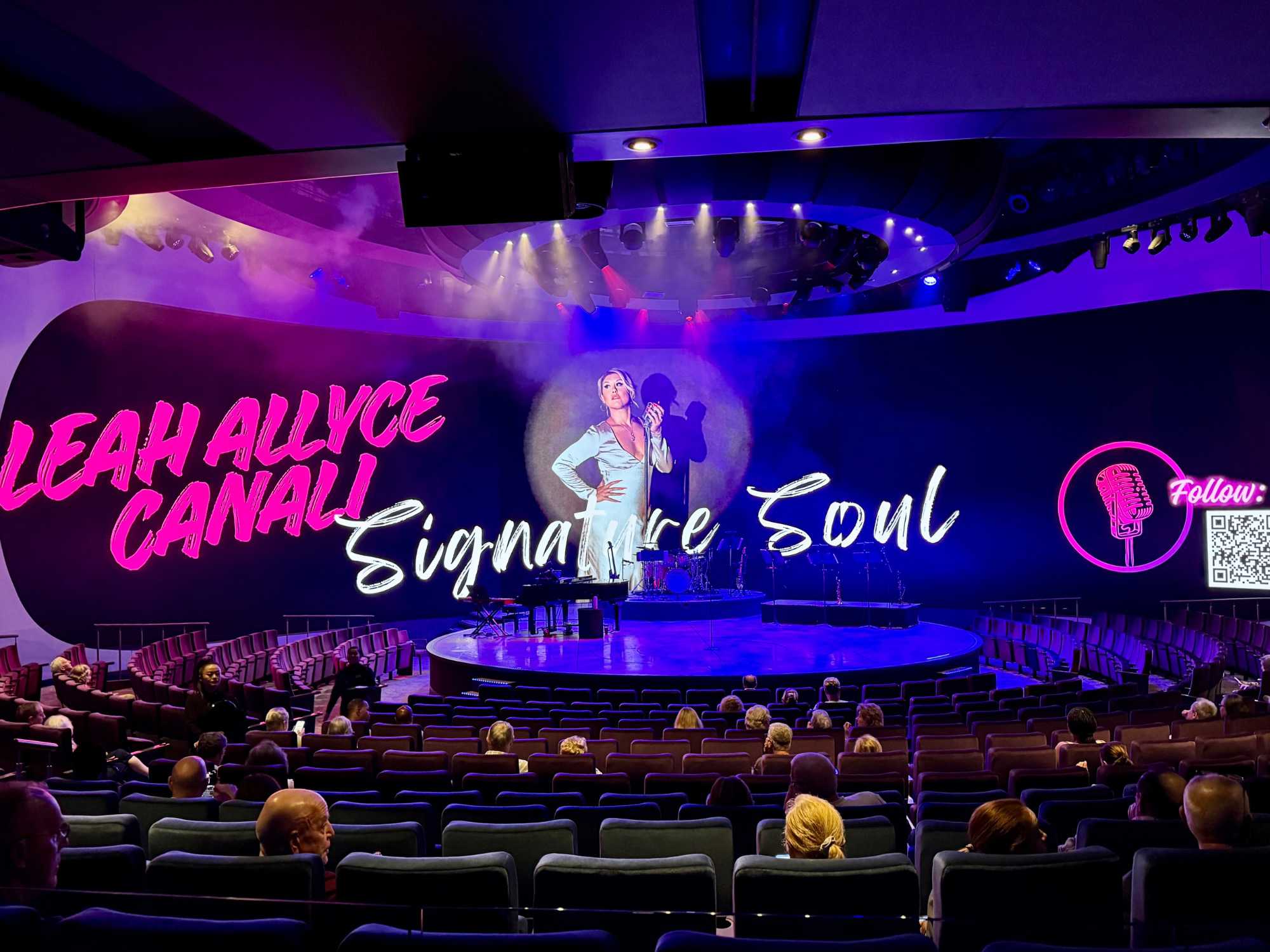 En soirée, certains se dirigent vers le théâtre du navire pour assister au spectacle Signature Soul, présenté par la talentueuse Leah Canali. Ce spectacle vibrant propose une plongée émotive dans la musique soul et pop qui a marqué les générations. À travers des interprétations puissantes et des arrangements originaux, elle revisite avec intensité des classiques allant de Whitney Houston à Adele, en passant par Aerosmith et Tina Turner. Avec une présence scénique remarquable et une voix empreinte d’émotion, elle partage également son parcours à travers le monde en tant qu’artiste, offrant un moment à la fois intime et électrisant.