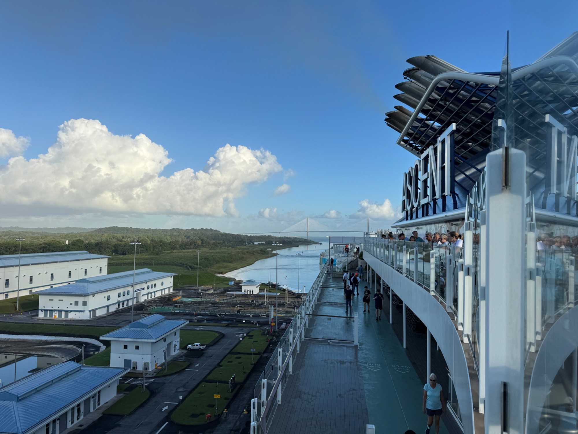 Un pilote de l’Autorité du canal de Panama monte à bord afin de guider notre navire à travers les célèbres écluses, composées de trois chambres successives. Lentement et majestueusement, le Celebrity Ascent est élevé d’environ 26 mètres jusqu’au Lac Gatún, l’un des plus vastes lacs artificiels au monde et véritable cœur du système du canal.