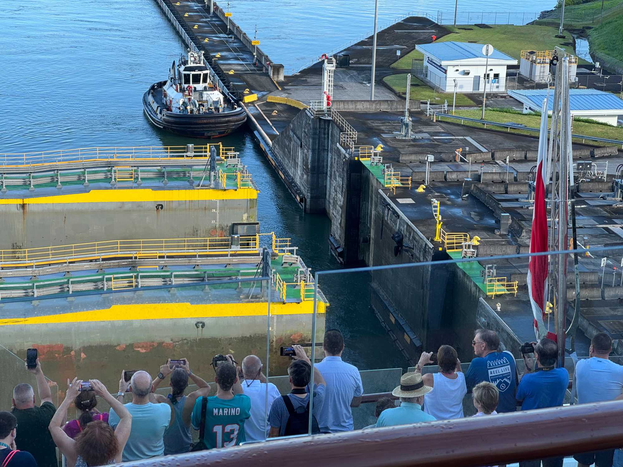 Émerveillés, nous suivons chaque étape du processus. Les remorqueurs positionnés à l’avant et à l’arrière du navire, l’ouverture et la fermeture parfaitement synchronisées des portes, ainsi que les commentaires éclairants de la narratrice à bord rendent cette expérience aussi éducative que captivante.