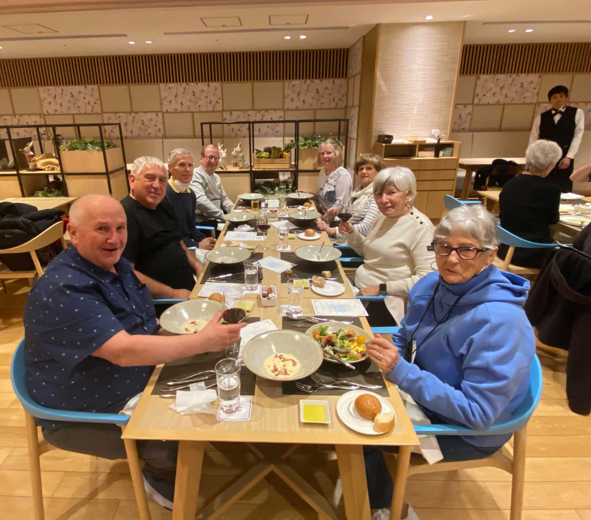 Nous récupérons ensuite nos valises au carrousel et nous dirigeons vers la sortie. Il est toujours rassurant de savoir que notre guide nous attend à l’aéroport international de Narita pour nous conduire à notre hôtel, le Eastside Hotel Kaile. Quelle joie de retrouver Jean, qui nous accompagnera tout au long du séjour, et qui nous accueille chaleureusement dans son pays d’adoption.
