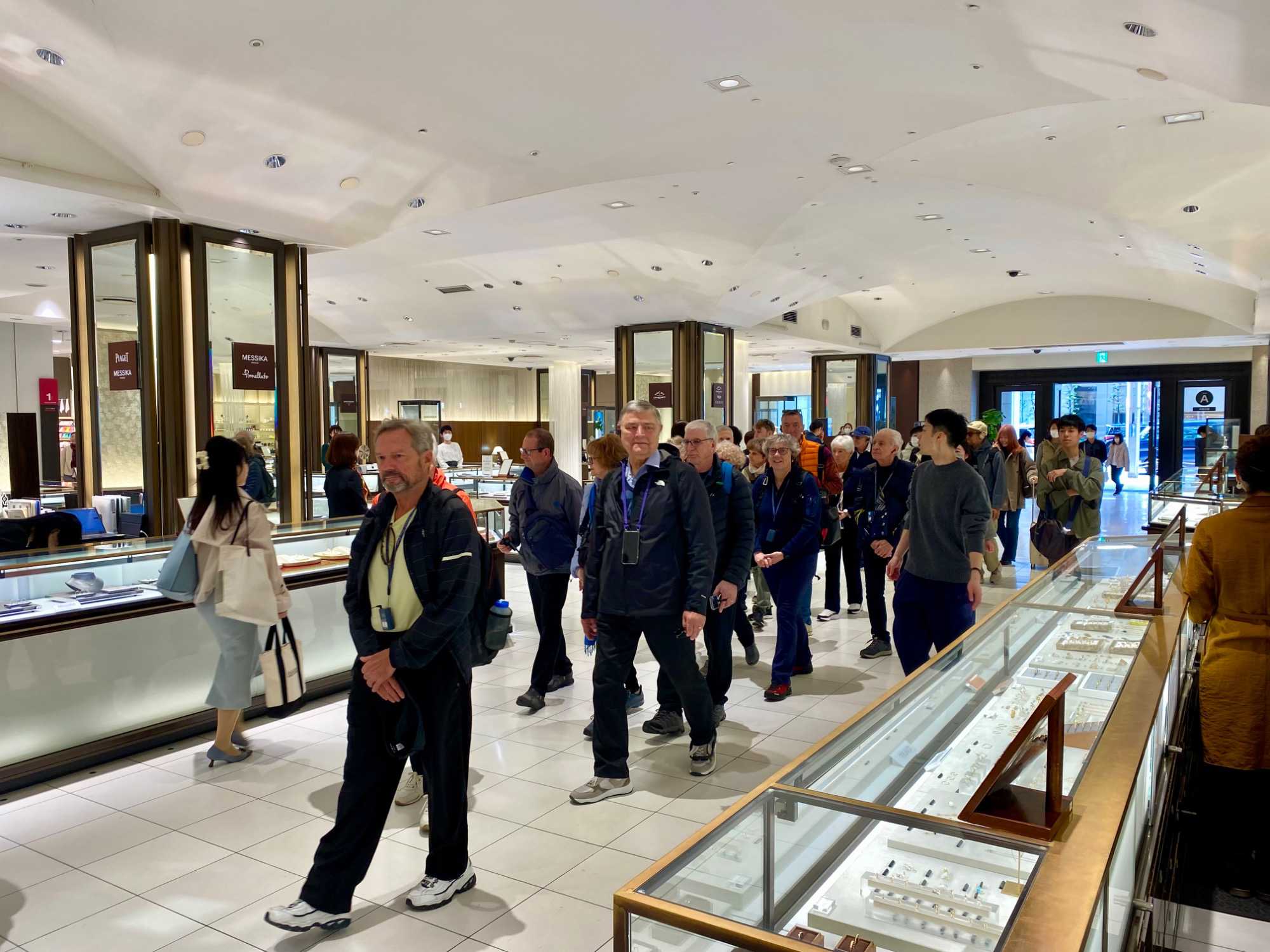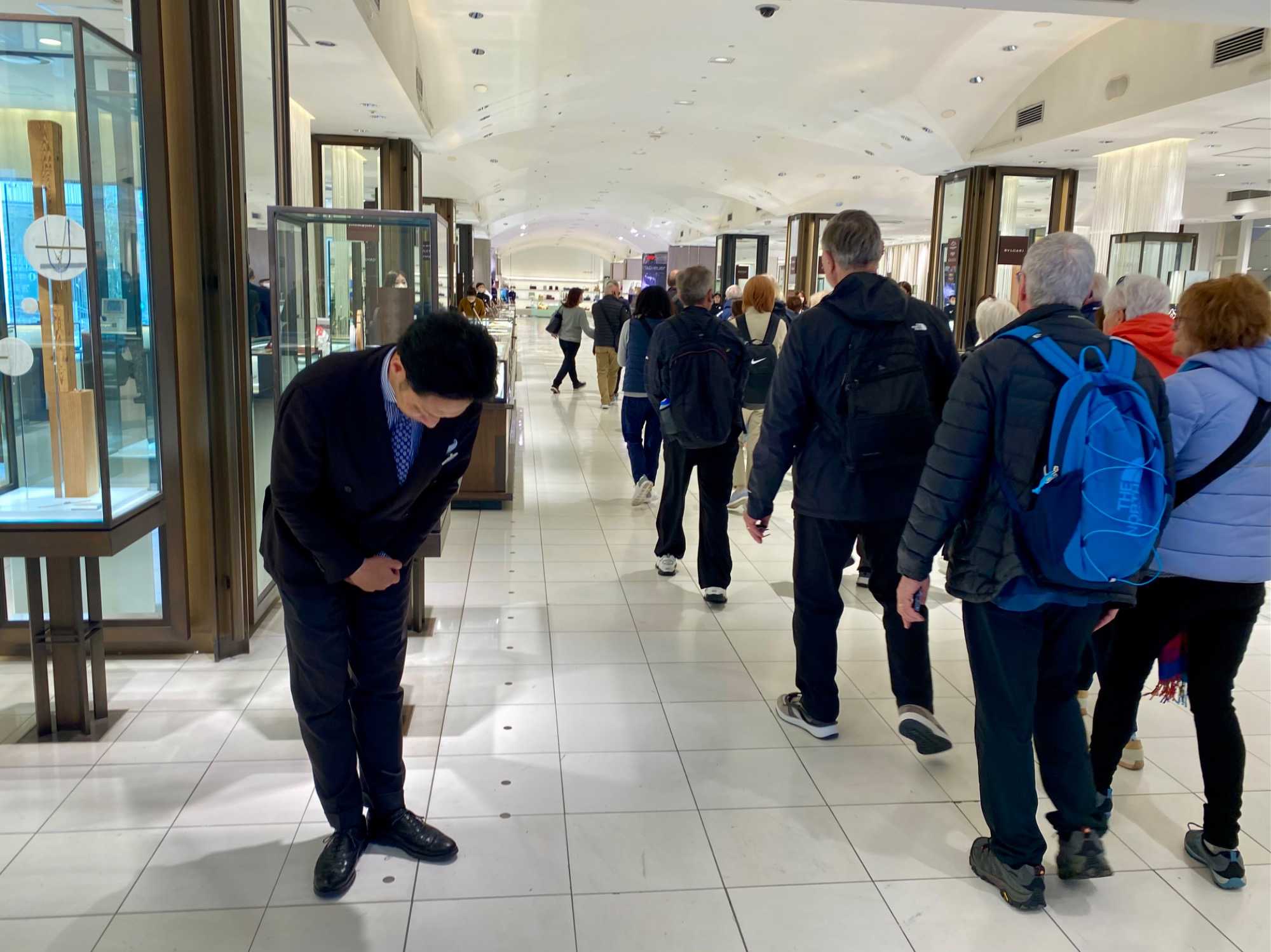 Nous débutons notre excursion par assister à l’inauguration solennelle de Mitsukoshi-Isetan qui est un véritable spectacle, où l’ouverture des portes devient un moment d’incursion dans la tradition japonaise. C’est un grand magasin emblématique situé à Shinjuku.