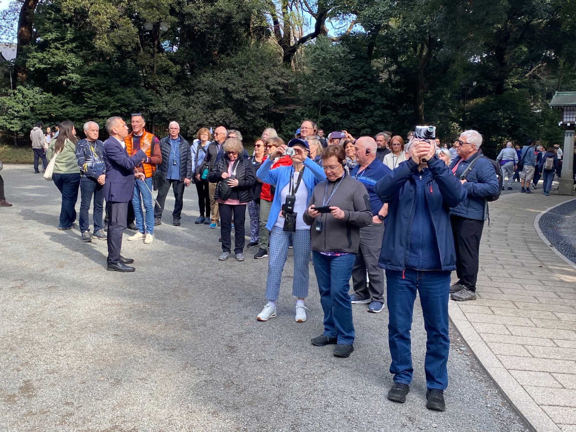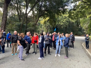 En référence à la transmission de la croyance; le groupe respecte le rituel de purification en se lavant les mains aux fontaines, avant de formuler une prière, un voeux, une intention. Selon la tradition japonaise, il faut jetter une pièce de monnaie dans un grand caisson prévu à cet effet, saluer en s’inclinant à deux reprises, frapper deux fois dans leurs mains, puis se recueillir en silence. Un véritable instant de sérénité.