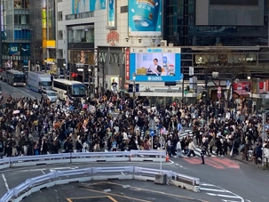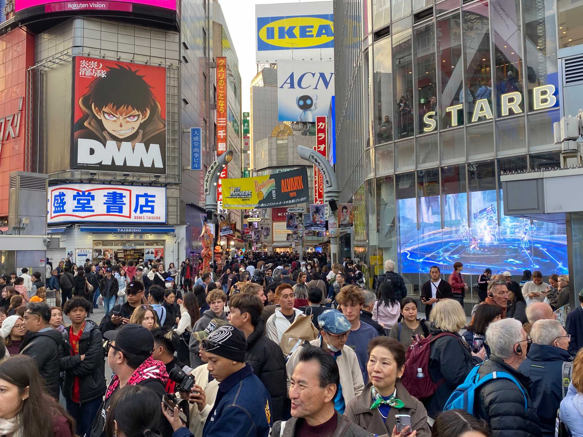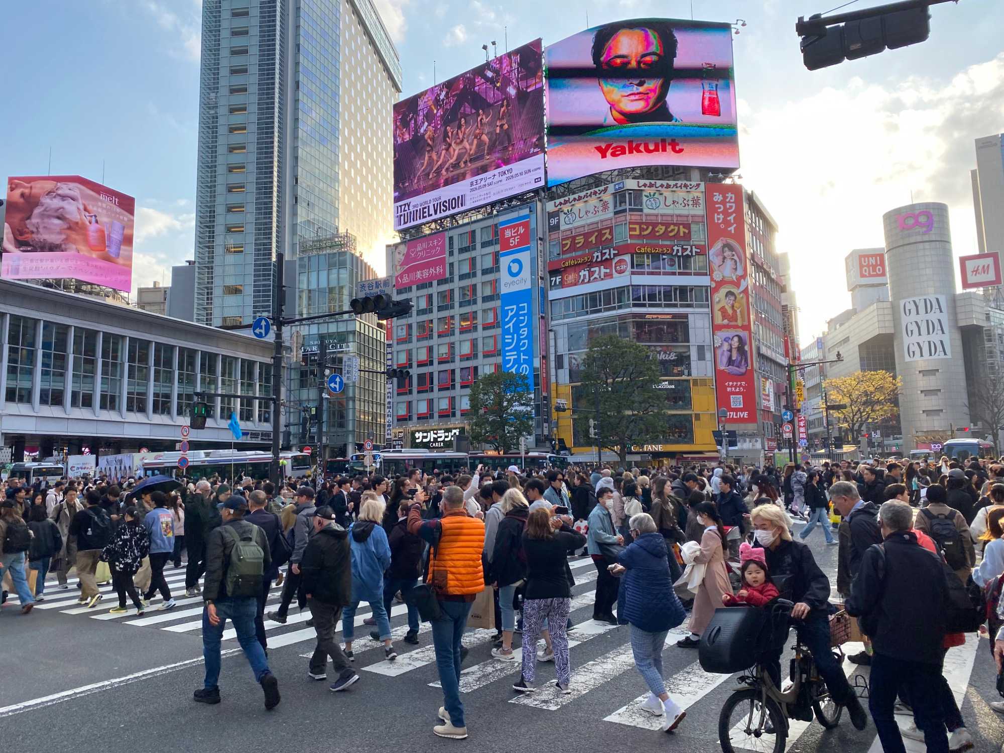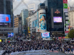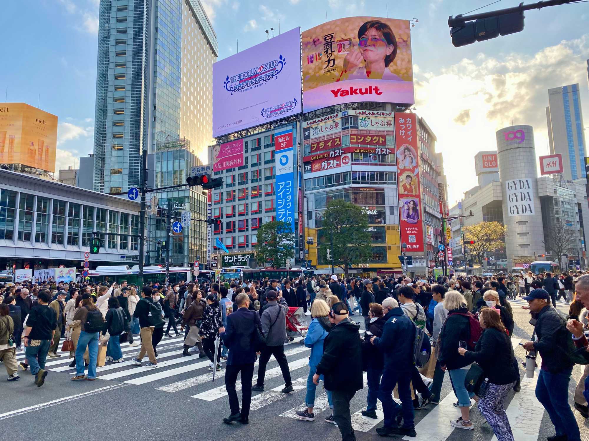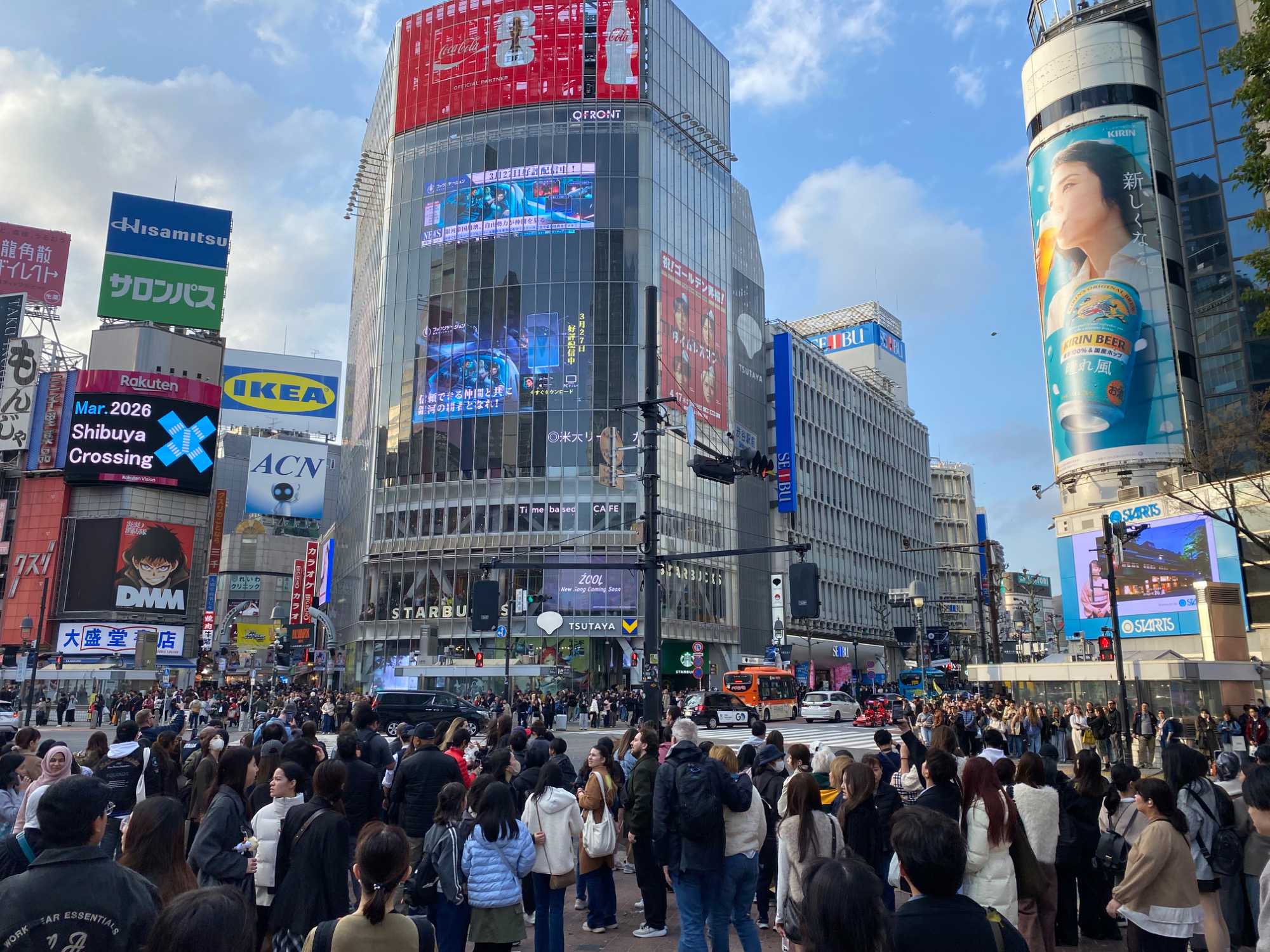 Sous l’emprise visuelle, les écrans géants diffusent en continu des publicités colorées, tandis que la foule traverse le célèbre carrefour de Shibuya. Ce n’est pas qu’un simple passage piéton, c’est une chorégraphie synchronisée, dans un ballet parfaitement orchestré où parfois, plus de 2500 piétons se croisent en traversant dans tous les sens, sans jamais se heurter.