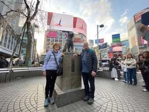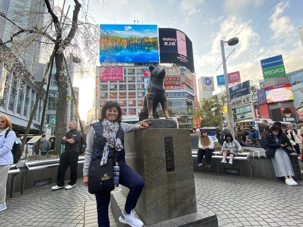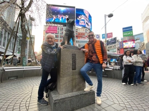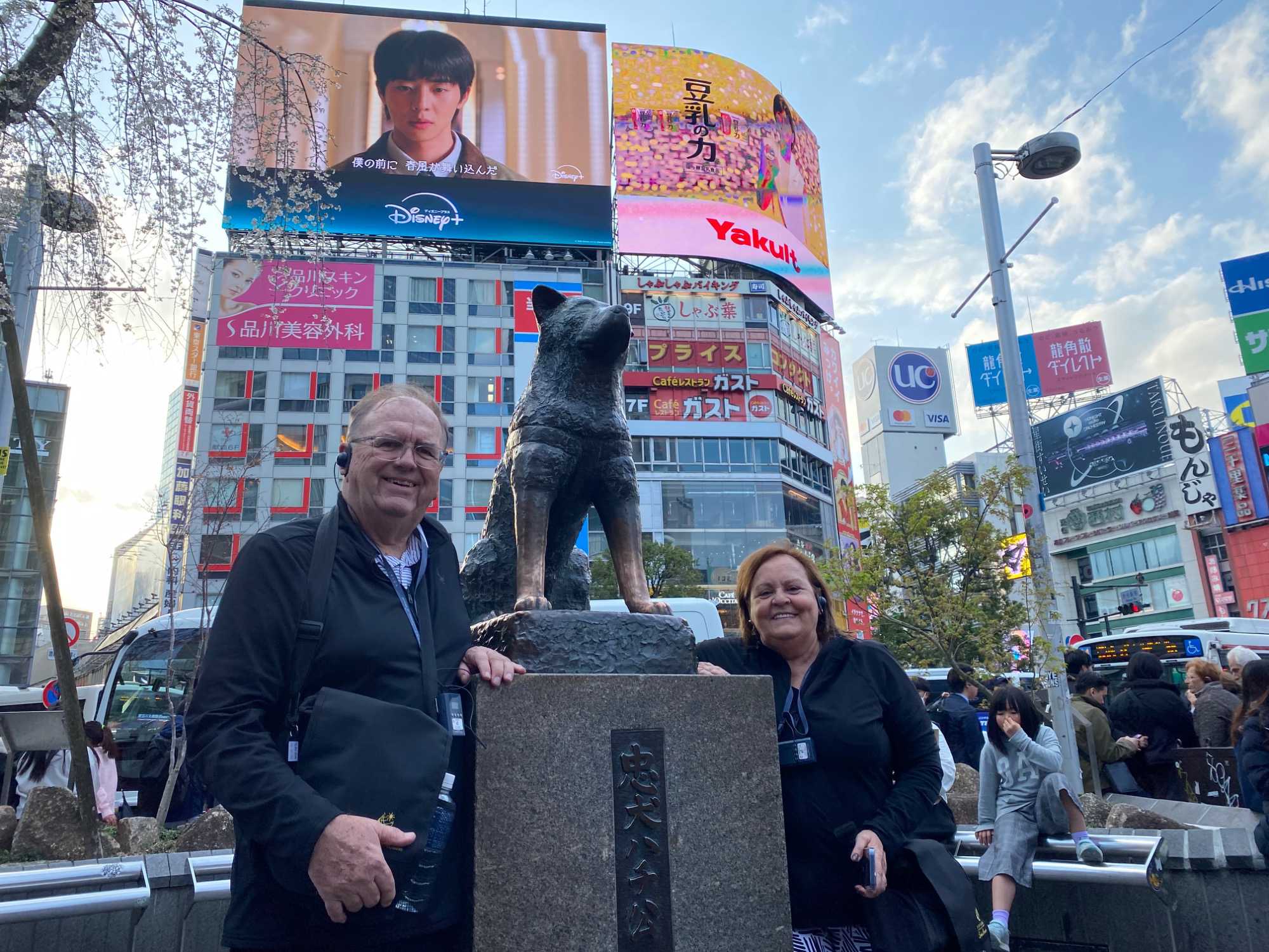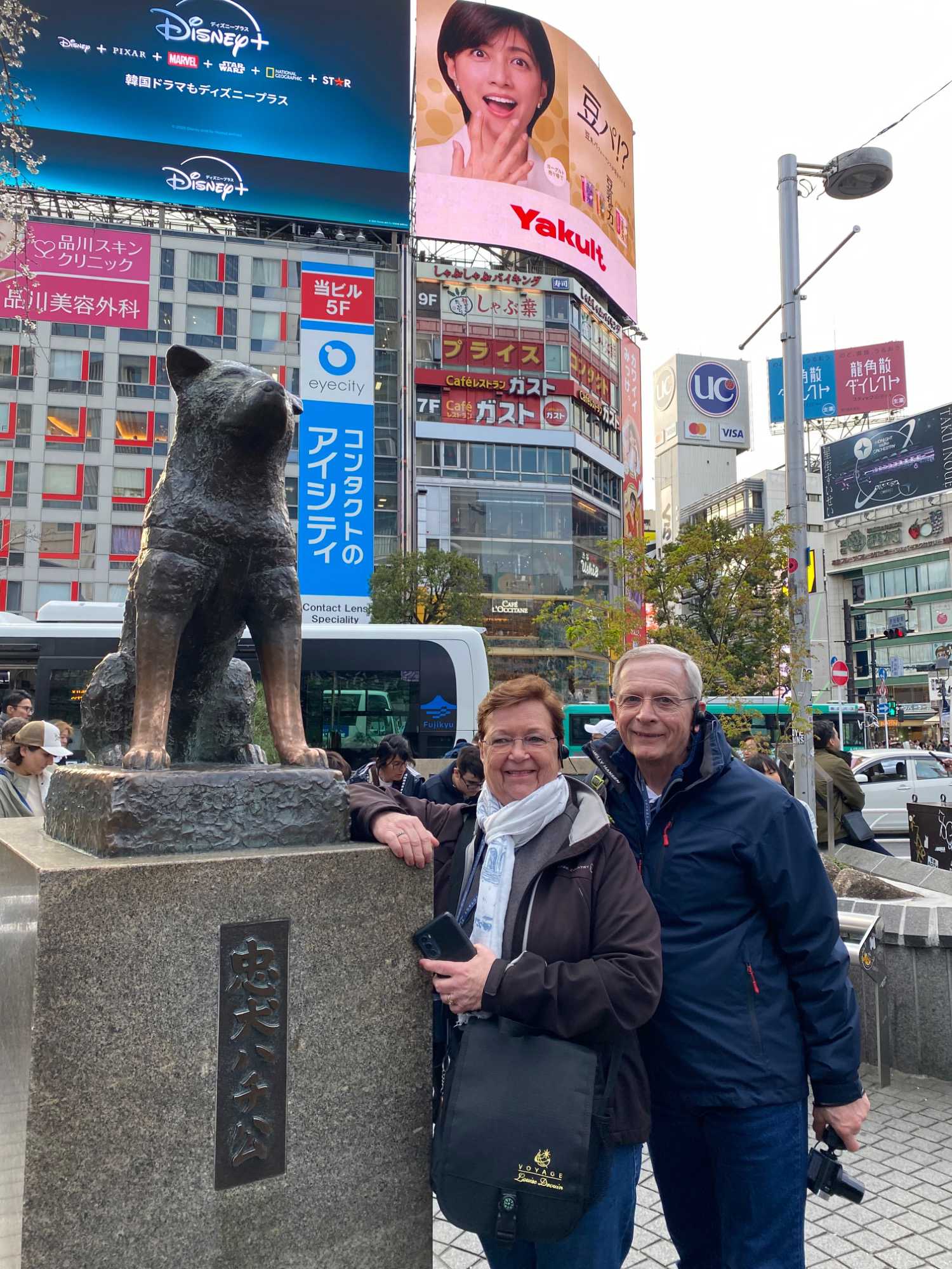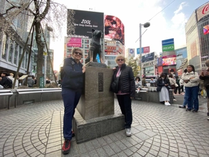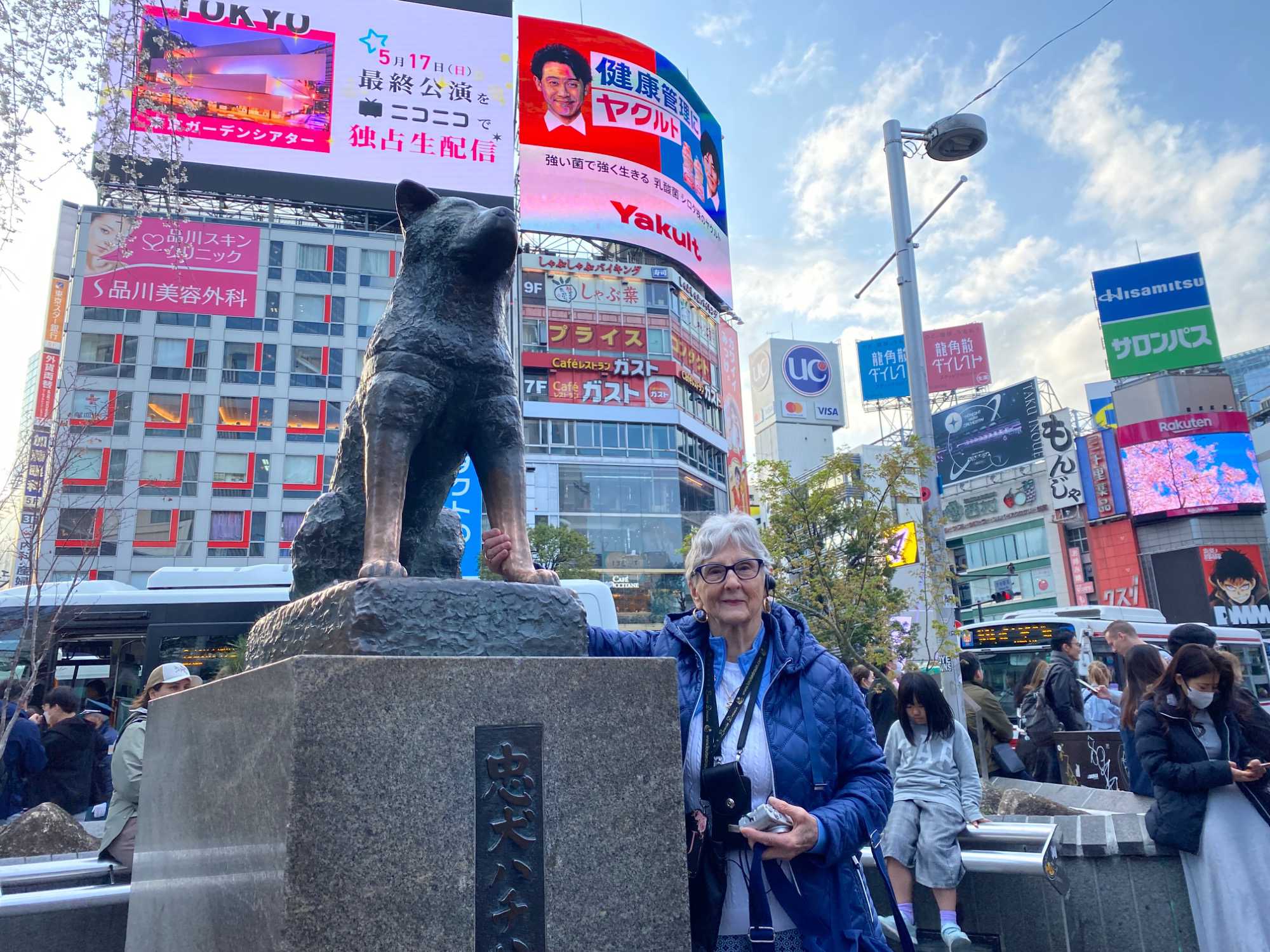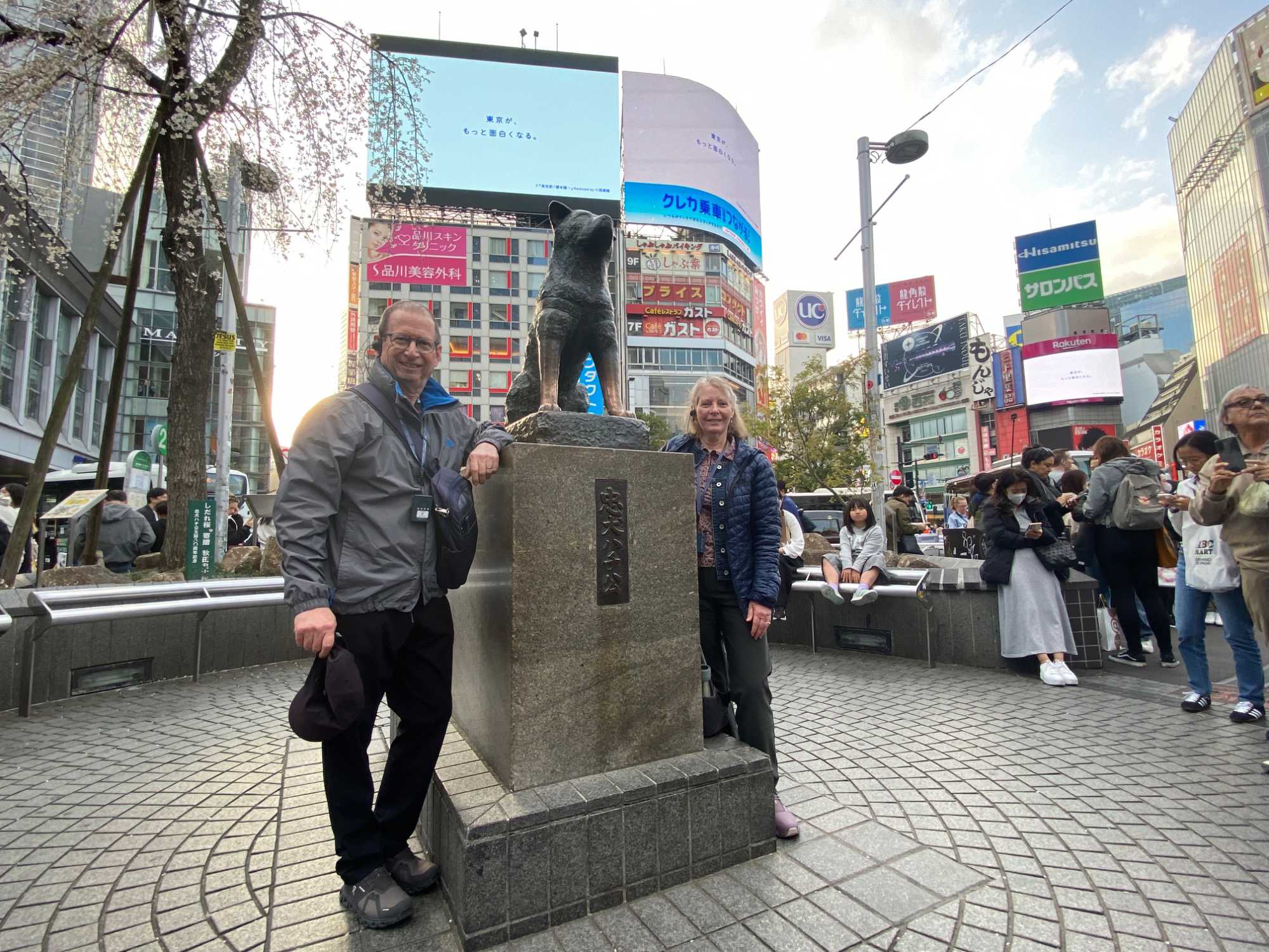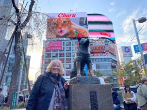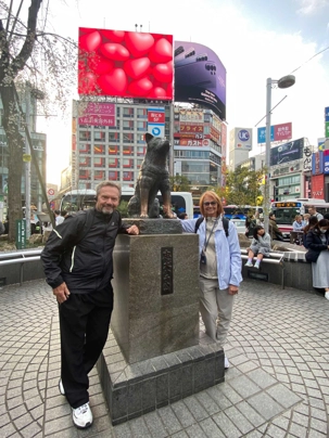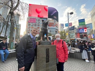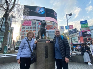 Entre deux passages, nous prenons une petite pause à la statue de Hachiko.