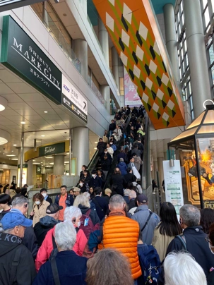 Toujours dans l’exploration de cette expérience urbaine, rien de mieux pour comprendre le quotidien de ces citadins que de revenir à notre hôtel en empruntant les transports en commun. Nous pénétrons dans la gare la plus fréquentée au monde avec plus de 3,5 millions de passagers quotidiens. Remarquable; que les gens sont respectueux et disciplinés! Nous parcourons 7 stations de métro, puis nous reprenons un autre transport, un train pour 3 stations pour arriver directement en face de notre hôtel.
