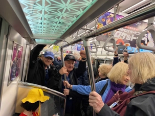 On s’élance dans l’aventure; tout en suivant les consignes de notre guide, tout le groupe traverse à 2 reprises les passages piétons afin de ressentir l’expérience citadine. C’est très spécial: c’est tout un bain de foule!