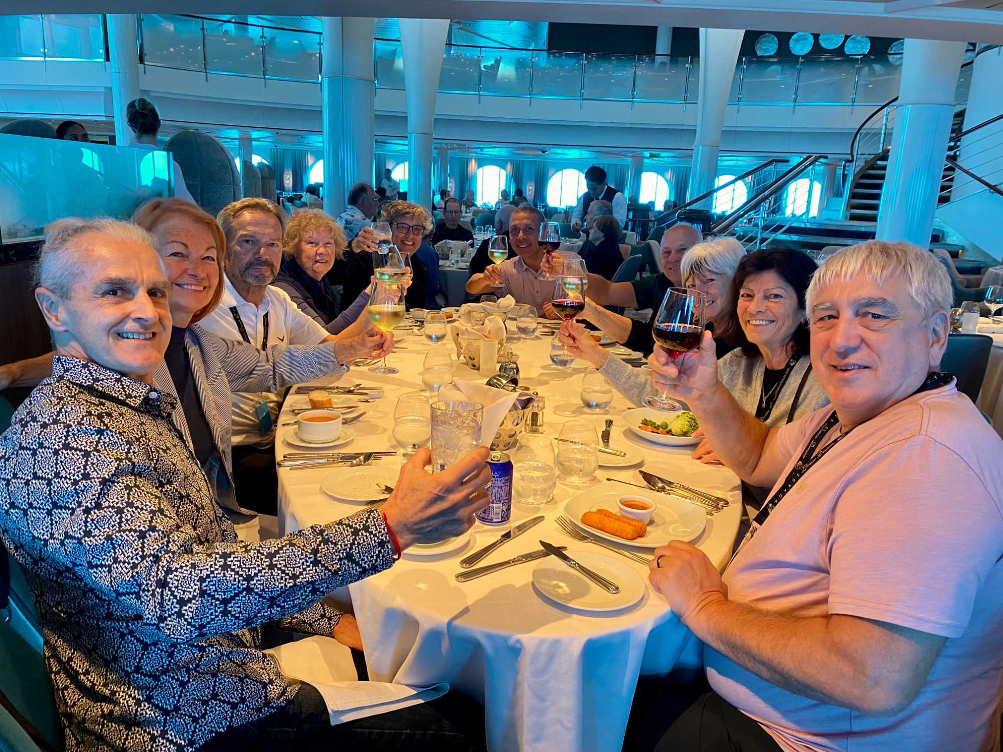 À l’heure du dîner, comme à chaque journée en mer, le groupe se retrouve au restaurant Metropolitain pour partager un repas communautaire. Presque tous les voyageurs répondent à l’appel: l’atmosphère est conviviale, les rires fusent et les conversations vont bon train. Les liens se tissent, tout naturellement. L’après-midi se déroule entre soleil et nuages, idéal pour savourer pleinement les joies du navire: détente, gym, lecture ou sieste bien méritée.
