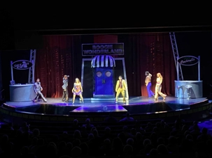 Dans une belle production: Boogie Wonderlland; chanteurs, danseurs et acrobates offrent une performance; un pur plaisir pour les yeux!