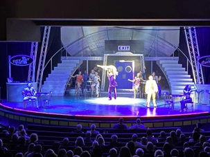 Après le souper, direction le théâtre pour le spectacle: qui débute par la présentation du Capitaine et tous ses officiers, sans oublier l’une des personnes clé du succès de la croisière et qui veille à notre ^éché de gourmandise; le grand chef cuisinier!