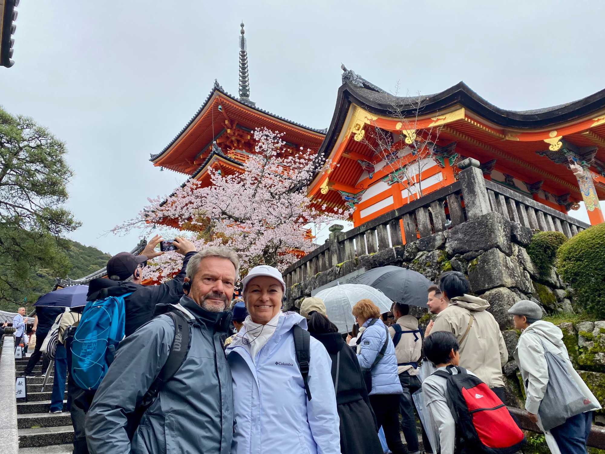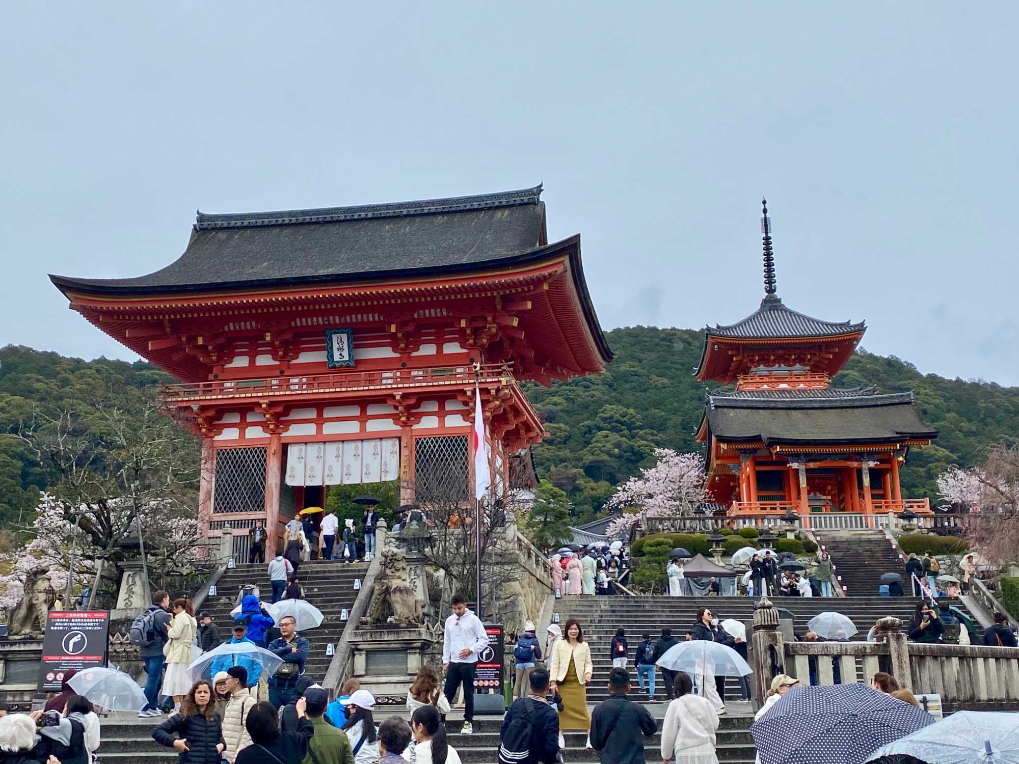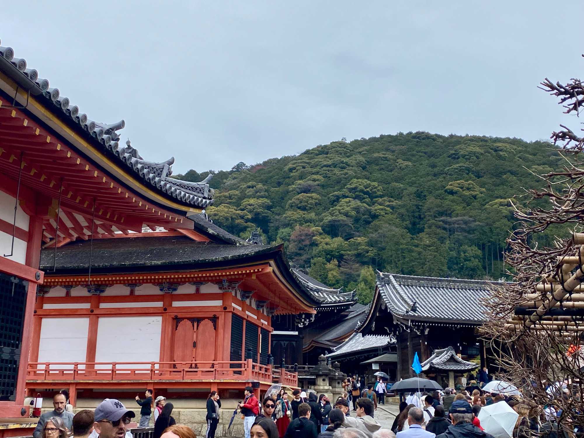 La chance nous sourit; à la fin de cette visite, la pluie cesse et fait place à une intermittence de précipitation pour le bonheur de tous. Nous remontons à bord de notre autocar en direction de l’endroit le plus célèbre de la ville: le temple Kiyomizu-Dera.