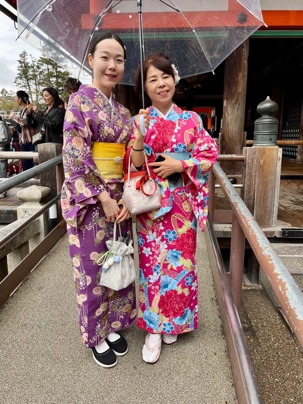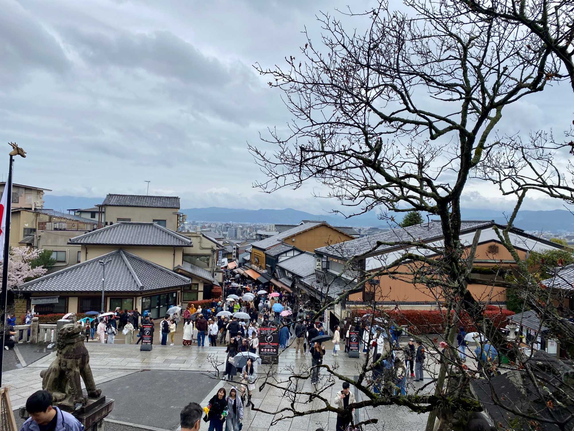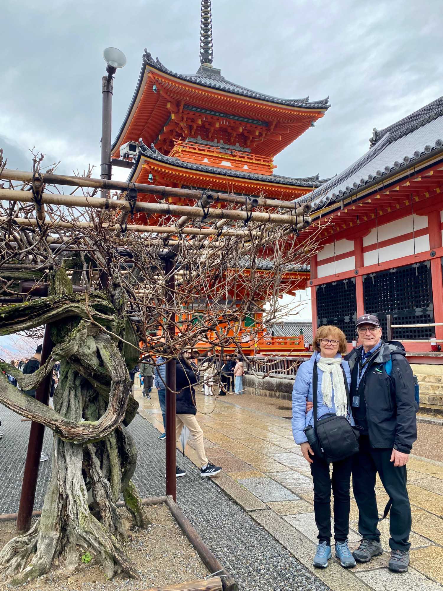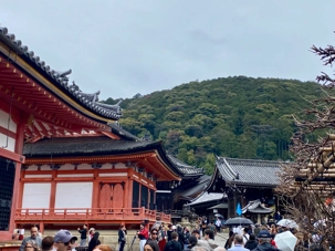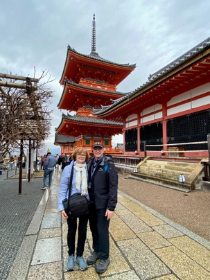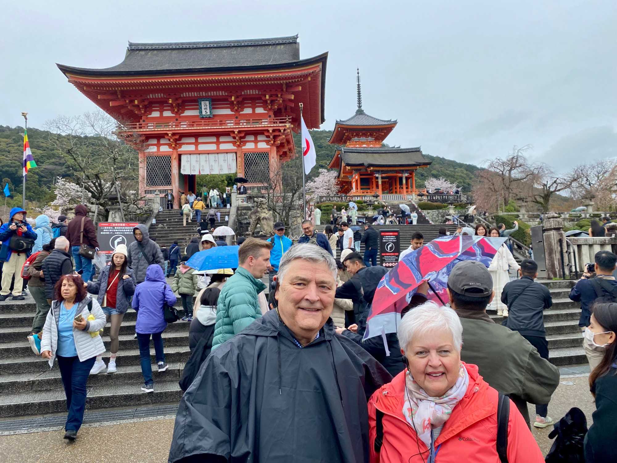 La chance nous sourit; à la fin de cette visite, la pluie cesse et fait place à une intermittence de précipitation pour le bonheur de tous. Nous remontons à bord de notre autocar en direction de l’endroit le plus célèbre de la ville: le temple Kiyomizu-Dera.
