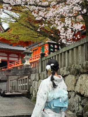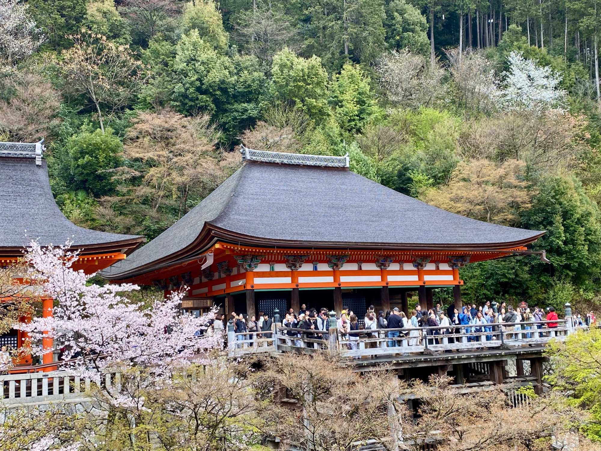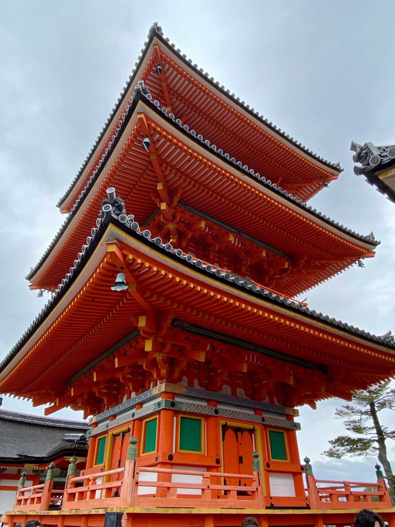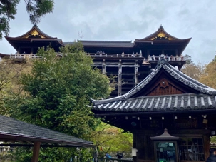 Perché à flanc de montagne, ce temple est surtout célèbre pour sa vaste terrasse en bois, soutenue par d’imposants piliers assemblés sans l’utilisation de clous. Cette plateforme offre une vue panoramique imprenable sur Kyoto, particulièrement saisissante lors des saisons des cerisiers en fleurs. Le site invite à une promenade immersive à travers plusieurs pavillons, sanctuaires et chemins bordés de nature. Au pied du temple se trouve la célèbre cascade Otowa, divisée en trois filets d’eau que les visiteurs peuvent boire à l’aide de longues louches. Selon la tradition, chacun de ces flux apporterait un bienfait différent : la longévité, la réussite scolaire ou la chance en amour.