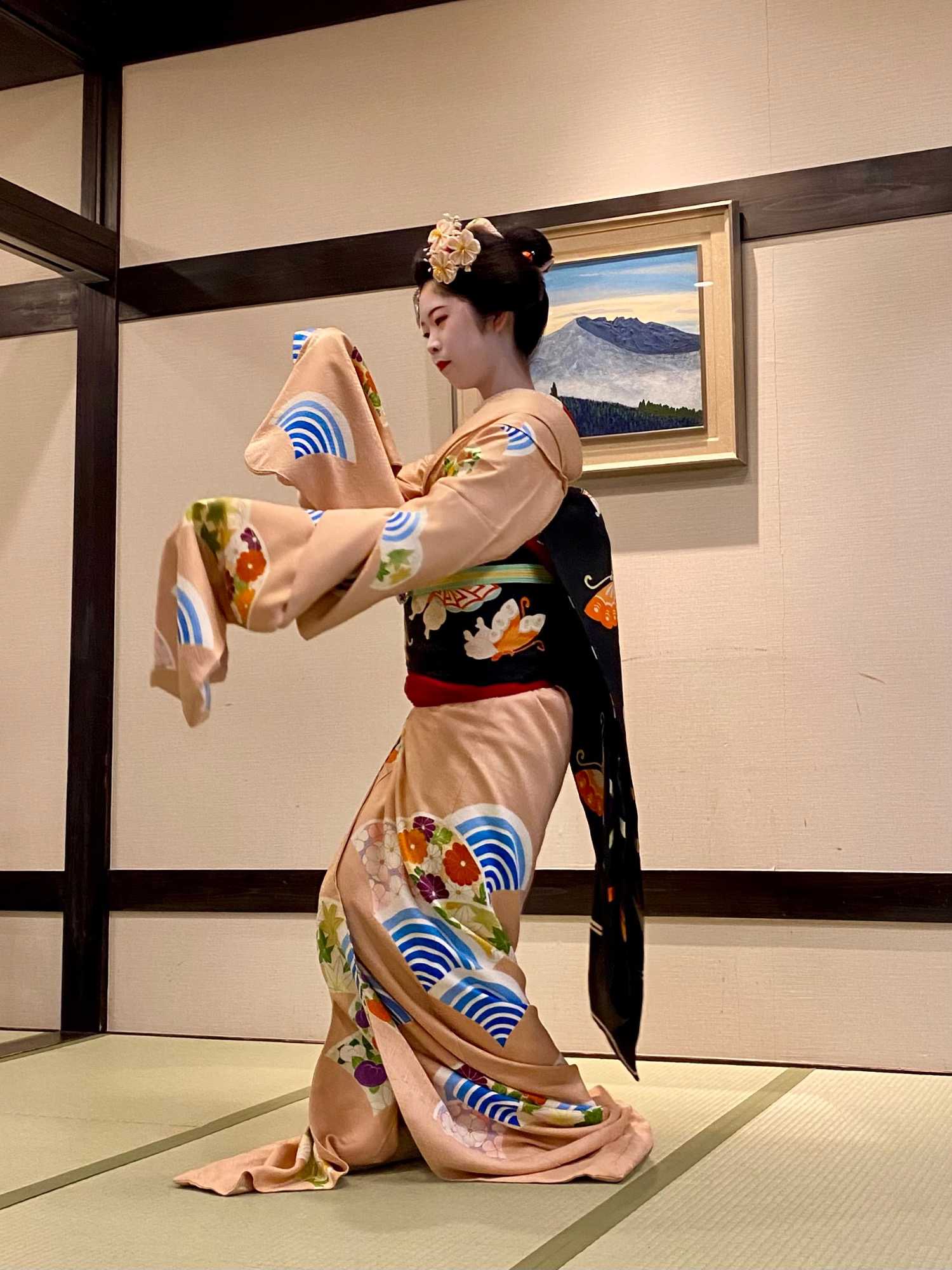 Pour dîner, nous allons au restaurant Ganko Takasegawa Nijo-en; une expérience inoubliable dans l’une des célèbres traditions japonaises: le monde secret des Geisha; où nous aurons le privilège de partager un repas gastronomique traditionnel; accompagné d’une performance exceptionnel d’une Maiko; qui est une apprentie Geisha: Femme qui excelle dans le métier de l’art; dans la maitrise de la danse avec éventail, port du kimono, ikebana ( art floral), instrument de musique, art du maquillage.
