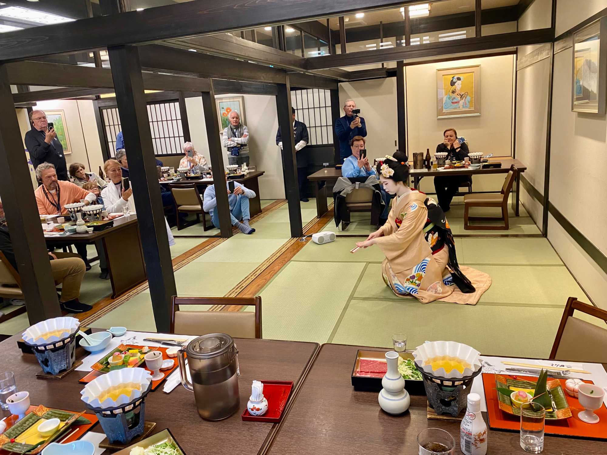 Nous sommes captivés par sa grâce, sa retenue, et le sérieux qu’elle y met. Notre excellent guide; Jean nous fait une traduction simultanée de chacun de ses gestes et nous permet une période de question pour en apprendre davantage sur son parcours personnel pour devenir une experte dans la maitrise de ces arts de divertissements raffinés. Tellement intéressant! Encore une fois, les superlatifs s’expriment abondamment. Nous sommes vraiment dans une expérience d’immersion à la vie japonaise.