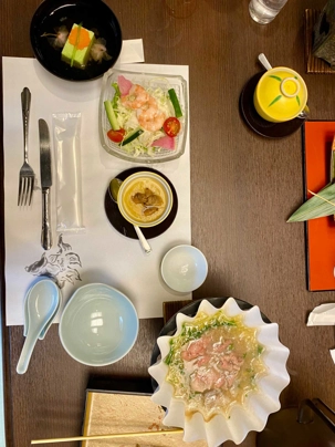 Le tout agrémenté par un repas gastronomique où nos papilles s’extasent à la dégustation d’une succession de petits plats délicats présentés dans une esthétique raffinée à souhait. Les photos en témoignent!