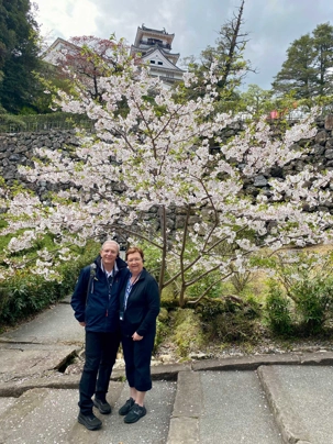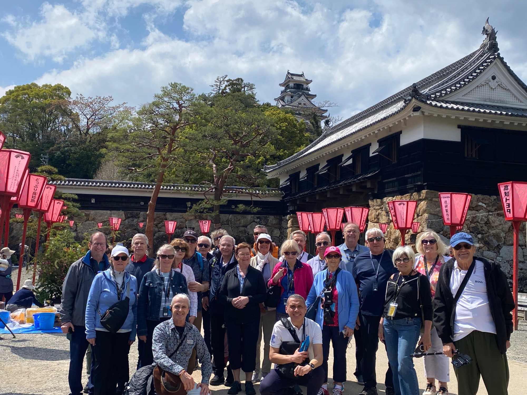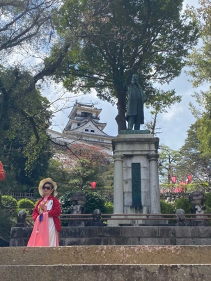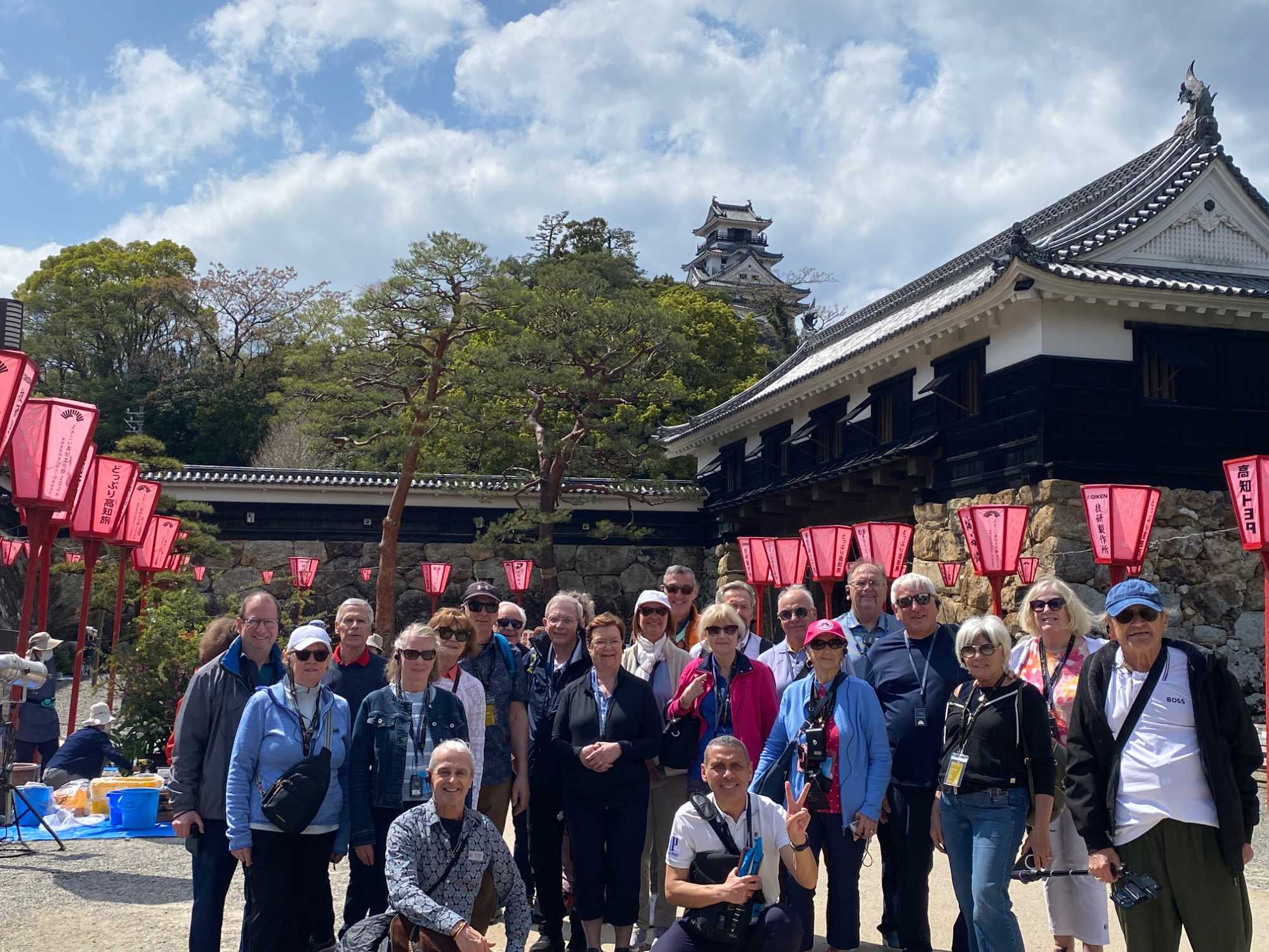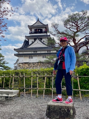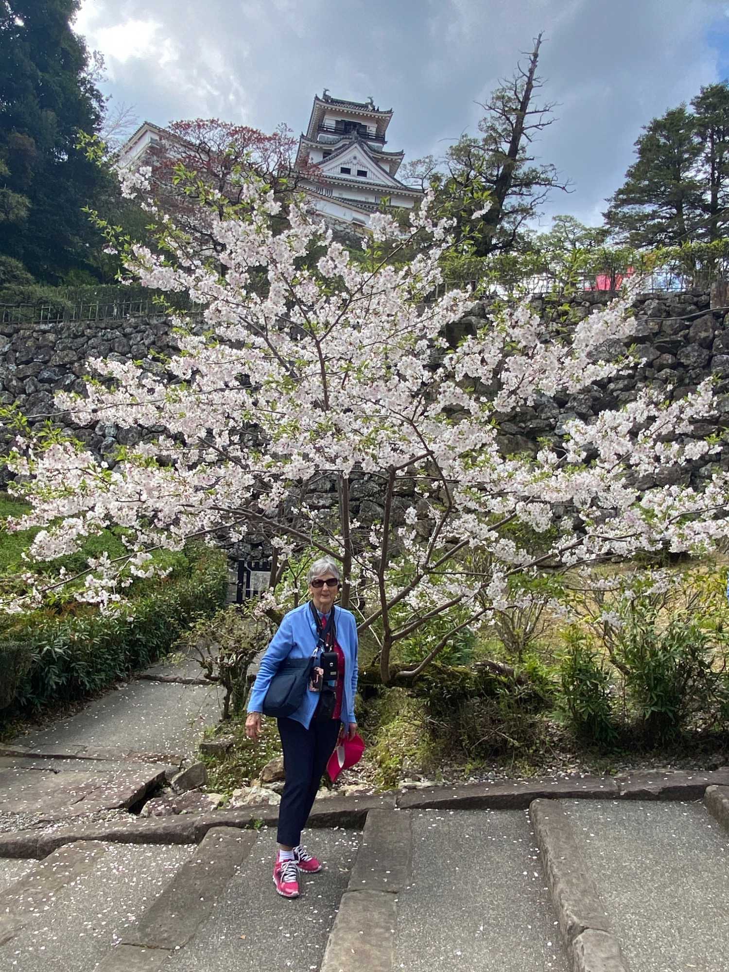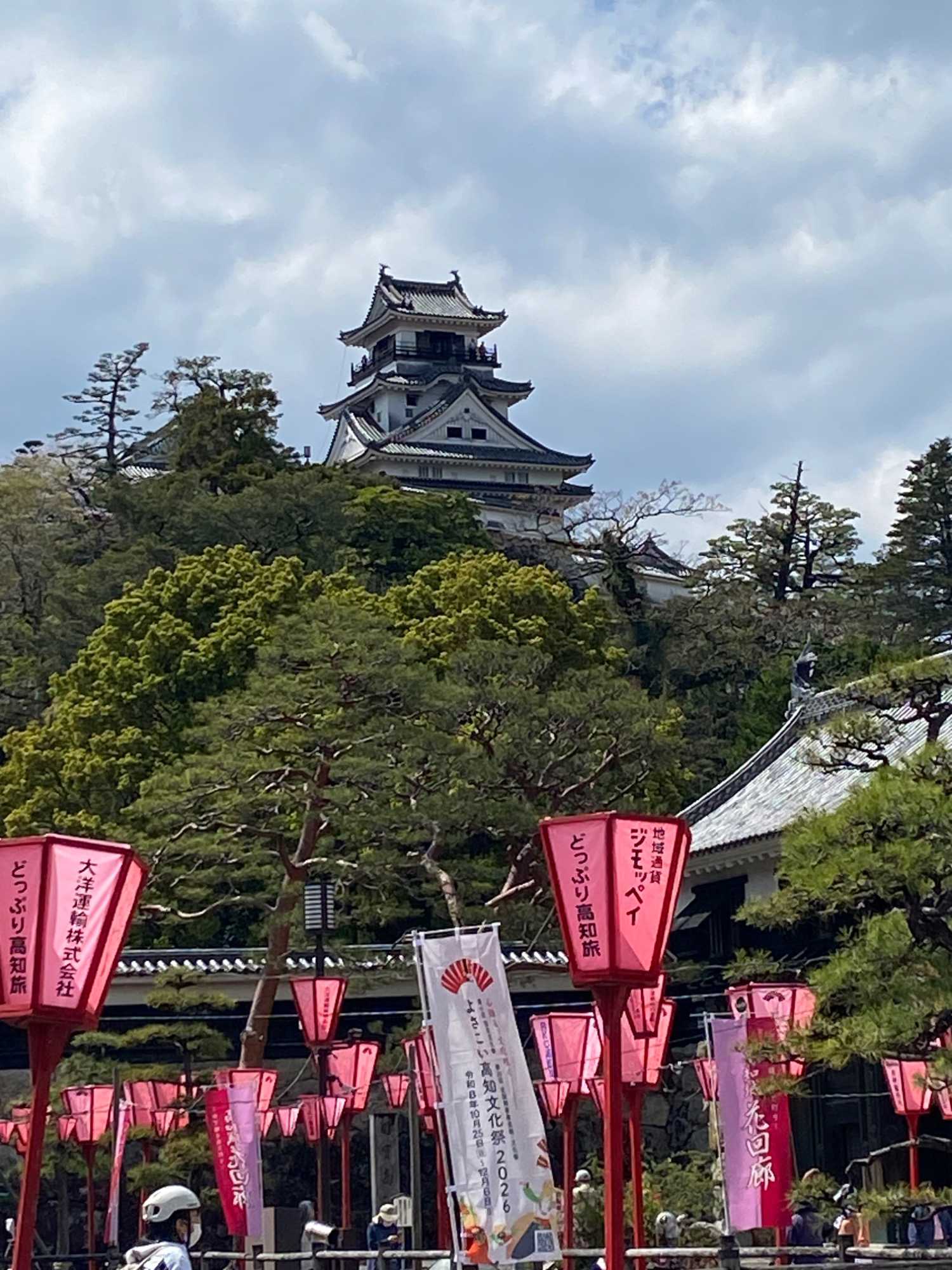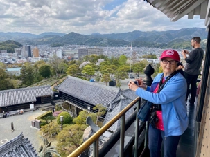 Dominant la ville, le magnifique Château de Kōchi se dévoile comme un trésor préservé de l’époque féodale, entouré d’un cadre naturel d’une grande beauté, avec tous ces cerisiers en fleurs. Cette citadelle est l’un des rares châteaux japonais à avoir conservé son donjon d’origine, offrant un aperçu authentique de l’époque féodale. Construit au début du XVIIe siècle, il se distingue par son architecture en bois élégante et ses remparts bien préservés. À l’intérieur, escaliers raides et salles traditionnelles avec maquettes explicatives nous plongent dans la vie des seigneurs d’autrefois. Depuis son sommet, la vue panoramique sur la ville de Kōchi complète cette immersion historique. Les photos en témoignent! Et que dire de Juliette, qui par sa grande forme physique nous impressionne tous! Elle devient rapidement source d’inspiration et de motivation!
