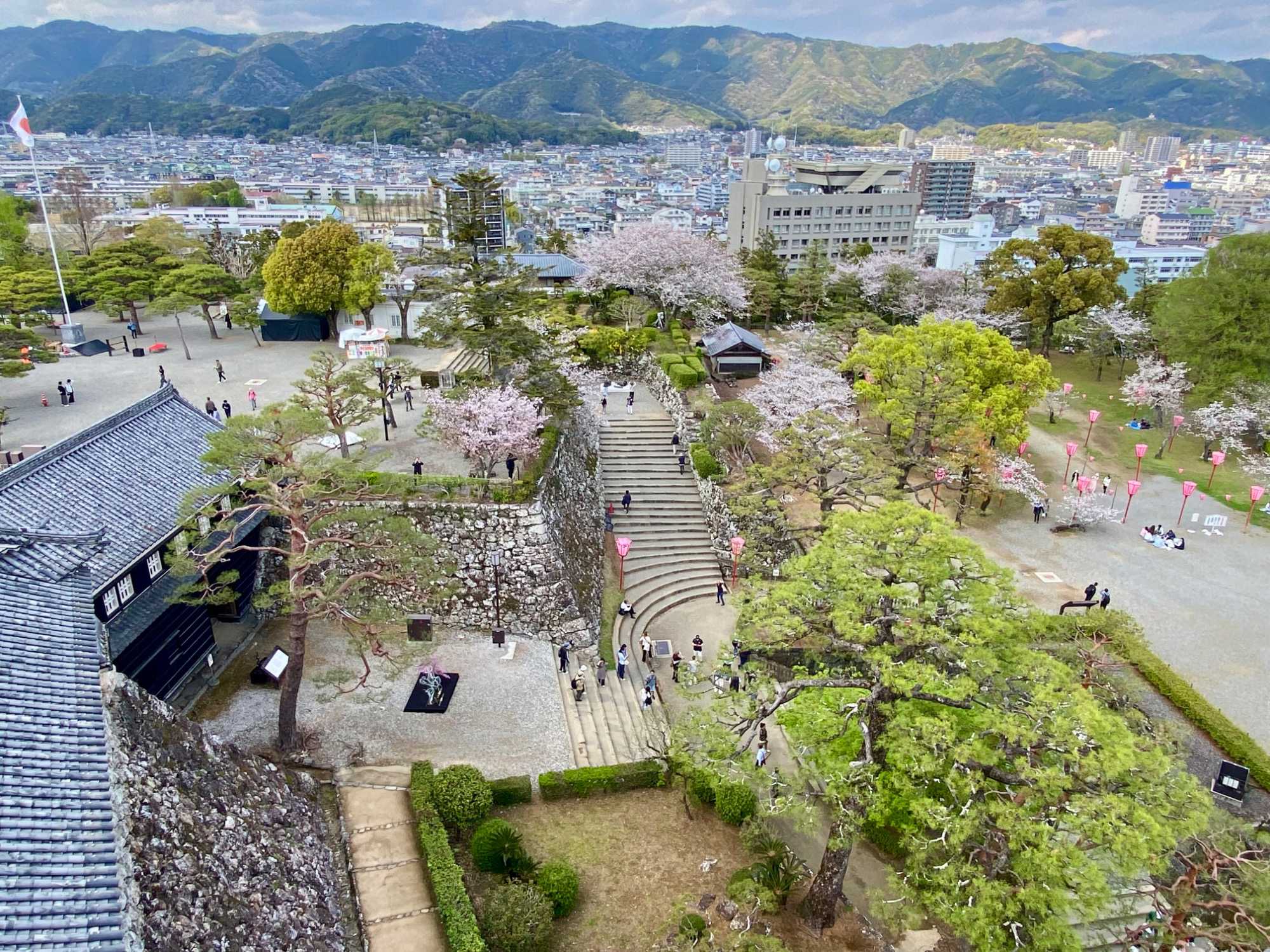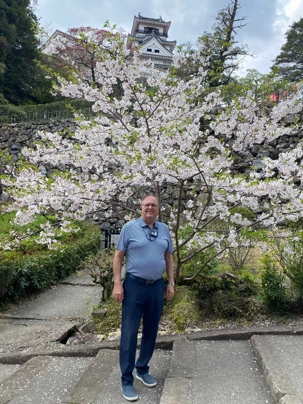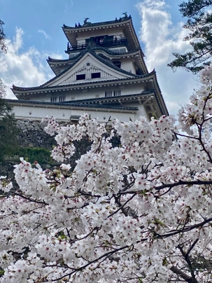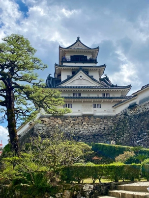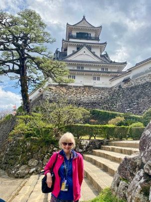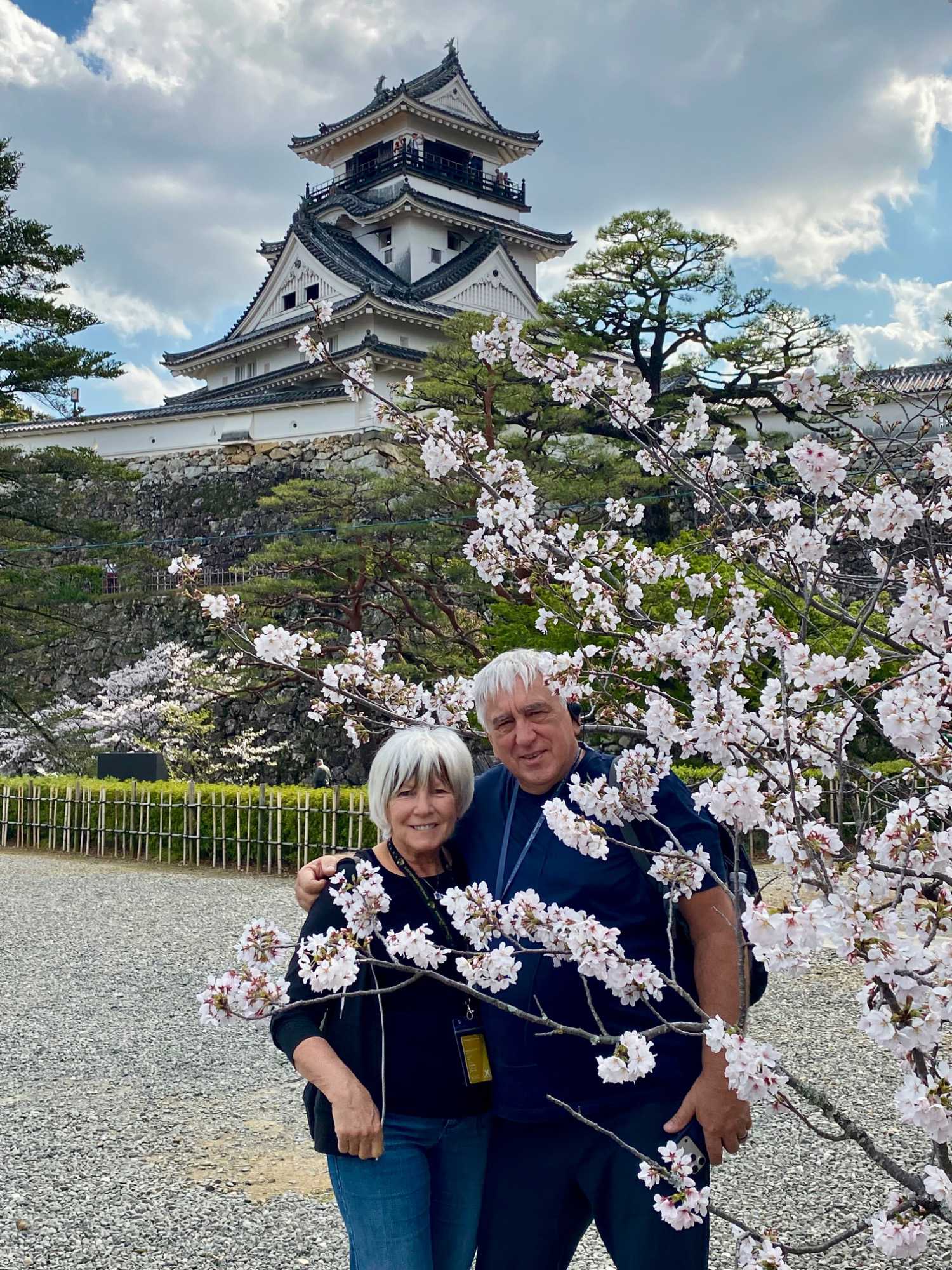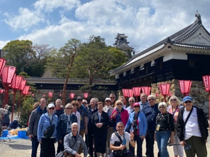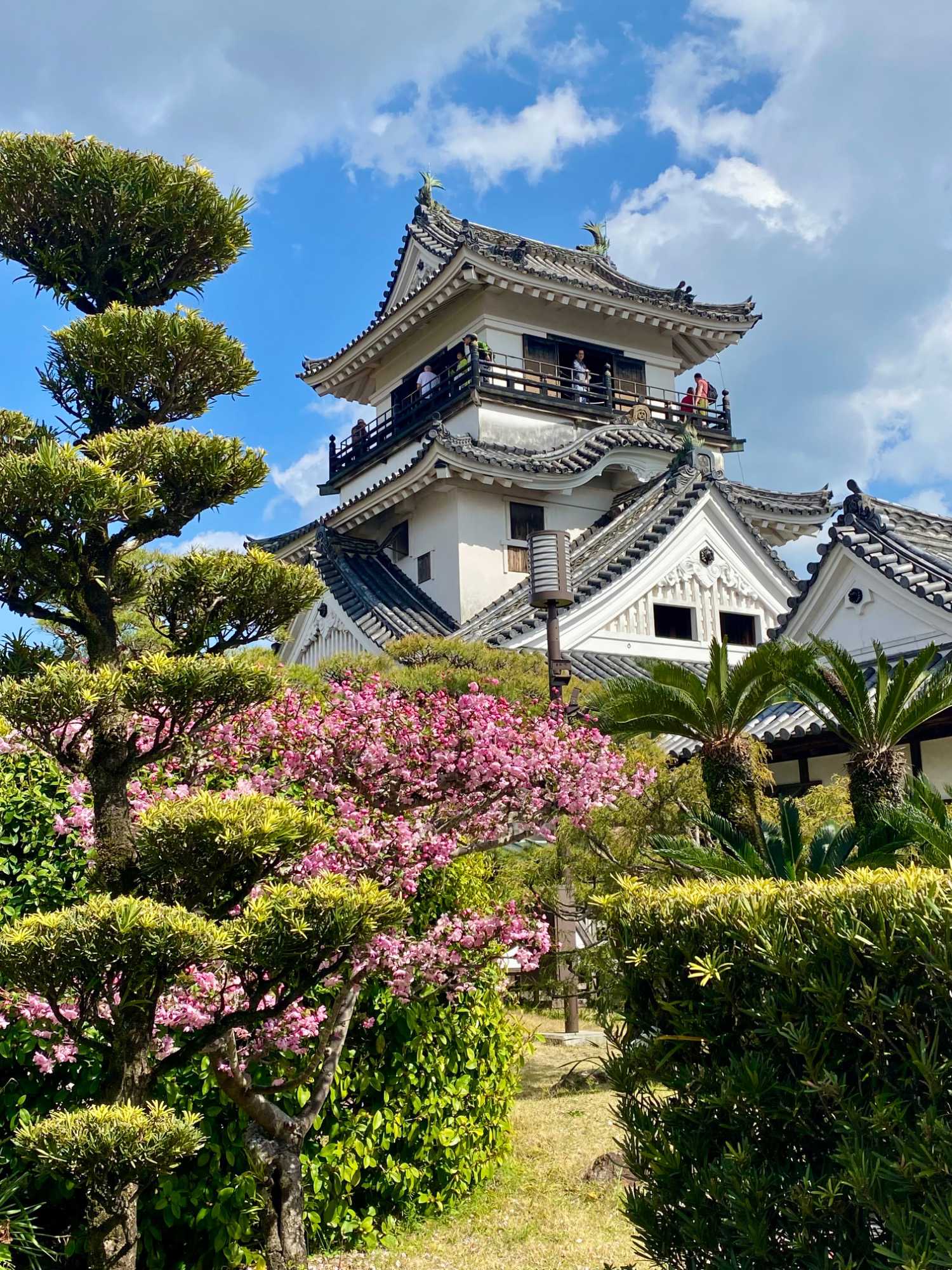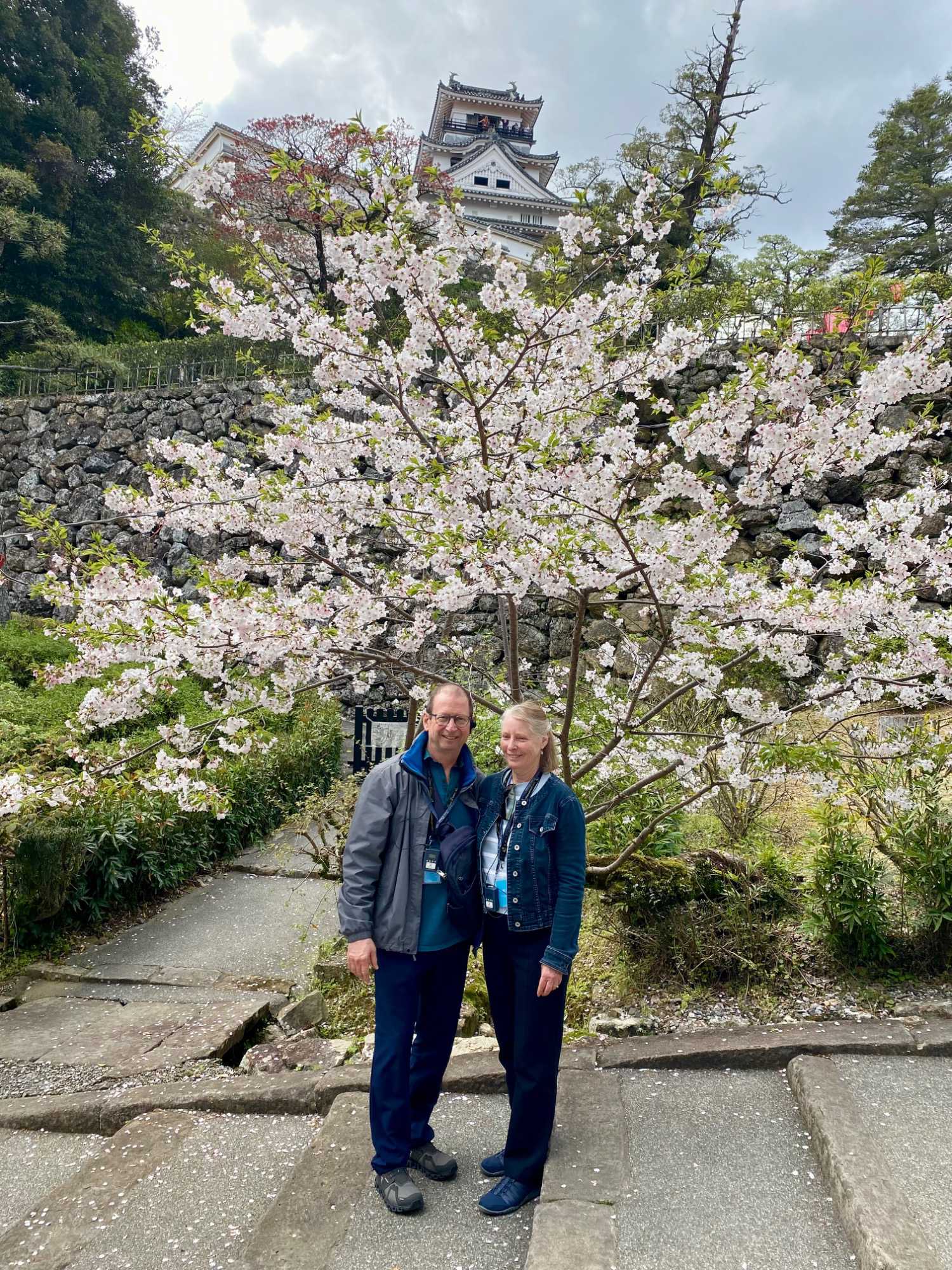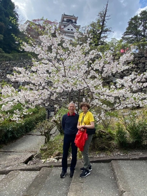 Dominant la ville, le magnifique Château de Kōchi se dévoile comme un trésor préservé de l’époque féodale, entouré d’un cadre naturel d’une grande beauté, avec tous ces cerisiers en fleurs. Cette citadelle est l’un des rares châteaux japonais à avoir conservé son donjon d’origine, offrant un aperçu authentique de l’époque féodale. Construit au début du XVIIe siècle, il se distingue par son architecture en bois élégante et ses remparts bien préservés. À l’intérieur, escaliers raides et salles traditionnelles avec maquettes explicatives nous plongent dans la vie des seigneurs d’autrefois. Depuis son sommet, la vue panoramique sur la ville de Kōchi complète cette immersion historique. Les photos en témoignent! Et que dire de Juliette, qui par sa grande forme physique nous impressionne tous! Elle devient rapidement source d’inspiration et de motivation!